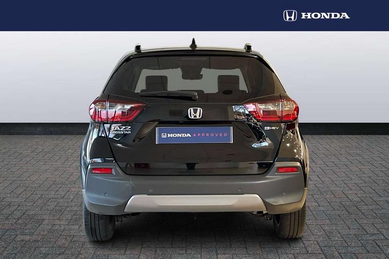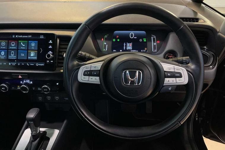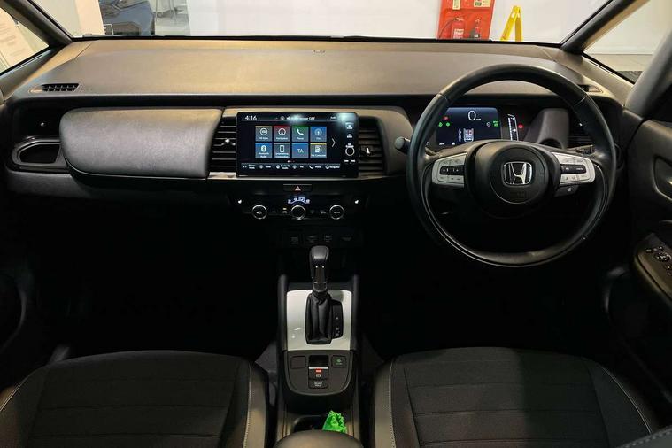 Adaptive cruise control, Adjustable speed limiter, Agile handling assist, Bluetooth hands free telephone connection, eCall emergency call system, Econ mode, Electric power steering wheel with variable gear ratio steering, Emergency stop signalling system, Forward collision warning, Front and rear parking sensors, Honda CONNECT with GARMIN Navigation + 9" touchscreen, AM/FM/DAB/Apple Carplay and android auto, Idle stop, Intelligent speed limiter, Lane departure warning system, Lane keep assist system, Low speed following, Multi-information display, Rear view camera, Road departure mitigation, Tailgate, Traffic jam assist, Traffic sign recognition, Wireless apple carplay, Vehicle stability assist, 'Shark fin' mobile antenna, 180w Power audio system with 4 speakers, 2 USB-C connectors rear, 2x USB Front socket (1 data & 1 charge), Remote audio controls on steering wheel, Aspheric door mirrors, Auto wipers, Automatic headlights with on/off timer, Coming/leaving home function, Black door mirrors, Black headlight extension, Body colour door handles, Body coloured front grille, eHEV emblem, Electric adjustable door mirrors, Electrically folding door mirrors, Exclusive styling includes front and rear bumper, front fog garnish, silver fender, side sill garnish, Front and rear electric windows, Heated door mirrors, High beam assist, LED 3rd brake light, LED daytime running lights, LED front fog lights, LED Headlights, LED rear lights, Manual headlight levelling, Privacy glass, Rear side wing doors, Rear wiper, Roof rails, Single exhaust tailpipe, 3 seat bench in 2nd row, 60/40 split rear bench seat, Cargo net hooks, Climate control air conditioning, Driver and front passenger seat armrests, Driver and passenger front seat pockets, Driver's seat height adjustment, Fabric/Water repellent upholstery, Front accessory power socket, Front head restraints, Front map lights, Front/rear courtesy lights, Heated front seats, Heated steering wheel, Isofix points, Leather gearshift knob, Leather steering wheel, Magic seat flexibility system, Plating interior door handles, Rear head restraints, Single front passenger seat, Sunvisors with vanity mirrors, Tilt/telescopic adjustable steering wheel, Tonneau cover, Trunk light, Vanity mirror illumination, 3x3 point rear seatbelts, Anti-lock braking system (ABS), Brake assist function, Brake hold function, Child locks on rear doors, Collision mitigation braking system, Deflation warning system, Driver knee airbag, Driver SRS airbag (single stage inflation), Driver/Front Passenger airbags, Electronic parking brake with auto hold, Front and rear seat belt with emergency locking retractor, Front and rear side curtain airbag, Front centre airbag, Front side airbags, Hill start assist, Passenger SRS airbag cut-off device, Rear side airbags, Whiplash lessening front headrests, Honda super locks, Immobiliser, Mirrors and windows key fob operation, Remote central locking with 2 remote folding keys, Security alarm, Smart entry + Smart start, Soft pad leather interior panels, 16" 3D chrome H centre cap alloy wheels, Tyre repair kit,