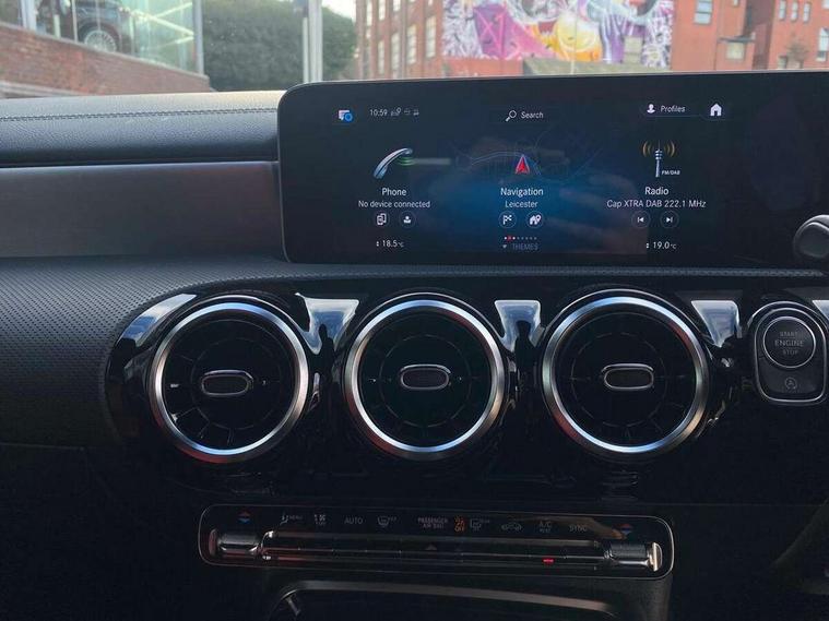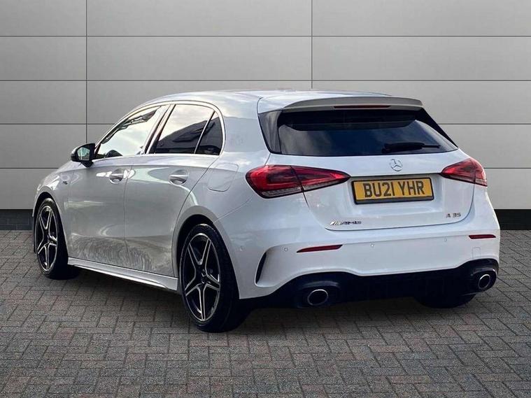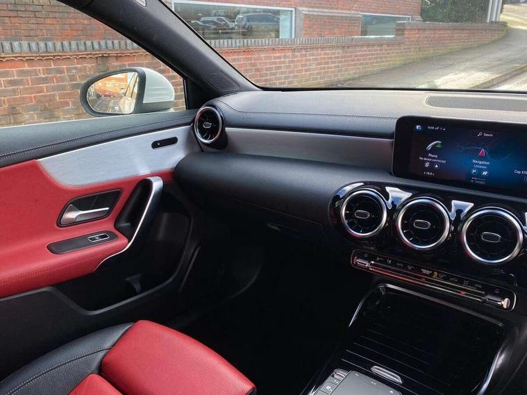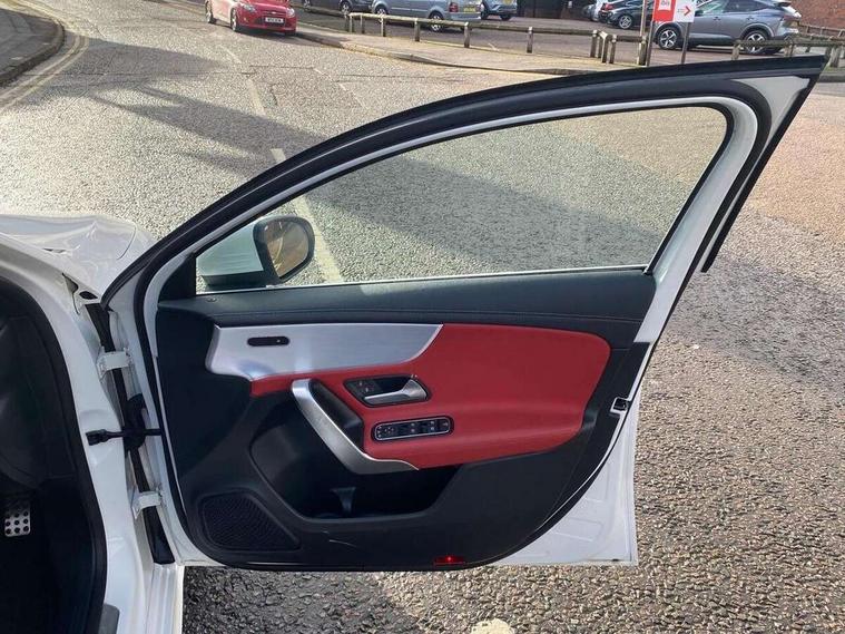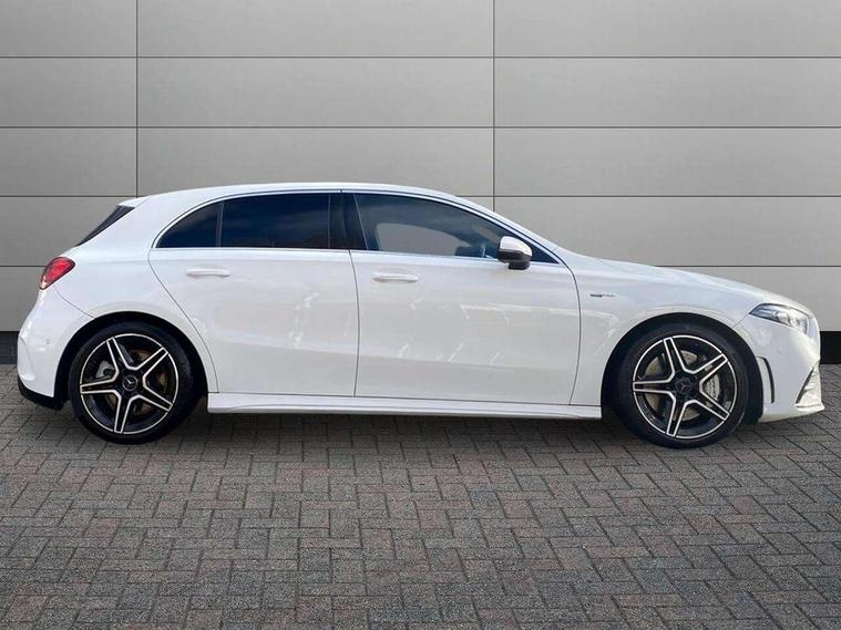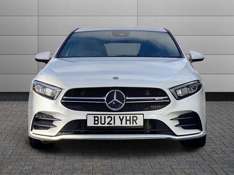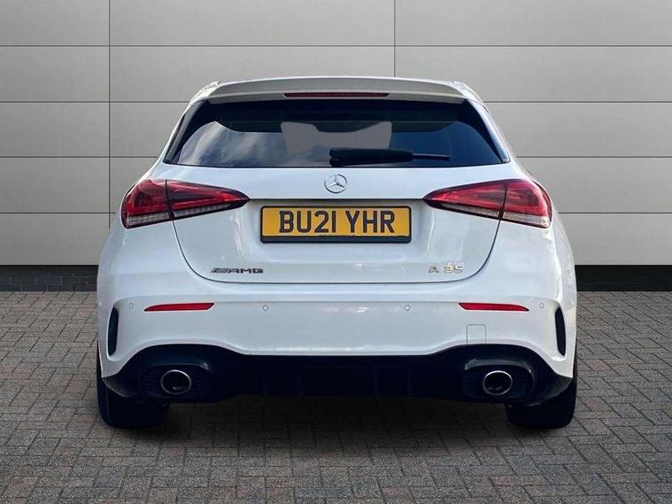 10.25" media display, 180 degree rear view camera with parking guidelines, 7" colour screen in instrument panel, Active parking assist with visual and audible warning of detected obstacles, Attention assist, Brake pad wear indicator warning light, Car wash mode, Cruise control + speed limiter, Direct steering, Dual bluetooth interfaces, DYNAMIC SELECT with driving programs (Slippery, Comfort, Sport, Sport+ and Individual), ECO start/stop function, Fluid level warning indicator for fuel, oil, coolant and washer fluid, Hard-disk navigation, Hey Mercedes Voice activation, Lamp failure indicator, Mercedes me connect including emergency call system, accident recovery, breakdown and maintenance management, Mercedes me remote services, Outside temperature gauge, Owners manual in English, Pre-installation for private car sharing, Preinstallation for Mercedes Benz link, Service indicator (ASSYST), Smartphone integration with Apple CarPlay and Android auto, Speed sensitive power steering, Trip computer, Ultrasonic sensors positioned in the front and rear bumpers, Wireless charging, AMG performance suspension, Rear axle multi-link, 2 USB ports (type C) in rear stowage compartment and one in front of center console, 6 speakers, DAB Digital radio, MBUX multimedia system with DAB digital radio and touchpad including satellite navigation, Mercedes-Benz sound system - 100W, 4 Electric Front and Rear windows, Adaptive brake lights, AMG bodystyling - Front apron with splitter in chrome, rear apron with chrome trim and chrome visible trim elements in tailpipe, AMG Front apron with flics as air deflector elements on the outer air intakes, AMG radiator grille with twin blade lamella and AMG Lettering, AMG Rear apron with specific diffuser look with four vertical fins and two round chrome plated tailpipe trim elements with a diameter of 90 mm, AMG spoiler lip on roof, AMG Sports exhaust system with two round tailpipes measuring 90 mm in diameter attached in rear apron, AMG lettering plus ribbing on the inside of the, Black weather strip, Body colour bumpers, Body colour door handles, Body colour side skirt, Body coloured door mirrors, Chrome beltline trim, Electric adjustable and heated door mirrors with integrated LED side indicators, Front wings wheel arches with TURBO 4MATIC lettering, Headlamp assist automatic headlamp activation, Heated glass rear windscreen + timer control, LED high performance headlamps with integrated LED daytime running lights, LED tail lamp, LED third brake light, Privacy glass, Radio aerial, Rain sensing windscreen wipers with two sensitivity settings, Rear fog lights, Rear wiper, Trim elements on louvres in outer air inlets in silver chrome, Wider wheel arches for AMG wheels, Window line trim strip in chrome, 40:20:40 split folding rear seats, AMG Performance steering wheel in nappa leather, Auto Mercedes-Benz child seat recognition sensor, Black air vents with surround in silver chrome, Black roof lining, Brushed stainless steel sports pedals with rubber studs, Controller on centre console with chrome surround, Floor mats with stitched edging and AMG lettering, Front centre armrest with storage compartment, Front door sills with Mercedes Benz lettering, Front seat backs luggage nets, Front seat cushion length adjustment, Heated front seats, Height/reach adjustable steering column, Interior mirror with reading lamps in black and frameless, Manual height adjustable front seats, Rear head restraints, Seat occupancy sensor for front passenger seat, Silver coloured aluminium gear shift paddles on steering wheel, Sports seats with integrated headrests, Stowage compartment in centre console with retractable cover, Sunvisors with illuminated vanity mirrors, Touchpad on center console, Twin front cupholders, Two zone thermotronic luxury automatic climate control, Light and sight pack - A Class, Mirror package - A Class, Seat comfort pack - A Class, 3 rear 3 point seatbelts, ABS with Brake Assist, Active bonnet, Active brake assist includes forward collision warning system with autonomous braking, Adaptive brake assist with hold function and hill start assist, Black seatbelts, Childproof locks manually operated for rear doors and electrically operated for rear power windows, Crash responsive emergency lighting, Driver and passenger head and side airbags, Drivers knee airbag, Dual stage driver/passenger airbags, Electronic parking brake, ESP curve dynamic assist, ESP with ASR, Front and rear seatbelt reminder, Front brake calipers with AMG lettering, ISOFIX and top tether child seat fixing points in two outer rear seats, Perforated front brake discs, Tyre pressure monitoring system, Warning triangle and first aid kit, Window airbags, Alarm system/interior protection/immobiliser, Keyless Go, Remote central locking and crash sensor with emergency opening function, Urban guard vehicle protection system with immobiliser and interior protection, Light aluminium with longitudinal grain interior trim, 18" AMG 5 twin spoke design bicolour alloy wheels, Summer tyres, Tirefit sealant kit,