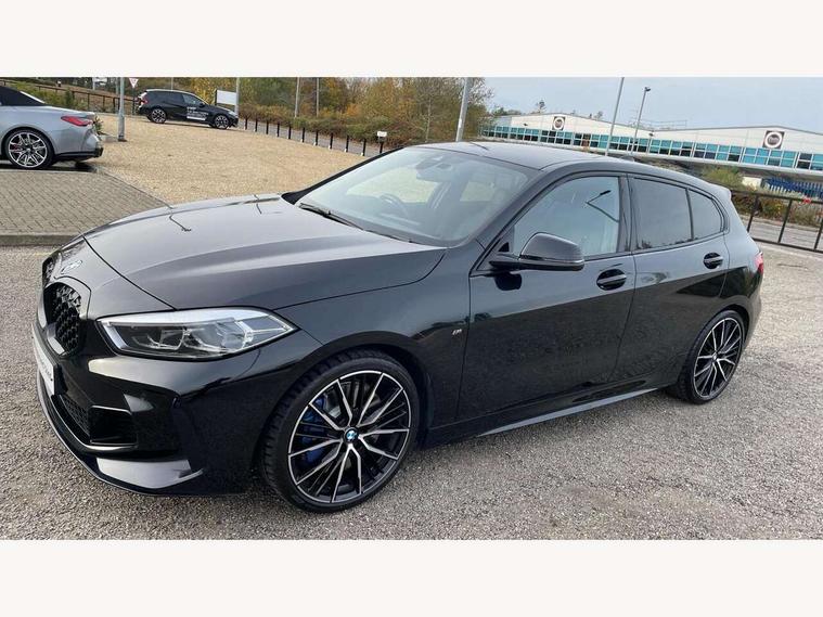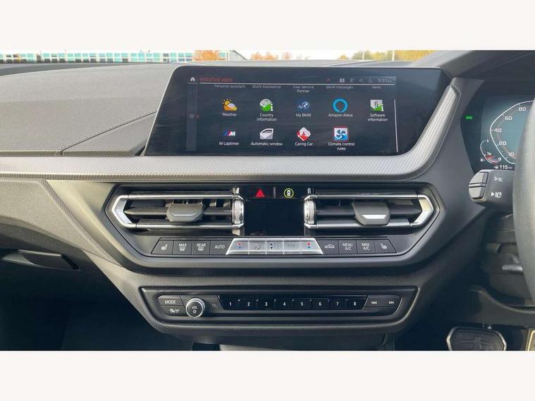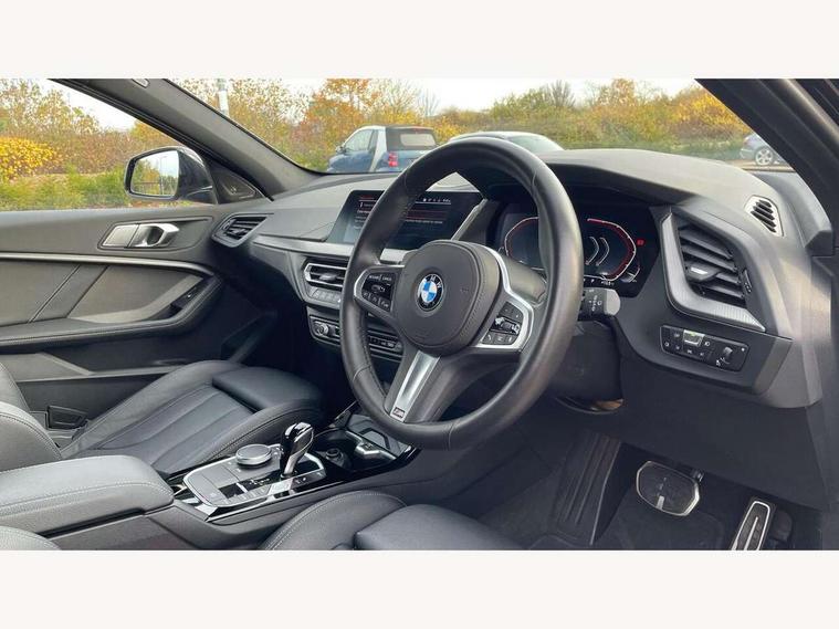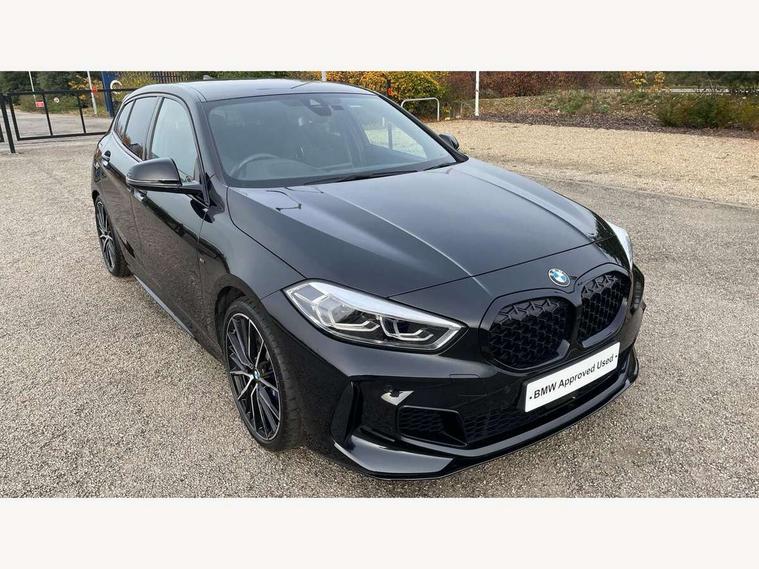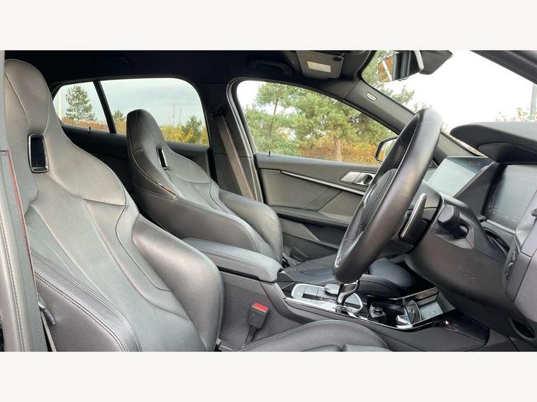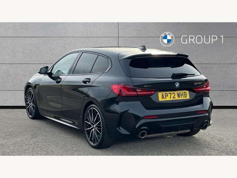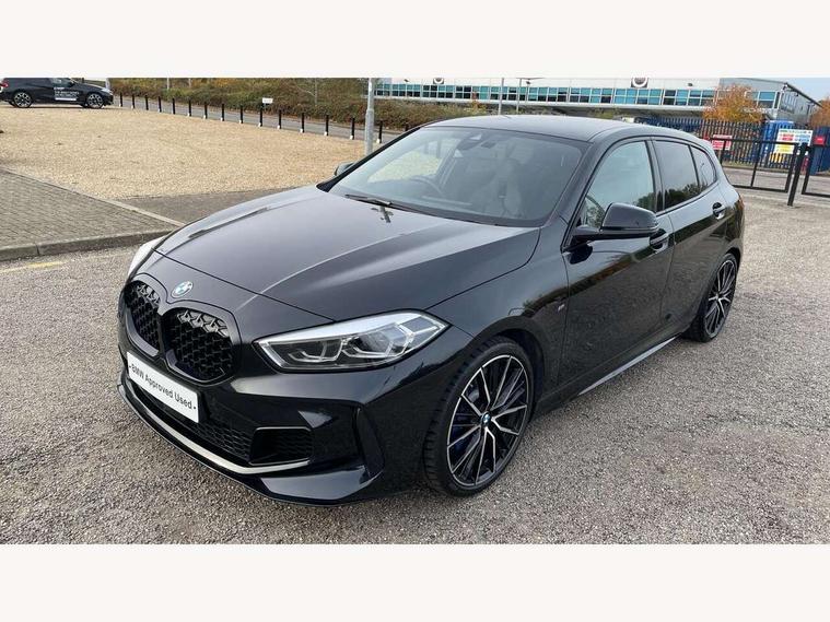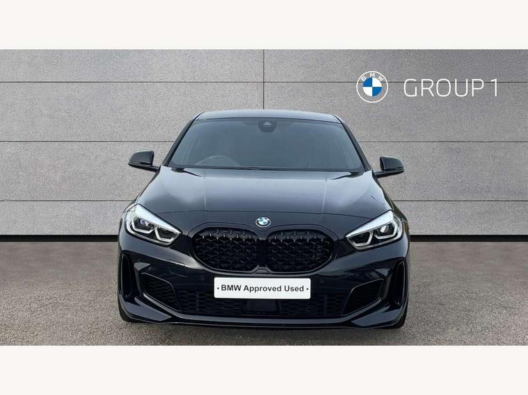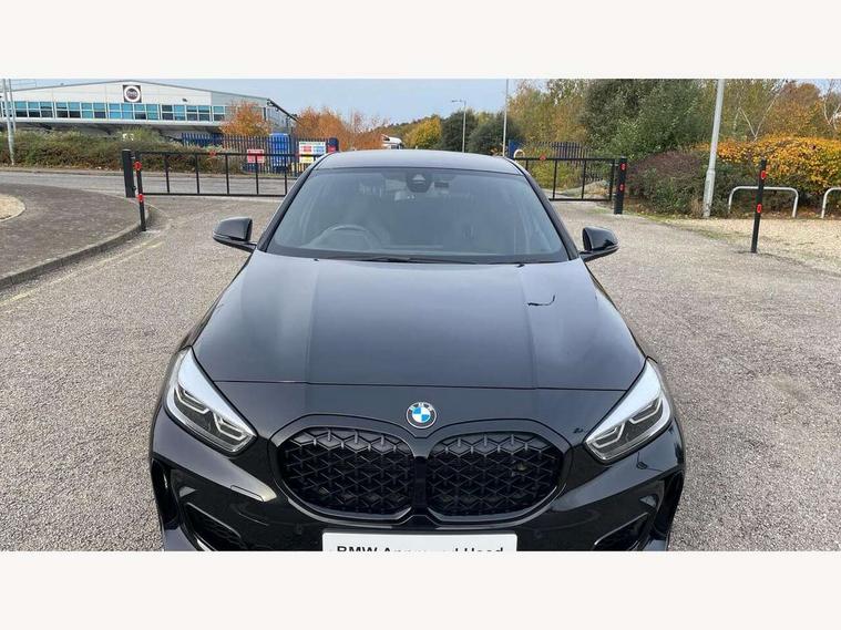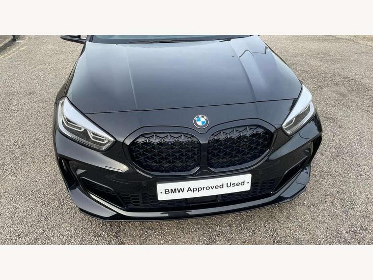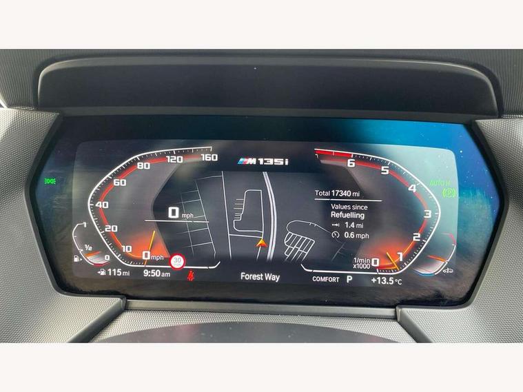Active guard plus, Attentiveness assist, BMW ConnectedDrive online services, BMW Teleservices, Check Control warning system for monitoring of lights and door/luggage compartment open warning, Cruise control with brake assist, Eco pro mode, Electric power steering, Electro hydraulically controlled multi-plate clutch transfers drive to rear axle and with power take-off device located on the front differential., Energy efficient operating strategy, Front axle single joint with specific axle kinematics to minimise drive influences on steering + provide increased rigidity agile driving behaviour, Gearshift time display in manual mode, Integrated owners handbook, Lane departure warning system, M Sports steering with M135i xDrive specific settings, Oil sensor for level and grade, On board computer, Optimum shift indicator, Personal Profile, Pull away assistant, Rigidly mounted rear subframe - Multi link construction with separate spring / damper configuration and excellent driving characteristics, Speed limit Info including no-overtaking indicator, Speed limiter, Sporty fast gear shifting in sport mode, Aluminium lightweight construction, Anti roll bar front and rear, Balancer shaft, Double VANOS, Drive Performance Control, Eight speed sport automatic transmission with gearshift paddle switches, Electronic differential lock, Electronic selector lever, Engine cover with M performance designation, High precision injection, Larger fuel tank capacity (50 litres), Launch control, M135i specific heavily de-throttled engine intake air guide, M135i specific high-performance cooling package, M135i specific larger turbocharger with integrated divert-air valve, Petrol Particulate Filter, Twin tube gas filled shock absorbers with degressive characteristic curve, VALVETRONIC engine management, Variable, stepless and infinitely adjustable distribution of drive torque between the front and rear axles, xDrive intelligent all wheel drive with M135i specific reinforced components, DAB Digital radio, Auto dimming rear view mirror, Automatic headlight beam throw control, Automatic windscreen wipers and automatic headlight, Body colour door handles, Body colour roof trims, Cerium grey exterior mirror caps, Direction indicator side lights in exterior mirrors, Exhaust tailpipe, Cerium Grey with bevelled finish - twin, round 100mm, left and right split, Fading support, Folding side mirrors with auto dimming/folding wing mirrors with auto dimming, Follow me home headlights, Front and rear bumper system with replaceable deformation elements, Front and rear electric windows with open and close fingertip control, anti trap facility and comfort closing, Front door sill finishers with M135i designation, Green tinted heat protection glazing, Heated, electrically adjustable exterior mirror aspheric on driver side, convex on passenger side, High gloss shadowline window frame, Recess cover mirror frames and B/C pillar embelisher trim, High level third brake light, Integrated front windscreen with washer jets, Kidney grille frame in Cerium Grey with Mesh design, LED daytime running lights, LED eyebrow turn indicators, LED front fog lights, Lightweight engineering, M logo designation side in cerium grey, M Performance exhaust system with valve control and minimised exhaust back pressure, M Performance specific setup, M Sport spoiler, Matt black air guide grilles, Matt black wheel arch trim, Model designation on electric bootlid includes xDrive designation for M135i xDrive, Nearside reverse light in rear light cluster, Preparation for high beam assistant, Rear fog lights, Rear side wing doors, Rear window wiper, Reinforced crank drive, new pistons and adapted con rods, Shark fin antenna, Trailer stabilisation logic, Visible VIN plate, Welcome lighting, 12V power socket in front centre console with blanking plug, 3 rear seat head restraints, 3 seat bench in 2nd row, 3 spoke sports leather steering wheel with black leather and stitching, pearl chrome decorative finish, specific M Badge, Anthracite headlining, Black boot net with lashing eyes, Cargo function on 2nd seat row, Child seat ISOFIX attachment for two outer rear seats and front passenger seat with anchorage points, Conditioned based service, Driver and front passenger seat heating, Folding rear clothes hook, Four grab handles integrated in roof lining, Front and rear door pockets with bottle holders, Front and rear side armrest integrated into door trim, Front armrest, Front integrated head restraints, Front M sports seats, Glove compartment, Luggage compartment for bag hooks on left and right, foldable luggage compartment liner and four lashing eyelets, Manual adjust steering wheel, Multi-function controls for steering wheel, Single front passenger seat, Storage compartment in centre console, Sun visors with vanity mirrors and insert tab, Two front centre console cupholders, Two zone automatic air conditioning, Velour floor mats, Additional interior lighting pack - 1 Series M135i, BMW live cockpit professional pack- 1 Series, Connected pack professional - 1 Series, Interior lights pack - 1 Series, M Sport exterior styling aerodynamics pack - 1 Series 135i, 2 tone horn, 3 point seatbelts on all seats, front pyrotechnic belt tensioners, stopper and belt force limiters, rear coded belt buckles, Airbags - Front driver/passenger, front and rear curtain head protection, front side, manual deactivation of front passenger airbag, Anti lock braking system (ABS) with brake assist, BMW emergency call, Brake drying, Braking readiness, Child proof locking system in rear door, City braking function, Comfort modes, Cornering brake control, Crash sensor activating central locking release, hazard warning lights, fuel cut off, interior lighting + activation of safety battery terminal clamp, Driver and front passenger seat belt security check, Dynamic stability control + (DSC+), Dynamic Traction Control - DTC, Electrically operated hand brake including automatic hold function, Front and rear