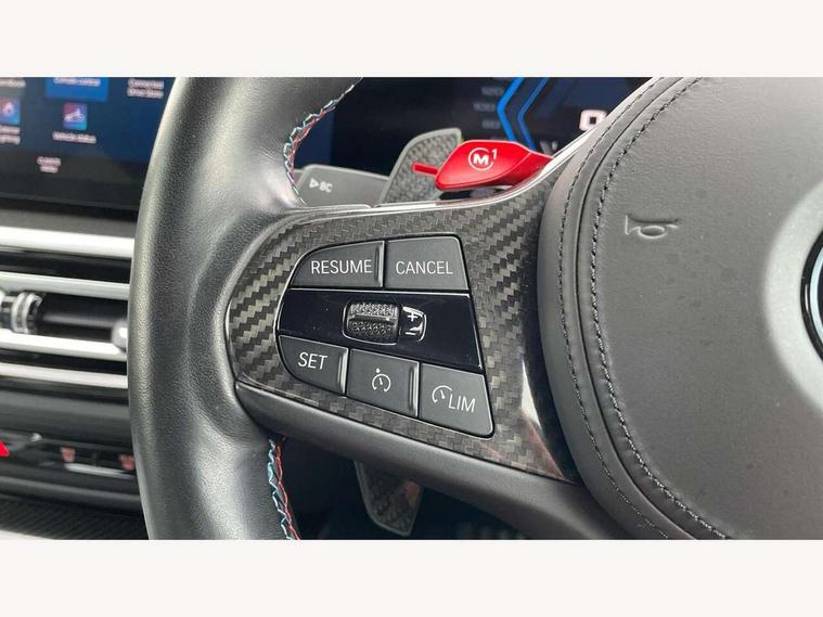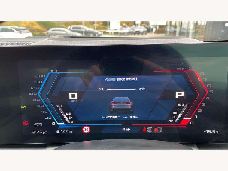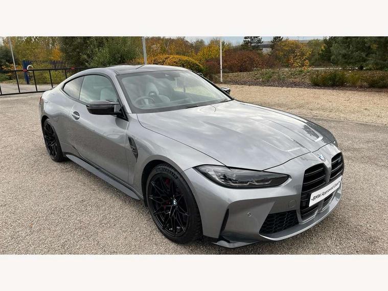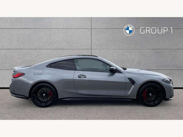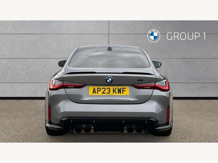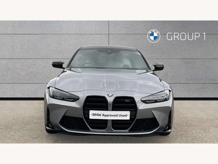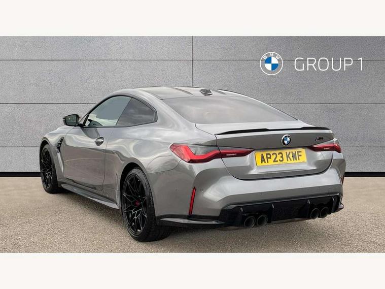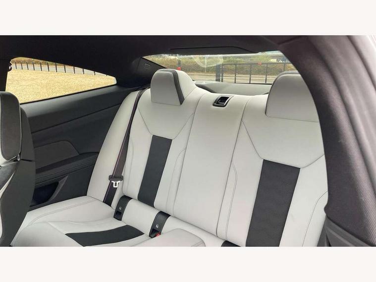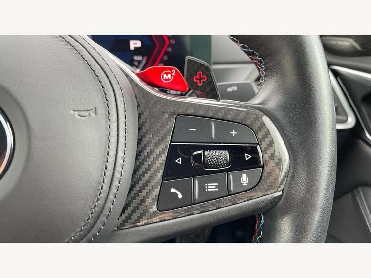 Active guard plus, Automatic start/stop system, BMW ConnectedDrive online services, BMW iDrive controller on centre console, BMW legal emergency call, BMW Live Cockpit Professional sat nav system with 12.3" instrument display and high resolution control display, BMW Teleservices, Brake pad wear indicator warning light, Condition based service, Door/boot open warning light, Driving experience switch, Electric Power Steering (EPS) with Servotronic, Instrument cluster with extended contents, Lights on warning, M drive buttons, Oil sensor for level and grade, warning by check control system, Oil temperature gauge, On board computer, On board diagnostics, Optimum shift indicator, Outside temperature display, Park distance control, Pull away assistant, Run flat indicator, Service interval indicator, Shifting point display, Speed limiter, Variable sport steering, Adaptive M Sport suspension, Double joint spring strut front axle, M Drive Professional including track mode, laptimer, traction control & Drift analyser, M Sport differential, M steptronic sport transmission with drivelogic, Safety battery terminal clamp, 8 programmable favourite buttons, Auxiliary point for auxiliary devices, BMW professional radio/CD/MP3, DAB Digital radio, Harman/Kardon loudspeaker system, Acoustic laminated side glass, Auto dimming driver's door mirror, Auto dimming rear view mirror, Automatic headlights + automatic windscreen wipers, Black chrome exhaust tailpipes, Black model designation badges, BMW high gloss shadow line with extended contents, BMW Individual shadowline lights, Body colour bumpers, Body colour door handles, Carbon fibre reinforced plastic (CFRP) roof, Day time running light, Door mirror integrated indicators, Door sill finishers with aluminium inserts, Dynamic brake lights, Electric adjustable heated door mirrors, Electric folding door mirrors, Follow me home headlights, Front and rear bumper system, Front electric windows with open and close fingertip control, anti trap facility and comfort closing, Headlight beam throw control, Heat protection, sun protection glazing, Heated washer jets, High beam assistant, High gloss black frameless kidney grille with M badge, LED number plate light, LED tail lights with 3D L-shaped LED light design, M designation, Mirror glass aspheric on driver's side, convex on passenger side, Rain sensor, Rear boot, Rear fog lights, Rear reflectors, Reversing light, Shark fin roof aerial, Third brake light, Visible VIN plate, Welcome lighting, 2 cupholders in front centre console, 2 cupholders in rear armrest, 2 rear head restraints, 2 x 12 V Power sockets (luggage compartment and front centre console), 2 x USB Type C ports for charging and data transmission in front centre console, 40:20:40 split folding rear 2 seat bench with loading system, Ambient lighting, Anthracite headlining, Battery in luggage compartment, Carbon fibre centre console incl. cover for cupholders and storage compartment, Carbon fibre decorative steering wheel finishers, Carbon fibre shift paddles, Carbon fibre strip in instrument panel on front passenger side, Centre console armrest with storage compartment, Compartment in front of cupholder, Driver/passenger sunvisors with illuminated vanity mirrors + covers, Electric front seats + driver memory, English handbook, Floor mats in velour, Footwell lighting, Front and rear door exit lights, Front door storage bins with bottle holder, Front interior light, Front isofix attachment + airbag deactivation, Front seat backrest width adjustment, Front seats lumbar support, Front/rear door armrests, Gearshift lever with embossed M badge, Heated front seats, Height adjustable front headrests, Interior mirror lighting, Isofix on 2nd row outer seats, Lockable/illuminated glovebox, Luggage compartment lighting, Multifunction steering wheel, Rake/reach adjustable steering wheel, Single front passenger seat, Storage compartment in rear doors, Storage tray and compartment with cover in centre console, Three zone automatic air conditioning, Toolkit located in luggage compartment, Wireless charging tray, Additional storage compartment pack - M4, Connected package professional - M4, High gloss shadowline exterior trim pack - M4, 4 x 3 point seatbelts, ABS/EBD, Automatic Stability Control (ASC), Brake energy regeneration, Brake fade compensation, Compound structure brake discs, Cornering brake control (CBC), Crash sensor, Curtain airbags, Driver/Front Passenger airbags, Dry braking, Dynamic brake control, Dynamic Stability Control with M Dynamic mode, Dynamic Traction Control - DTC, Electromechanical parking brake, Electronic differential lock control (EDLC), Front and rear head airbags, Front seat side impact airbags, Front seatbelt pretensioners + load limiters, Hill start assist, M Sport seat belts, Seat occupancy detection for driver and passenger side, Seatbelt warning, Side impact protection, Two tone horn, Tyre pressure sensor, Warning triangle and first aid kit, Centre lock switch, Closing system with central locking, Digital key, Electronic immobiliser, Remote central locking, Thatcham cat 1 remote alarm, Vehicle Key with 4 buttons including the integrated key, Galvanic finish to control surrounds, High gloss black interior trim, Tyre repair kit,