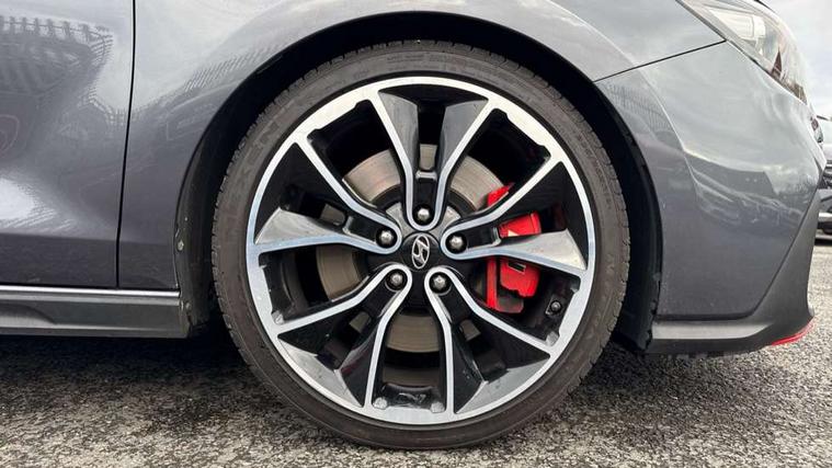 8" touchscreen satellite navigation including traffic messaging channel, map care and live services, Android Auto, Apple car play, Bluetooth connectivity with voice recognition, Colour driver's information system display, Cruise control, Digital clock, Drive mode buttons, Driver attention alert system, Driver's supervision instrument cluster with 4.2" LCD display, Emergency stop signalling system, Front and rear parking sensors, Lane departure warning system with lane keep assist - LKAS, N exclusive sport cluster, N mode button, Parking guidance system, Parking system with rear camera and guidance system, PAS, Performance information display, Rack motor driven power steering, Rev matching system, Roll over sensor, Shift timing indicator, Speed limit recognition, Trip computer, Windscreen washer fluid sensor and warning indicator, Wireless phone charging pad, Electric active sound design, Electronically controlled suspension, Intelligent Stop and Go, Launch control, Vehicle Stability Control (VSC), 2 front and 2 rear speakers with 2 tweeters, Audio control, DAB Digital radio, Radio with stereo, RDS with MP3 compatibility, Radio/CD with MP3 and WMA compatibility, Steering wheel audio, phone and cruise controls, USB ports in centre console, USB/aux input socket, 1 speed non intermittent rear windscreen wiper, Active variable exhaust system, Automatic defog system, Automatic dimming rear view mirror, Automatic headlight with follow me home function, Automatic headlights with dusk sensor, Automatic windscreen wipers with rain sensor, Black door mirrors, Black side sills, Black window surrounds, Body coloured bumpers, Body coloured exterior door handles, Bumper accents, Door mirror LED indicator lights, Door mirror puddle lights, Front and rear electric windows with anti-trap mechanism and one touch control, Front fog lights, Headlamp levelling, Heated door mirrors with electric adjustment and power folding function, Heated rear windscreen with washer, LED daytime running lights, LED Headlights, N exclusive front and rear bumpers, N exclusive radiator grille, N exclusive rear diffuser, Rear LED lights, Rear spoiler, Rear stiffness bar, Rear windows and tailgate privacy glass, Shark fin antenna, Smart high beam headlights, Smoked tail lights, Static Cornering lights, Tinted glass with windscreen shade band, Twin exhaust pipes, 12V power outlets in front console and luggage compartment, 12v socket in front centre armrest storage compartment, 60/40 split folding rear seat, Active head restraints, Aluminium pedals, Artificial leather door centre trim, Automatic climate control with defog system for front windscreen, Black cloth headlining, Black interior door handles, Cloth seat trim, Driver's electric adjustable lumbar support, Driver's seat manual extendable seat cushion, Driver/passenger sunvisors and illuminated vanity mirrors, Front and rear door pockets, Front armrest with storage box, Front cupholders x 2, Front head restraints with vertical and horizontal adjustment, Front, rear and luggage compartment interior lights, Glove compartment, Height and reach adjustable steering wheel, Interior front map reading light and sunglasses holder, ISOFIX child seat anchorage points attached on outer rear seats, Leather wrapped steering wheel with shift knob, N branded aluminium door sill trims, N exclusive sports seats, Rear air vents, Rear armrest with cupholder, Sunglasses holder, Variable boot floor, Vertical adjustment rear head restraints, 3x3 point rear seatbelts, Active front headrests, Airbags - front, front side and curtain airbags, Anti-lock braking system (ABS), Autonomous emergency braking (AEB) with forward collision warning system, Childproof rear door locks, EBD + Brake Assist, Electronic stability control, Front and rear seatbelt reminder, Front passenger airbag deactivation switch, Front seatbelt pretensioners, Height adjustable front seatbelts, Hill start assist control (HAC), Manual parking brake, Red brake calipers, Torque vectoring brake, Traction control, Tyre pressure monitoring system with individual tyre pressure display - TPMS, Deadlocks, Drive away door locking, Folding key, Immobiliser, Locking wheel nuts, Remote control central locking, Smart key with keyless entry and engine start/stop button, Speed sensitive automatic door locking, Thatcham category 1 alarm, 18" alloy wheels, 18" Michelin PSS performance tyres, Emergency space saver spare wheel, Michelin tyres,