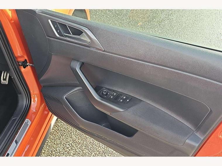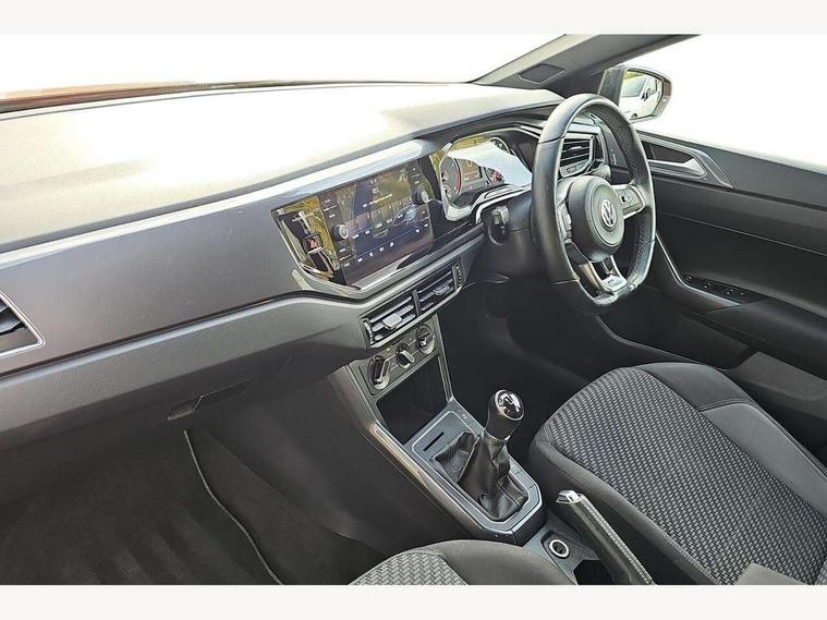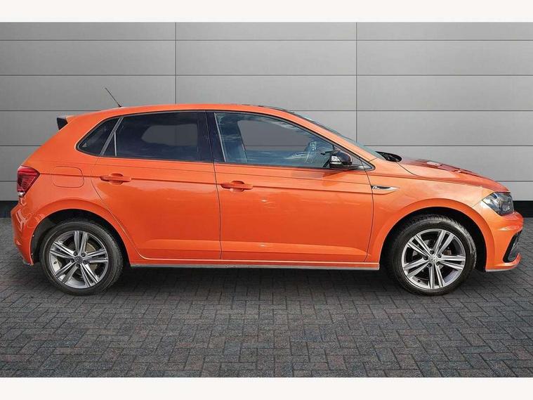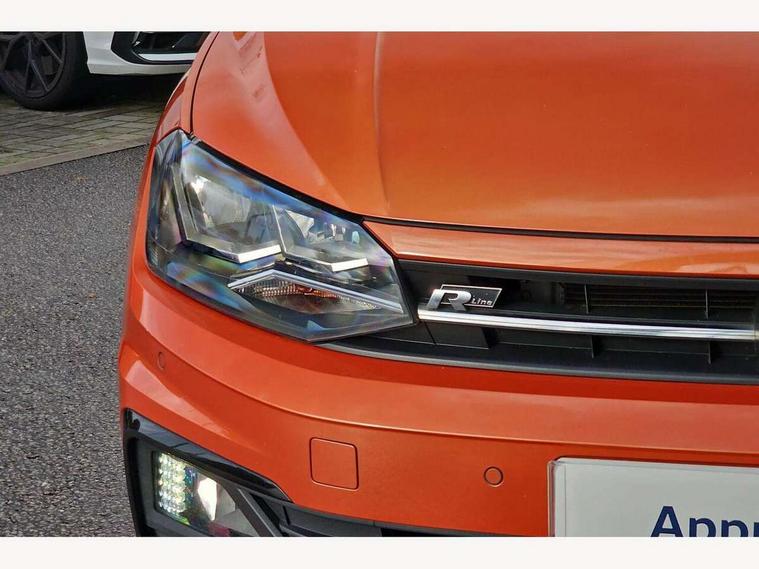 App-Connect, Bluetooth Telephone preparation, Driver alert system, Multifunction colour display, PAS - speed related, Service interval indicator, Start/stop system, Trip computer, Warning buzzer and light for front seatbelts unfastened, Battery regeneration during braking, 6 speakers, Composition media system with radio, glovebox mounted CD, colour touch screen, SD card, aux-in, USB, multimedia interface, DAB Digital radio, Automatic dimming interior rear view mirror with rain sensor, Automatic headlamp activation, Black grille with chrome surround, Black radiator grille with chrome insert, Body colour bumpers, Body colour door handles, Body colour rear spoiler, Body coloured side sills, Chrome insert to lower bumper, Chrome trimmed front air intake surrounds, Electric folding door mirrors, Electric front windows, Electric operated/heated door mirrors, Front fog lights including static cornering, Front wash/wipe with interval delay, Fully galvanised body, Heated rear window with auto timer, High level 3rd brake light, LED darkened rear light clusters, LED daytime running lights, LED rear number plate lights, Manual coming/automatic leaving home lighting function, R Line body kit, Rear diffuser, Rear electric windows, Rear windscreen washer and wiper with interval delay, Stainless steel door sill protection, Twin chrome exhaust tailpipes, 12V power socket in centre console, 2 bag hooks in luggage compartment, 2 cupholders, 3 rear head restraints, 3 spoke steering wheel, 60/40 split folding rear seat, Ambient lighting, Carbon flag cloth upholstery, Chrome-plated electric window button surround, Driver/front passenger seat height adjustment + underseat drawers, Driver/passenger sunvisors with illuminated vanity mirrors, Dust/pollen filter, Front + rear carpet mats, Front centre armrest with storage compartment, Front seat backrest storage nets, Front sport seats, Front/rear reading lights, Glovebox, Handbrake grip button in chrome effect, Height/reach adjustable steering column, Instrument lighting, white adjustable panel illumination, Interior light with delay, Isofix Preparation 2 Rear child seats, Jack and tool kit, Leather multifunction steering wheel, LED footwell lights, Luggage compartment cover, removable, Luggage compartment lighting, Matt chrome gear lever gaiter surround, R Line badge, Stainless steel pedals, Storage compartment in front doors, Storage compartment in rear doors, Storage compartment under front seats, Titanium black headlining, Titanium black roof lining, Variable boot floor, Variable Luggage compartment, Light and sight pack - Polo, R Line styling pack - Polo, 3 point height adj front seatbelts + pretensioners, 3x3 point rear seatbelts, ABS, Automatic post collision braking, Driver/front passenger airbag, Driver/Passenger whiplash optimised head restraints, ESP with EDL + ASR, Front and rear passengers curtain airbag system including front side airbags, Front passenger airbag deactivation, Front/rear disc brakes, HBA (Hydraulic Brake Assist), Hill hold control, Two tone horn, Tyre pressure monitoring system, Alarm with remote central locking and interior protection, Electronic engine immobiliser, Chrome plated electric mirror adjustment light switch surround, Cortina silver air vent surround, Matt chrome interior trim, Snow shadow steel dashboard pads, Steering wheel aluminium inserts, Space saver spare wheel,
