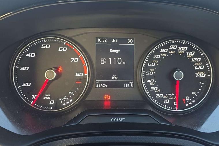'Lights On' Reminder warning buzzer, 9.2" touchscreen navigation system with type C USB socket, Voice control and DAB/AM/FM radio, Auto start and stop system, Bluetooth audio streaming with handsfree system, Cruise control, Digital clock, E-call, Full link smartphone integration with mirror link, wireless apple carplay, Google android auto + USB Type C cable for apple and android devices, Lane assist, Low fuel warning light, Outside temperature gauge, Power Steering, Seat connect with safety, service, remote and online, SEAT logo boot release, Speed limiter, Trip computer, Comfort suspension, Auxiliary input socket, Radio/MP3 player, SD card slot, Steering wheel mounted controls, Anti theft roof antenna, Body colour bumpers, Body colour door handles, Body colour door mirrors, Dimming interior rear view mirror, ECO LED automatic headlights and LED daytime running lights, Electric front windows, Electric headlight adjustment, Electrically adjustable door mirrors, Front/rear fog lights, Halogen tailights, Rain sensor, Rear side wing doors, Rear wiper, Third brake light, 3 seat bench in 2nd row, 60/40 split folding rear seat, Air conditioning with dust and pollen filter, Chrome interior detailing and grey headlining, Cloth upholstery, Comfort seats, Front courtesy lights, Front cupholders x 2, Front reading lights, Gear shift indicator, Glovebox, Height adjustable front and rear headrests (five), Height adjustable front seats, Height/reach adjust steering wheel, Illuminated boot, Instrument lighting with brightness control, Isofix, Leather multifunction flat bottomed sports steering wheel, Passenger sunvisor, Single front passenger seat, Sunvisors with mirror and driver side card holder, 3 point seatbelts on all 3 rear seats, ABS, Active front headrests, Child locks on rear doors, Electronic stability control, Energy recovery system, Front assist forward collision warning and autonomous emergency braking, Front driver and passenger side airbags with curtain airbag and front passenger airbag deactivation, Hill hold control, Multi-Collision braking, Seat belt reminder for front and rear seats, Tiredness recognition system, Tyre pressure monitoring system, Electronic engine immobiliser, Locking wheel bolts, Remote central locking + deadlocks, 16" Design machined alloy wheels in Nuclear grey,