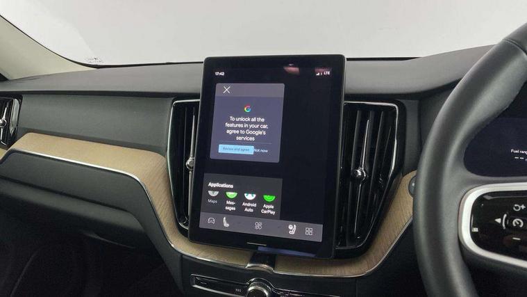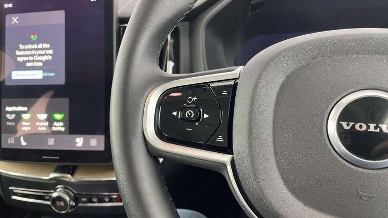 11.2" centre console touch screen, 12.3" Progressive Driver Display, 360 degree surround view parking camera with side proximity sensors, Adaptive cruise control, Adjustable steering wheel force, Android auto (Wired), Apple carplay (wired), Bluetooth handsfree system, Driver alert control with lane keeping aid, Emergency services call system, Front and rear park assist, Google Automotive Services, Intelligent speed assistance, Oncoming Lane Mitigation, PAS, Power operated tailgate with handsfree opening and closing, Service interval indicator, Speed limiter, Speed sensitive steering, Trip computer, Volvo cars services with app, Volvo on call with App, Wireless/Inductive Mobile Phone Charging, 8 speed automatic transmission with start/stop + manual change functions, DAB Digital radio, Premium Sound by Harman Kardon, dirac unison, dolby pro logic II surround sound, 13 speakers/600W output and fresh air subwoofer, Steering wheel remote infotainment controls, Adaptive brake lights with high level LED brake lights, Auto dimming interior + exterior mirrors, Automatic headlight levelling system, Automatic LED Headlights + Active high beam incorporating daytime running lights, Electric adjustable/heated/auto power folding door mirrors, Electric front+rear windows, Front aluminium tread plates, Heated front windscreen, High gloss black door mirrors, High gloss black front and rear bumper decoratives, High gloss black mesh front grille with high gloss black surround, Home safe and approach lighting, Integrated roof rails in high gloss black, Puddle lights, Rain sensor with automatic windscreen wiper activation, Rear side wing doors, Rear wiper, Roof antenna, Roof spoiler, Tinted windscreen, Visible VIN plate, 12V socket in front tunnel console and luggage compartment, 3 seat bench in 2nd row, 3 Spoke tailored steering wheel with chrome trim, 4 Zone electronic climate control, A-pillar parking ticket holder, Air purifier particulate matter (PM) 2.5 filter, B Pillar ventilation, Bright metal luggage scuff plate, Centre console cupholders and storage, Charcoal floor mats, Front and rear courtesy lights, Front and rear door pocket illumination, Front cupholder illumination, Front footwell illumination, Front reading lights, Front seat cushion extensions, Glovebox compartment with illumination, Head restraints for all seats, Heated front seats, Heated steering wheel, Height/reach adjustable steering column, Illuminated luggage compartment, Illuminated vanity mirrors + ticket holder, Inner door release handle illumination, ISOFIX attachment on outer rear seats, Load cover, Load protection net, Multi directional lumbar support, Power driver seat with memory + exterior mirrors memory, Power height adjustable passenger seat, Power passenger seat with memory, Quilted nordico leather upholstery, Rear armrest with cupholder, Rear footwell and front and rear side step illumination, Rear reading lights, Rear seat concealed storage, Single front passenger seat, Tailgate illumination and ambient door lighting, Underfloor stowage compartment, Versatile split folding rear seat - 60/40, Driver assist pack without Adaptive cruise control - XC60, 5 three point seatbelts, City safety with steering support with Pedestrian + cyclist + front collision warning with full auto brake and rear auto brake, Drivers knee airbag, Dual stage driver/passenger airbags, Electronic parking brake with auto hold, First aid kit, Front seats SIPS airbags, Hill descent control - Off-road drive mode, Hill start assist, IC (Inflatable Curtains) - Full Length, Passenger airbag cut-off device, Power child locks on rear doors, Road sign information display, Run off Road Mitigation, Run off Road Protection, Seatbelt reminder and pretensioners, SIPS (Side Impact Protection System), Slippery road and hazard light alert, Stability and Traction Control with Spin control, Engine Drag Control and Corner Traction Control, Tyre pressure monitoring system, Vehicle deceleration control with Anti-lock Brake System, Electronic Brake Distribution and Emergency Brake Assist, Warning triangle, WHIPS whiplash protection system - front, Anti-theft alarm including immobiliser/volume sensor + level sensor, Key integrated remote control central locking + fuel flap with deadlocking system and auto open/close power windows, Keyless Drive (includes Keyless Entry and Keyless Start), Locking wheel nuts, Private locking for tailgate, Summer tyres,