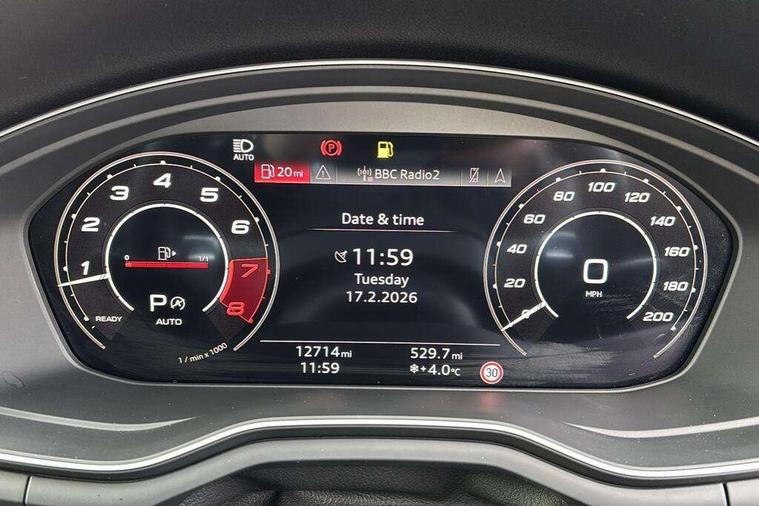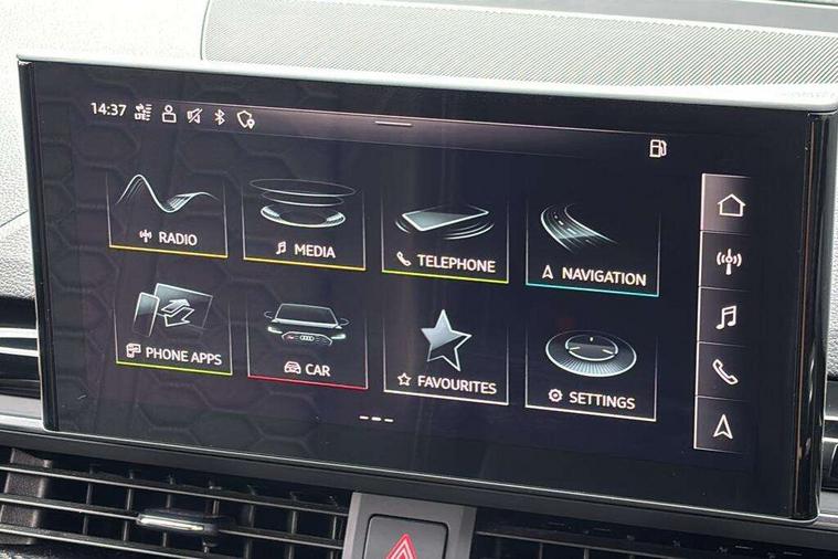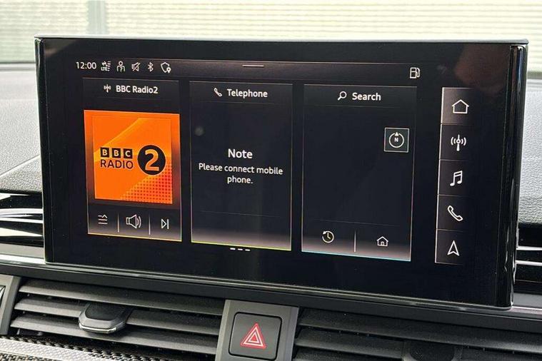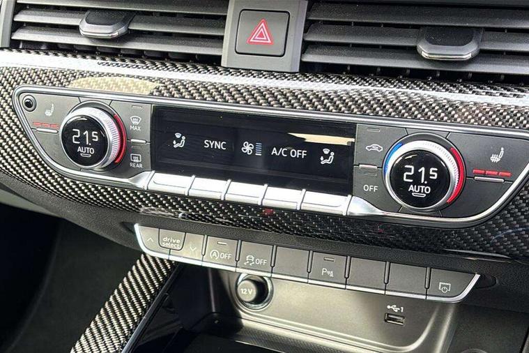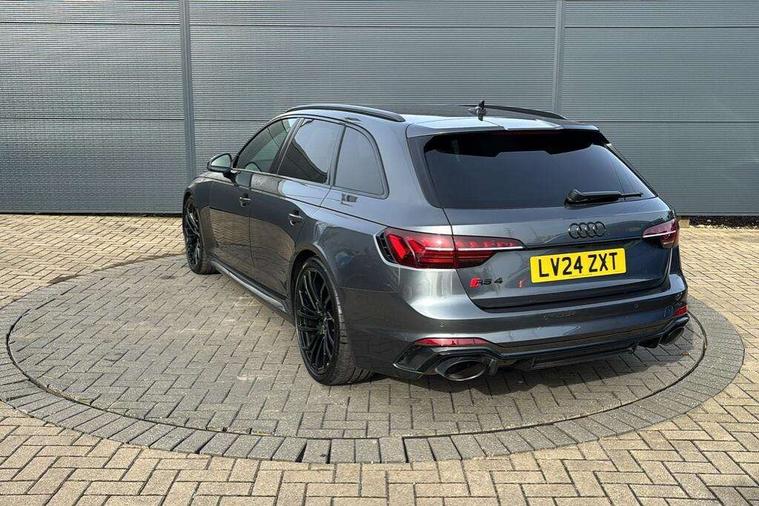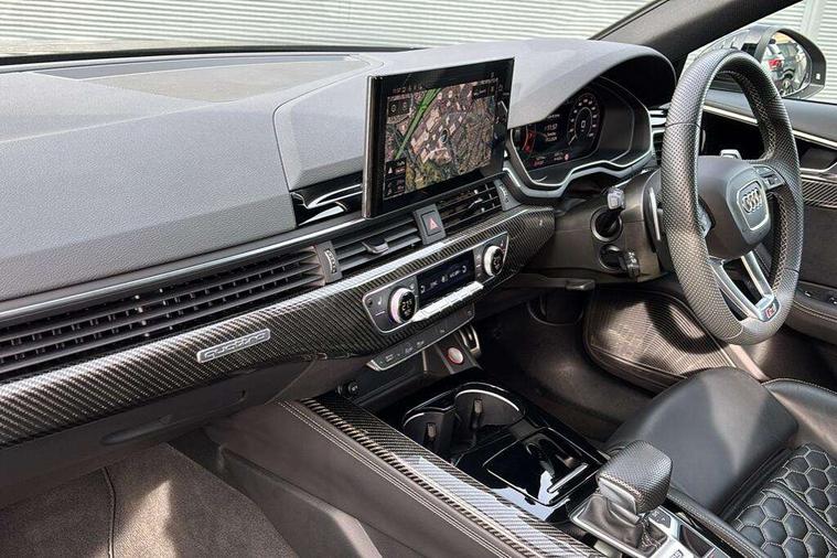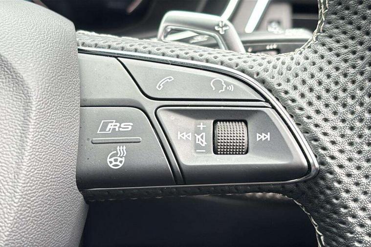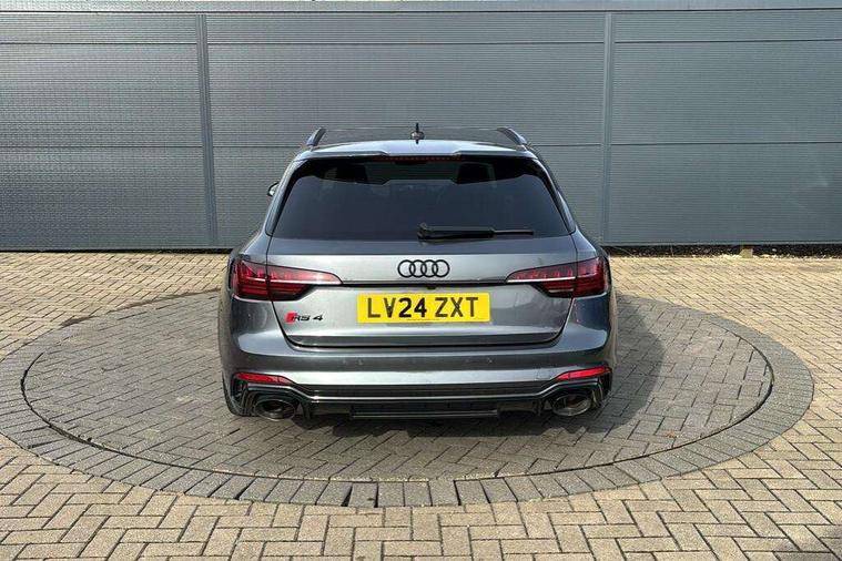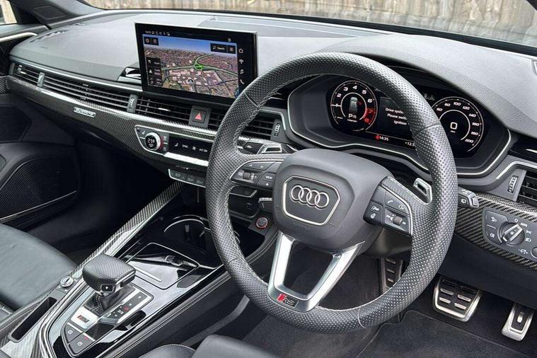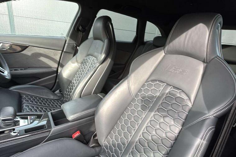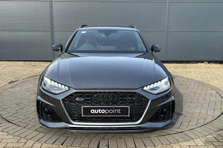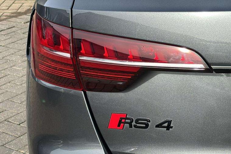 7" Colour driver information system, Audi connect safety and service (e-call), Audi drive select, Audi side assist, Audi smartphone interface, Audi virtual cockpit with RS specific display, Automatic start-stop system with coasting functionality and efficiency programme, Bluetooth interface, Camera based traffic sign recognition, Electromechanical power steering, Email, calendar and text messages displayed via MMI, Lane departure warning, MMI Navigation plus with MMI touch includes 10.1" high resolution colour MMI display, 3D map, Power opening/closing tailgate, Service interval indicator, Voice control system, 58 Litre fuel tank, Quattro sports differential, 2 USB charging ports, Audi sound system, DAB digital radio module, 3rd brake light, Acoustic windscreen, Audi Beam uses LEDs to project the RS logo onto ground as you exit your RS4, Audi matrix LED headlights with LED rear lights + dynamic front and rear indicators, Audi rings and lettering glossy black, Auto dimming rear view mirror, Automatic headlights + automatic windscreen wipers, Black roof rails, Blue tinted glass, Body colour door handles, Electric front windows, Electric rear windows, Electrically folding auto dimming/adjustable/heated door mirrors with memory function, LED side indicators and kerb view function for passenger side, Flared front and rear wheel arches, Front bumper with enlarged air inlets, Headlight range control, High beam assistant, High gloss black door mirror housing, High gloss black triangular aperture at rear door, Honeycomb design grille with quattro logo, Lateral air inlets next to front headlights, LED daytime running lights, LED indicators in door mirrors, Privacy glass with rear acoustic glazing, Rain and light sensors, Rear side wing doors, Rear wiper, Roof spoiler, RS 4 badges on grille and rear, RS4 dual branch chrome tailpipes with left and right oval pipes, 3 seat bench in 2nd row, 40/20/40 split folding rear seats with rear centre armrest, Black cloth headlining, Deluxe 3 zone electronic climate control, Door armrests and knee pad in leatherette, Electric load area cover, Electrically adjustable front seats, Front centre armrest, Front headrests, Heated front seats, Heated steering wheel, Height and reach adjustable steering wheel with full size airbag, Illuminated door sill trims with RS4 logo, ISOFIX child seat mounting and top tether, Luggage compartment carpet, Rear headrests, Retractable load area cover, Single front passenger seat, Stainless steel pedals, Sunvisors with vanity mirrors, Tool kit, Carbon black styling pack - RS4, LED Interior light pack - RS4, Non Smokers pack, 3 point seatbelts on all rear seats, Adaptive driver and front passenger airbags, Attention and drowsiness assist, Electromechanical parking brake, Electronic stabilisation control including ABS, ASR and EDL, Enhanced braking system, Front head airbags, Front seatbelt pretensioners + load limiters, Front side airbags, Hill hold assist, Manual child lock in rear doors, Multi-Collision braking, Pop-up bonnet for pedestrian protection, Pre sense city, Rear side airbags, Seatbelt monitoring, Traction control, Tyre pressure warning, Variable restraint system, Warning triangle and first aid kit, Anti theft alarm, Anti-theft wheel bolts, Immobiliser, Keyless Go, Remote central locking, Remote control key with RS emblem, Carbon twill inlays, 20" 5 segment spoke evo design glossy black sport alloy wheels, Tyre repair kit,