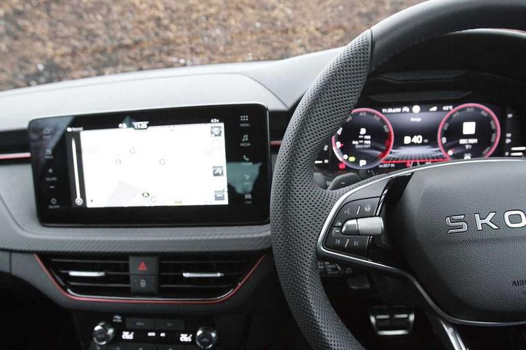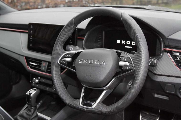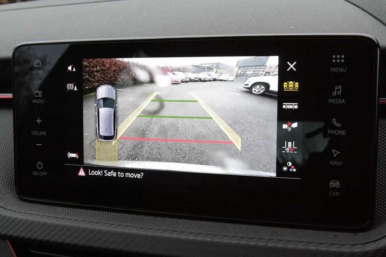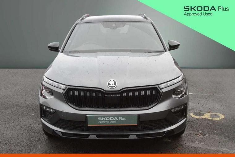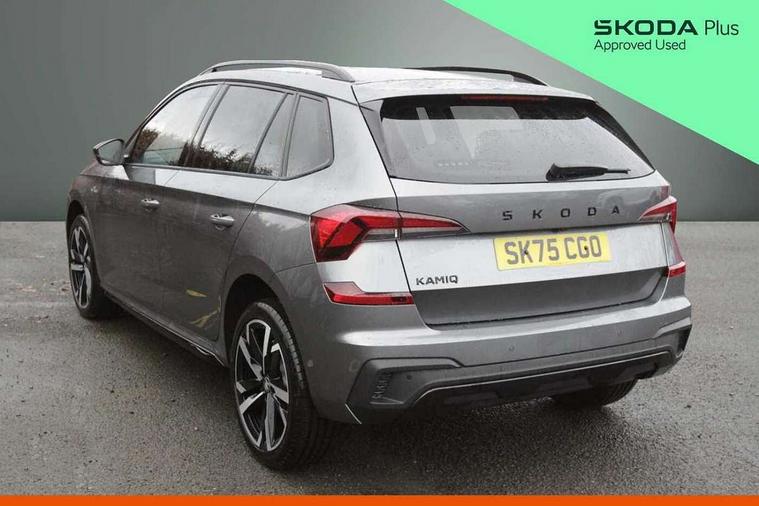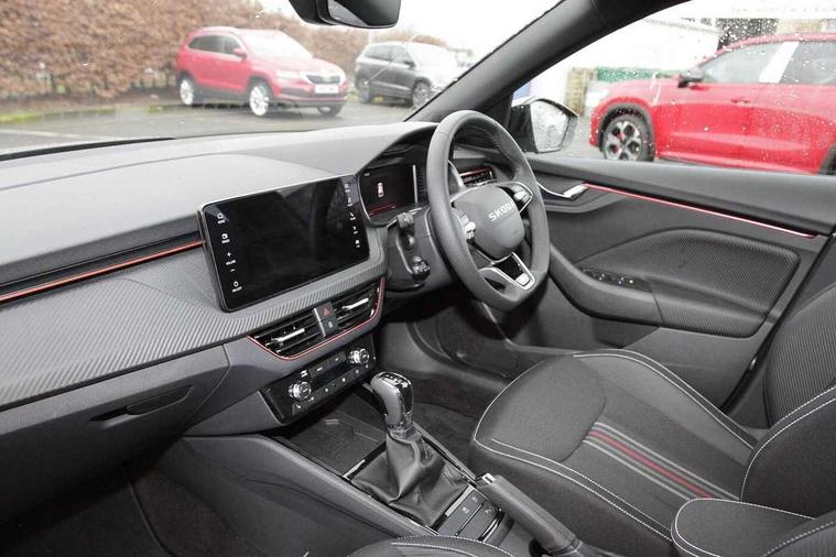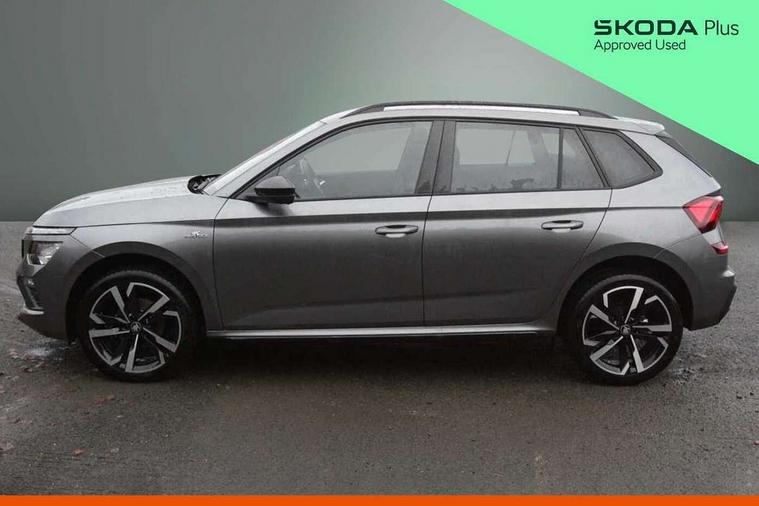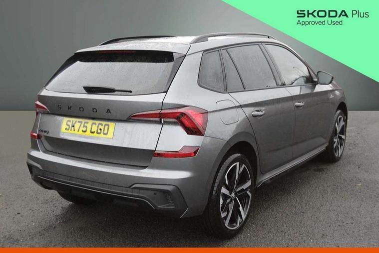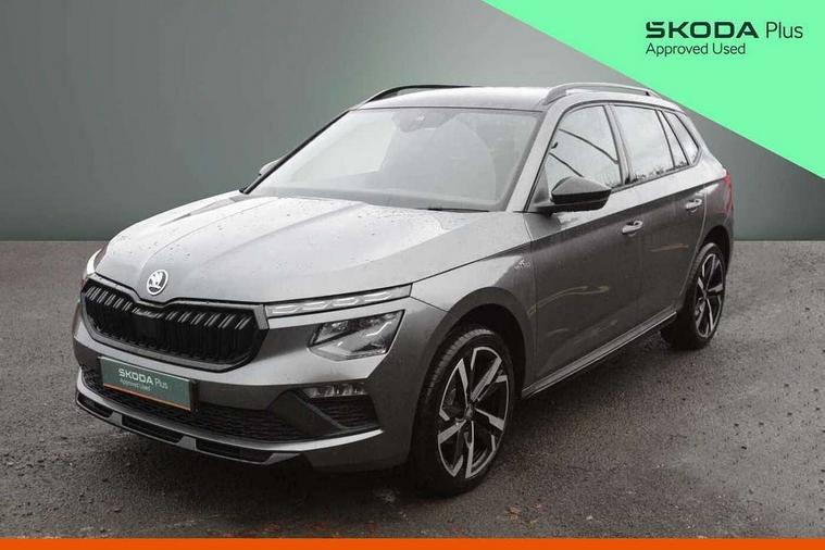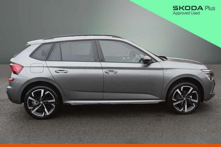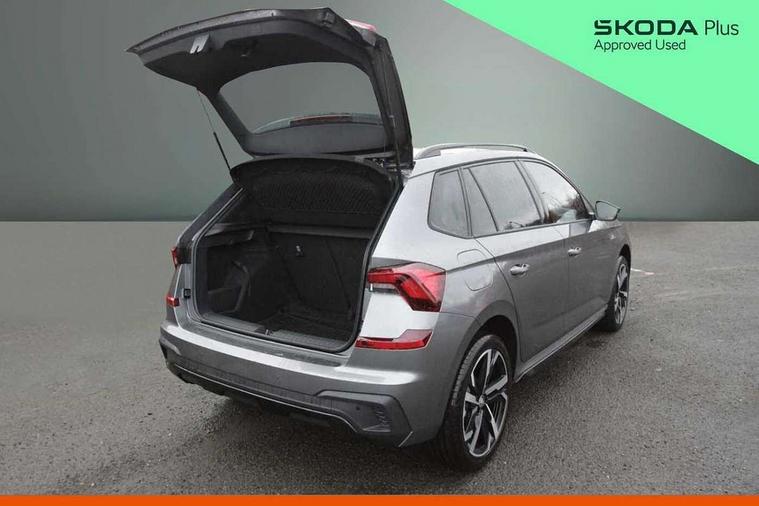 Advanced driver attention and drowsiness monitor, Bluetooth system, E-call, Front assist system, PAS, Rear parking sensors, Rear view camera, Service indicator, Speed limiter, Traffic sign recognition, Virtual cockpit with 10.25" display, Voice control system, Wireless smartlink, 4 USB C ports, 8 Speakers, 9.2" Skoda navigation display, DAB Digital radio, Auto dimming rear view mirror, Automatic headlight control with coming home and leaving home feature, Black door mirrors, Black radiator grille, Black rear diffuser, Black roof spoiler, Body colour bumpers, Body colour door handles, Boot lettering in black, Extended tailgate glass, Fixed panoramic sunroof with black roof rails, Front and rear electric windows, Heated rear window, LED daytime running lights, LED high beam, LED low beam, LED third brake light, Light sensors, Monte carlo plaque, Privacy glass, Rear side wing doors, Rear wiper, Ticket holder inside windscreen, 12V socket in luggage compartment, 3 seat bench in 2nd row, Aluminium pedals, Ambient lighting in white/red, Art leather carbon decor inserts, Art leather carbon door inserts, Black roof lining, Cargo elements, Chrome inner door handles, Driver and passenger sun visors with vanity mirror, Dual zone climate control, Front and rear roof lights, Front centre armrest, Front head restraints, Glove compartment with illumination, Height adjustable driver seat, Height adjustable front passenger seat, Ice scraper, Inner circulation control with pollen filter, ISOFIX on front passenger seat, Isofix preparation for back seats, Leather gearknob and handbrake lever, Manual lumbar support for front seats, Monte Carlo cloth upholstery, Net package and top tether hooks in boot space, Net under rear shelf, Pocket on the back of both front seats include mobile phone pockets, Rake/reach adjustable steering wheel, Reading lights, Rear centre armrests, Red hotstamping, Single front passenger seat, Sports seats, Textile floor mats, Third rear headrest, Top tether for front passenger seat, Umbrella in driver's door, Light and view plus package - Kamiq, 3x3 point rear seatbelts, Airbags - driver and front passenger, Disc brakes, ESP, Extended and predictive pedestrian/cyclist protection, Front passenger airbag deactivation switch, Front side airbags with curtain airbags, Hill hold control, Manual leather parking brake, Manual rear child locks, One tone horn, Seatbelt reminder for driver an co-driver, Traction control, Tyre pressure monitor, Anti-theft alarm system with interior monitoring, backup horn, towing protection and remote central locking with SAFE system, Anti-theft wheel bolts, Electronic engine immobilizer, 18" Ursa black diamond cut alloy wheels,