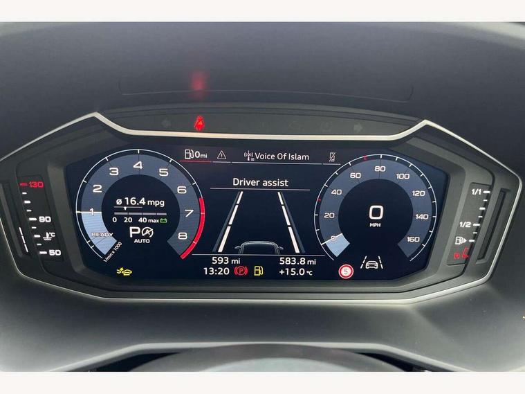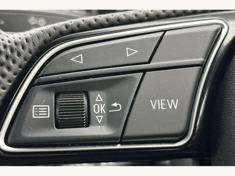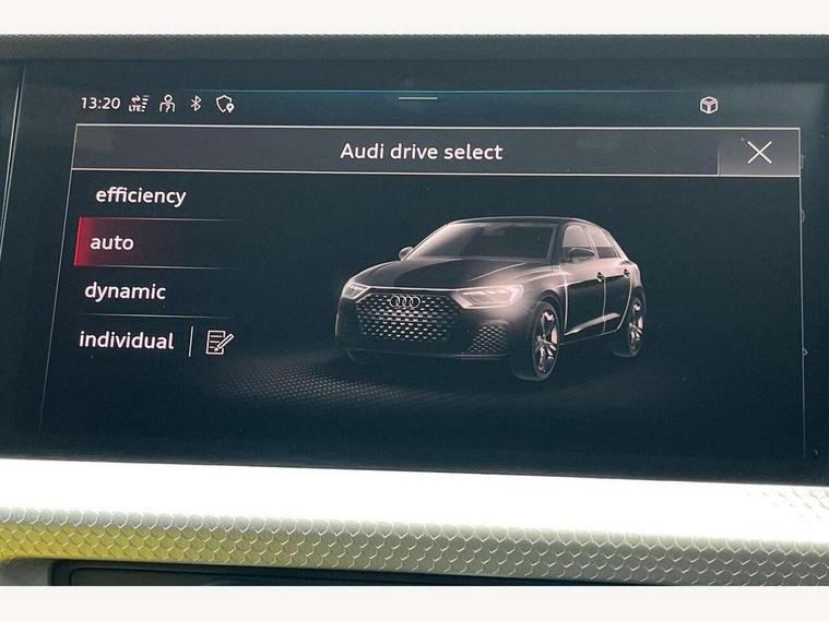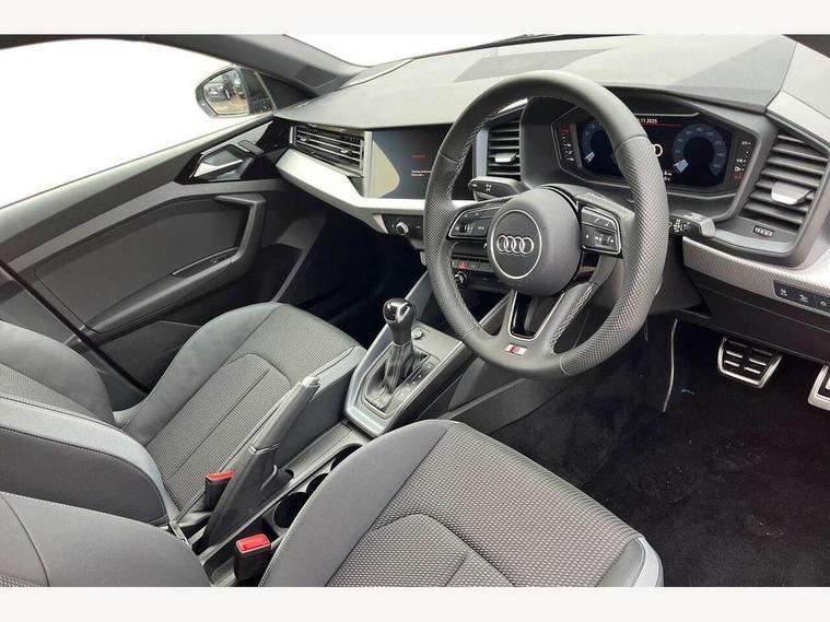 10.25" Digital instrument cluster display classis style instrument dials + speed, odometer, time, outside temperature, telephone menu + fuel level warning, Advanced driver attention and drowsiness monitor, Audi connect emergency call and service, Audi drive select, Audi remote connect and control, Audi smartphone interface, Bluetooth interface, Camera based traffic sign recognition, Cruise control, Driver's information system, Electromechanical power steering, Lane departure warning system, Rear parking sensor, Service interval indicator, Speed limiter, Start stop system with recuperation, Voice control system, Washer fluid level indicator, Sports suspension, 2 x USB type C connection points, 6 loudspeakers, DAB Digital radio, MMI radio plus with 10.1" colour MMI display screen and MMI touch, Auto dimming rear view mirror, Body coloured door mirrors, Door sill trims with aluminium inlays and S line logo in front, Electric front and rear windows, Electrically adjustable, heated, folding door mirrors with integrated LED side indicator, Front side air inlets in grained matt black and C frame in anthracite black, Headlight cleaning system, Heat insulating glass windscreen and side windows, Heated rear windscreen, High level LED brake light, LED daytime running lights, LED headlights with range control LED rear lights + dynamic rear indicators, Light and rain sensors, Privacy glass, Radiator grille and rear diffuser in matt anthracite black, Radiator protective grille frame in matt aluminium silver, Rear fog lights, Rear side wing doors, Rear wiper, S line badges on front wings, Side front spoiler lips in grained matt black, 12V socket in centre console with two cup holders, 3 rear seats with headrests, 3 seat bench in 2nd row, 3 spoke leather multi-function plus steering wheel features S badging and grips in perforated leather with contrast stitching, 40:60 Split folding rear seat or fully collapsed, Black cloth headlining, Front and rear velour black floor mats with contrast stitching in fine silver, Front head restraints, Front passenger seat, Height and reach adjustable steering wheel, Interior lighting includes roof module, front and rear reading lights and right luggage compartment lighting, ISOFIX child seat mounting for front passenger and outer rear seats including top tether attachment point of outer rear seats, Leather gear knob with aluminium trim, Leather handbrake grip, Manual air conditioning, Manual height adjustable for driver and front passenger seat, Manually adjustable lumbar support in front seats, Stainless steel pedals, Ambient lighting package - A1, Luggage compartment pack - A1, S line exterior styling pack - A1 Sportback, 3x3 point rear seatbelts, Audi pre-sense front with pedestrain and cyclist recognition, Brake assist function, Driver and front passenger airbag with front side and head airbags, Electronic Stability Control including ABS, EBD, ASR and EDL, Front passenger airbag deactivation switch, Hill hold assist, Manual rear child locks, Seatbelt height adjustment for front seats, Seatbelt monitoring, Tyre pressure loss indicator, Warning triangle and first aid kit, Anti theft alarm, Anti theft wheel bolts, Immobiliser, Remote control key with safelock, Aluminium trim for control switches, air vents and digital instrument cluster, Black dashboard, Silver grey inlays polygon structure in diamond paint finish, Structured grey accent surfaces insert of air vents, interior door handle recesses and centre console in quartz paint finish,