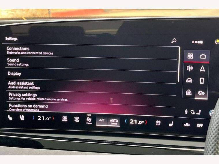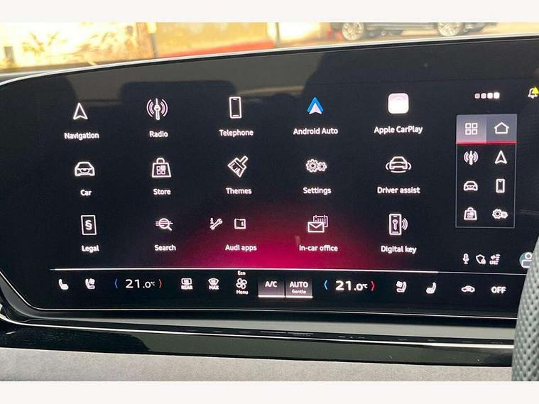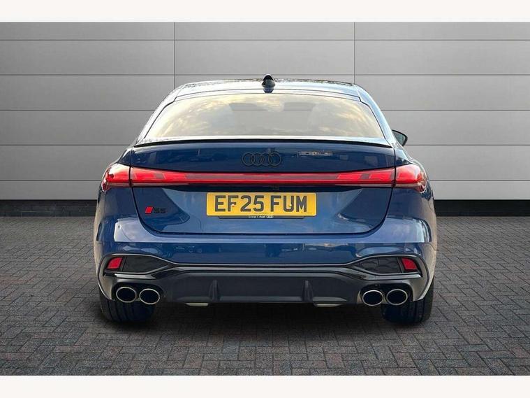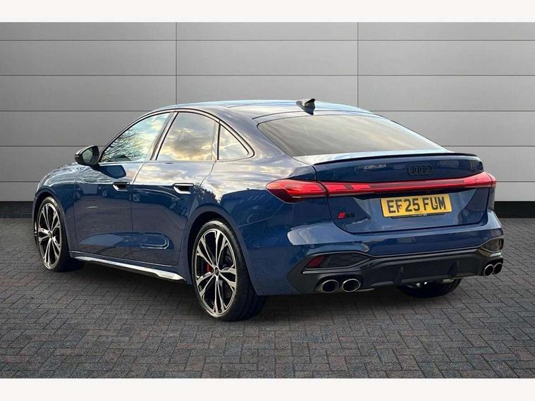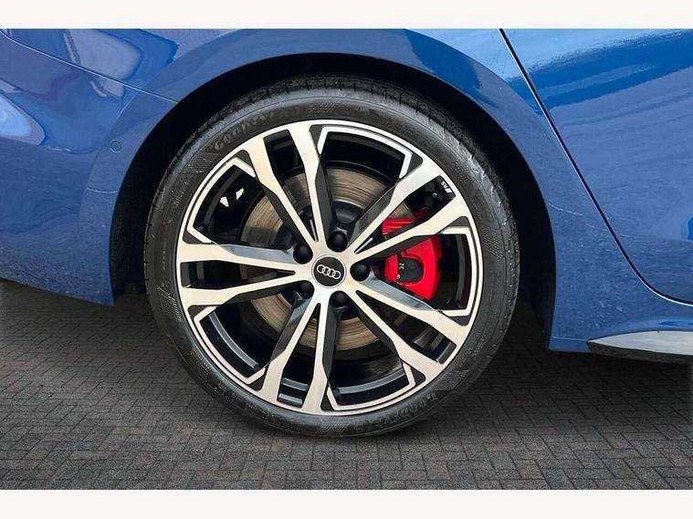 Adaptive cruise assist plus with steering intervention, Advanced driver attention and fatigue montior, Audi application store, Audi assistant, Audi connect emergency call and service, Audi drive select, Audi smartphone interface, Audi virtual cockpit plus with 11.9" OLED colour display, Automatic start/stop system with coasting functionality, Camera based traffic sign recognition, Garage door opener, Intersection assist, Lane change assistant with exit warning system, rear cross traffic alert and rear turn assist, Lane departure warning with emergency assist, MMI 10.9" front passenger touch display, MMI navigation plus with high resolution 14.5" OLED touchscreen colour display, Park assist plus, Parking system plus with 360 display, Progressive steering with servotronic, Swerve assist and turn assist, Top view camera, Traffic sign based speed limiter, Quattro with sport differential, S sports suspension with damper control lowered by 20mm, 2 USB-C ports in both the front and rear, DAB digital radio reception, Smartphone compartment with wireless charging, Aluminium window trims, Auto dimming rear view mirror, Black door handles, Black roof rails, Dark chrome-plated tailpipe trims, Digital OLED tail lights including communication light, Door mirrors - electrically adjustable, heated, folding and auto dimming on both sides, Front and rear electric windows, Front door sill trims with aluminium inlays, illuminated with 'S' logo, Headlight cleaning system, High beam assist, LED daytime running lights, LED third brake light, Matrix LED headlights with eight light signatures selectable via the MMI or the myAudi app, Panoramic glass roof with switchable transparency, Privacy glass, Rear and side windows with heat insulating glass, Rear side wing doors, Rear wash/wipe, Red S rhombus badging with S lettering on rear, S bumpers, radiator grille and diffuser in titanium matt black and diffuser insert in matt silver, White rhombus logo projection light in exterior mirrors, Windscreen with acoustic glazing, 3 rear headrests, 3 seat rear bench, 3 spoke leather steering wheel with multi-function buttons with touch control, flattened on top and bottom, with S badging and contrast stitching, 3-zone automatic climate control, 40:20:40 split folding rear seat bench with centre armrest and cup holders, Comfort front centre armrest, Electric steering wheel adjustment, Electrically adjustable front seats, Front and rear floor mats, Front sport seats plus with integrated headrest and S embossed logo, Headlining in black cloth, Heated front and outer rear seats, Heated steering wheel, i-Size child seat mounting on the front passenger side and outer rear seats, i-Size and top tether on the outer rear seats, Luggage compartment lid, electrically opening and closing, Memory function for driver seat, Pearl Nappa leather upholstery, Pneumatically adjustable lumbar support, Single front passenger seat, Stainless steel pedals and footrest, Steering wheel grips in perforated leather and shift paddles, Ventilation seat and massage function for the driver and front passenger, Black styling package plus - A5, Sound and vision pack - A5, 3x3 point rear seat belts, Acoustic vehicle alerting system, Convenience key with safelock, Driver airbag, Electric child safety locks, First aid kit with warning triangle and vests, Front emergency brake assist, Front passenger airbag, Front passenger airbag deactivation, Hill hold assist, Occupant detection in rear seat area, Proactive passenger protection system for front, sides and rear, Red brake calipers, Seat belt monitoring with rear seat occupant reminder, Side airbags in front and rear with head airbag system and front interaction airbag, Tyre pressure loss indicator, Anti theft alarm, Anti-theft wheel bolts, Keyless Go, Accent surfaces and control buttons in gloss black, Black dashboard with contrast stitching, Softwrap in Dinamica with contrast stitching, Upper and lower interior elements in dinamica microfiber, 20" 5 twin spoke design Audi Sport alloy wheels in metallic black and gloss turned finish, Tyre repair kit,