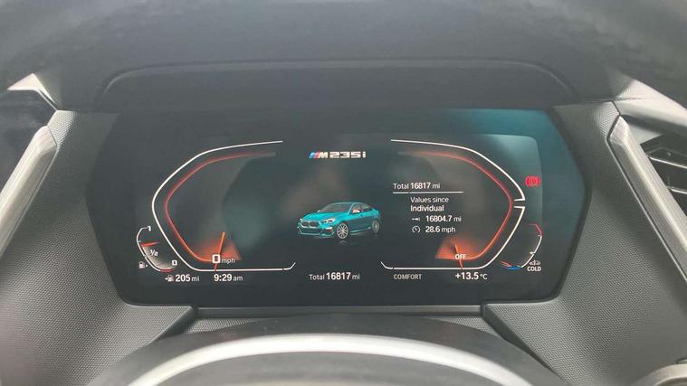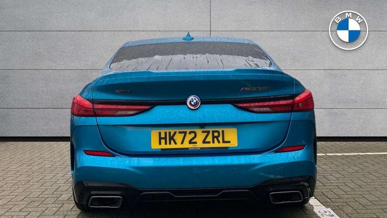 Active guard plus, Attentiveness assist, Auto start-stop, BMW ConnectedDrive online services, BMW Intelligent Personal Assistant, BMW Live Cockpit Professional with 10.25" high resolution instrument and control display, BMW Online services, BMW operating system with 7.0 mid interface, BMW Teleservices, Check Control warning system for monitoring of lights and door/luggage compartment open warning, Cruise control with braking function, Electro hydraulically controlled multi plate clutch in rear axle, Energy efficient operating strategy, iDrive controller with 7 short cut favourite buttons on centre console, Integrated navigation data with map data via USB +features such as 3D landmarks and micro city models, Integrated owners handbook, Intelligent voice assistant, Lane departure warning system, M Sport steering with M235i xDrive M performance specific settings, On board computer - average speed+fuel consumption, service interval, clock/date, odometer/trip meter, outside temperature display and ice warning, Optimum shift indicator, Personal Profile, Pull away assistant, Speed limiting function, 2 balance shafts, 8 speed sport automatic transmission with electronic selector lever, auto P function, coasting idle, race track, sport, gearchange display manual mode, Aluminium lightweight construction, BMW TwinPower twin-scroll Turbo four-cylinder petrol engine, Double VANOS, Drive performance control with ECO PRO comfort + sport mode, Electronic differential lock, Engine cover with M performance designation, High precision injection, Larger fuel tank capacity (50 litres), Launch control, M235i specific heavily de-throttled engine intake air guide, M235i specific high-performance cooling package, M235i specific larger turbocharger with integrated divert-air valve, Performance Control, Petrol Particulate Filter, Power transmission of front wheel drive on the rear axle via angle transmission on the front axle differential and two part cardan shaft, VALVETRONIC engine management, Variable, stepless and infinitely adjustable distribution of drive torque between the front and rear axles, xDrive intelligent all wheel drive with M235i specific reinforced components, 2x USB Type C ports (for charging and data transfer), 4G LTE Connectivity with hard wied 4G network sim card, DAB digital radio, MP3 players and RDS double tuner, Auto wipers, Automatically dimming rear view mirror, Body colour door handles, Direction indicator side lights integrated exterior mirrors, Electric windows - front and rear, with open/close fingertip control and trap release, Exterior mirrors - electrically folding with anti-dazzle, Fading support, Follow me home headlights, Front and rear bumper system with replaceable deformation elements, Front door sill finishers in black plastic with M235i designation, Heated, electrically adjustable exterior mirror aspheric on driver side, convex on passenger side, High gloss black B pillar finish, High gloss shadow line exterior trim, High level third brake light, LED daytime running lights, Lightweight engineering, M Performance exhaust system with valve control and minimised exhaust back pressure, M rear spoiler, Model designation on right side of tailgate includes xDrive designation onleft handside for M235i xDrive, Preparation for high beam assistant, Rain sensor with automatic headlight activation, Rear boot, Rear fog lights, Rear side wing doors, Reinforced crank drive, new pistons and adapted con rods, Reversing light in rear light cluster, Welcome lighting, 12V power socket in centre console, 2 cupholders in front centre console, 3 rear seat head restraints, 3 rear seats, 3 spoke M sports design leather steering wheel finished in nappa leather with specific M badge, Additional under floor storage in luggage compartment, Anthracite finished floor mats with contrasting surround, Anthracite headlining, Automatic two zone climate control air conditioning, Child seat ISOFIX attachment for two outer rear seats and front passenger seat with anchorage points, Conditioned based service, Driver and front passenger seat heating, Front and rear door pockets including bottle trays, Front and rear side armrests integrated into door trim, Front armrest foldable with integrated storage compartment, Front centre interior light over interior mirror and rear centre automatic interior light when door is opened/ignition switched off or via remote key, Front head restraints, Front M Sport seats, Front passenger seat, Glove compartment, Glovebox with light, Luggage compartment lighting, Manually adjustment steering wheel column, Multi-function controls for steering wheel, Shift-by-wire selector shift, Steering wheel paddles, Sun visors with vanity mirrors and insert tab, Through loading system with 40/20/40 split folding rear seat, Two lashing eyes, Additional interior lighting pack - 2 Series Gran Coupe, Connected pack professional - 2 Series Gran Coupe, Extended storage pack - 2 Series Gran Coupe, M Sport exterior styling aerodynamics pack - 2 Series Gran Coupe 235i, 2 tone horn, Airbag - Front driver and passenger, front and rear head, front side, curtain head protection, manual deactivation of front passenger airbag possible, Anti lock braking system (ABS) with cornering brake control, BMW emergency call, Brake drying, Braking readiness, City braking function, Crash sensor activating of airbags, Unlocking doors, hazard warning lights, interior light, safety battery terminal, Dynamic stability control + (DSC+), Dynamic Traction Control - DTC, Electrically operated hand brake, Integrated torsen mechanical limited slip differential on front axle, M Sport braking system in blue high gloss + blue painted brake calipers with M designation, M sport seatbelt, Rear brake discs, Rear child proof door locks, Seat belt security check for driver and front passenger, Seatbelt warning, Side impact protection, Three point seat belts on all seats including front belt stopper, pyrotechnic belt tensioners and belt forc