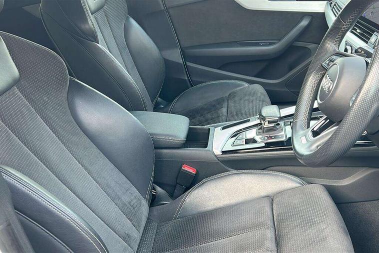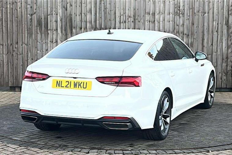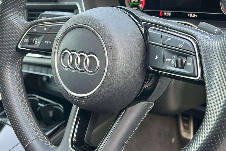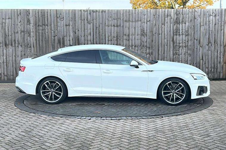 Audi connect safety and service (e-call), Audi connect with Amazon Alexa Integration, Audi drive select (Auto, Comfort, Dynamic, Efficiency and Individual), Audi parking system plus with front and rear sensors, Audi phone box with wireless charging, Audi smartphone interface, Audi virtual cockpit - 12.3" full colour digital instrument cluster, vehicle/engine speed, Radio/media information+Driver assistance systems, Automatic start-stop system with coasting functionality and efficiency programme, Bluetooth interface, Electro-mechanical power steering, Email, calendar and text messages displayed via MMI, MMI nav+ with MMI touch - 10.1" high resolution MMI display, touch sensitive, 3D map, route/country info, dynamic route guide, personal route assist, Power operated tailgate, Rear view camera, Service interval indicator, Voice control system, Diesel particulate filter, Sports suspension lowered by 23mm, 8 passive loudspeakers, CD player, DAB digital radio reception, Two additional USB ports for rear passenger in rear centre console, Two SDXC card slots, Audi matrix LED headlights with LED rear lights + dynamic front and rear indicators, Auto dimming rear view mirror, Body colour bumpers, Body colour door handles, Body colour front spoiler lip, Body colour side sill trim, Body coloured door mirrors, Electric adjustable heated door mirrors, Electric folding door mirrors, Electric front windows, Front fog lights, Honeycomb structure radiator grille in grained matt black, LED daytime running lights, Matt aluminium silver tailpipe trim, Privacy glass, Rain and light sensors, S line badges on front wings, S line front and rear bumpers with side skirts, S Line rear diffuser in matt titanium black with trim strip in matt aluminium silver, Side air inlets in grained matt black with matt aluminium silver inlay, Windscreen with acoustic glazing, 4 way electric lumbar support for driver and front passenger, 40/20/40 split folding 3 seater rear bench seat, Adjustable steering column, Black cloth headlining, Black perforated leather gearknob, Contrast stitching on seats, steering wheel and gear lever gaiter, Deluxe 3 zone electronic climate control, Front centre armrest, Front head restraints, Front/rear floor mats, Heated front seats, Illuminated door sill trim with S logo, ISOFIX child seat mounting and top tether, Luggage compartment mat, Manual seat adjustment, Rear headrests, Stainless steel pedals, Sunvisors with vanity mirrors, Tool kit, LED interior light pack - A5/RS5, 3x3 point rear seatbelts, 6 airbags - Driver, front passenger, curtain and side airbags, Electromechanical parking brake, Electronic Stabilisation Control (ESC) including ABS, ASR and EDL, Front passenger airbag deactivation, Height adjustable front seatbelts, Hill hold assist, Multi collision brake assist, Pop-up bonnet for pedestrian protection, Pre sense city, Seatbelt monitoring, Tyre pressure warning, Variable restraint system, Warning triangle and first aid kit, Anti theft alarm system, Anti theft wheel bolts, Immobiliser, Keyless Go, Remote central locking, Matt brushed aluminium inlays, Tyre repair kit,