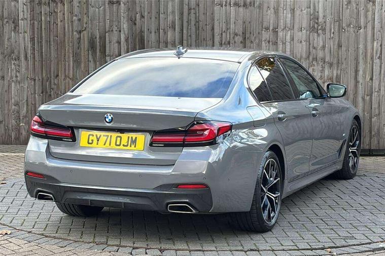 32GB hard disc drive (HDD) memory, Active Guard, BMW Live Cockpit Professional sat nav system with 12.3" instrument display and high resolution control display, BMW Teleservices, Brake pad wear indicator, Cruise control with brake assist, Driving experience switch, Electric Power Steering (EPS) with Servotronic, iDrive touch controller with shortcut buttons, Intelligent emergency call, Multifunctional instrument panel, Oil sensor for level and grade, On board computer inc. average speed, fuel consumption, liquid crystal Info display, journey computer, outside temperature display, personal profile, On-board diagnosis - OBD, Powered by Operating System 7.0, Service interval indicator, Speed limiting function, Stop/start button, 48V Mild hybrid technology, Diesel particulate filter, Drive performance control with ECO PRO comfort + sport mode, Engine cover with twin turbo designation, M sport suspension, Steptronic transmission with gearshift paddles on steering wheel, DAB Digital radio, Favourite buttons, Acoustic glazing, All round anti-corrosion system, Automatic windscreen wipers and automatic headlight, Automatically dimming rear view mirror, BMW Individual high gloss shadow line includes exterior mirror frame, window frame surround, B pillar finish, air breather in high gloss black, Body colour door handles, Body coloured bumpers, Door handle illumination, Dynamic brake lights with LED technology, Electric front and rear windows with fingertip open/close + anti-trap facility and comfort closing function, Electrically adjustable and heated exterior mirrors includes integrated direction indicators and automatic parking function, Folding exterior side mirror with auto- dimming, Follow me home headlight function, Heated windscreen washer jets, High gloss black active air stream kidney grille, LED daytime running lights, LED third brake light, M designation on front side panels, left and right in chrome, Trapezoidal visible exhaust tailpipes, xDrive designation on tailgate, 12V power socket in front and rear, 2 cup holders in front, Armrest - front and rear integrated door trim, centre console includes storage compartment, rear centre includes 2 cupholders, Child seat ISOFIX attachment with rear outer seats includes top tether, Front and rear footwell lights, Front reading lights, Height and length adjustable steering column and activation via lateral lever on the steering column, Lockable glove compartment with light, M door sill finishers, M specific pedals, M specific velour floor mats, Multifunction controls for leather steering wheel, Rear headrests, Three spoke sport M leather steering wheel, Ambient lighting pack - 5 Series, Connected package professional - 5 Series, M Aerodynamic pack - 5 Series, Parking assistant pack - 5 Series, Airbags - driver/front passenger, rear and side, first and second row seats head airbags, front passenger seat airbag deactivation, Anti-lock braking system (ABS), Automatic Stability Control (ASC), Brake assist function, Brake energy regeneration, Cornering brake control (CBC), Crash sensor activating central locking release, hazard warning lights, fuel cut off and interior lighting, Deformation zones - front and rear with door reinforcements and bumpers up to 2.5 mph, DSC - Dynamic Stability Control, Dynamic brake control, Dynamic Traction Control - DTC, Electromechanical parking brake with automatic drive away release and auto hold function, Electronic brake force distribution, Engine drag torque control, Front and rear brake discs with interior ventilation, Front head restraints with anti-whiplash, Hill start assist, M Sport brake in high gloss blue painted brake callipers with M designation, Mechanical child proof lock on rear doors, Passive protection for pedestrians, Side impact protection, Three point seat belts for all four seats, Two tone horn, Tyre pressure indicator, Warning triangle and first aid kit, Alarm system (Thatcham 1) with remote control and electronic engine immobiliser, Locking wheel bolts,