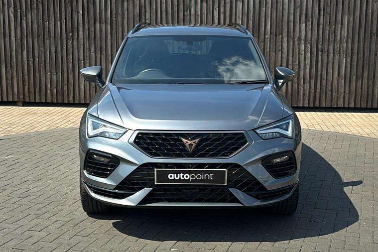 Cruise control system with speed limiter, CUPRA drive profile -Normal, Sport, CUPRA and Individual modes, steering/throttle response, gearshift mode, sound actuator and dynamic chassis control, Digital cockpit, E-call, Front and rear view camera, Outside temperature gauge, Progressive power assisted steering, Self parking functionality (includes front and rear parking sensors), Top view camera, Trip computer, Wireless full link smartphone integration, Wireless phone charger, CUPRA sport suspension, Steering wheel mounted audio/phone controls, Body colour bumpers with dark aluminium diffusor, Body coloured wheel arch surrounds, Dark tinted rear windows, Daytime running lights, Door mirrors with welcome CUPRA light silhouette, Dynamic headlight range control with self adjusting whilst driving, Electric adjustable/heated/folding door mirrors, Front and rear electric windows, Front grille frame in chrome, Full LED headlamps with lens and LED front fog lamps with cornering function, Gloss black door mirrors, Gloss black roof rails, Gloss black side mouldings, Gloss black side window trim, Illuminated aluminium front door sill, LED rear tail lights with dynamic indicators, Rear fog lights, Rear side wing doors, Rear spoiler, Rear wash/wipe, Specific CUPRA design front bumper, Third brake light, Visible twin black exhaust pipes in both sides with dark aluminium diffuser, 12v socket in front, 3 seat bench in 2nd row, 60/40 split folding rear seat, Aluminium pedals, Black roof lining, Bucket sport seats in dinamica upholstery, Cupra steering wheel emblem, Document holder under left front seat, Dual zone climate control, Front and rear head restraints, Front centre armrest, Front seat back storage pockets, Heated steering wheel, Height adjustable driver and passenger seat with lumbar adjustment, ISOFIX points in outer rear seats with top tether anchorage points, Leather steering wheel and gear knob, Multicoloured ambient lighting with LED interior illumination, Pedal cluster, Rear armrest and easy back seat release mechanism from boot, Single front passenger seat, Sports steering wheel, Steering wheel mounted gearshift paddles, Storage compartment in roof console for sunglass, Storage compartment under driver's seat, Convenience pack - Ateca, Interior lighting pack - Ateca, Navigation system plus pack with DAB - Ateca, 3x3 point rear seatbelts, ABS, Traction control system (TCS), Electronic stability control (ESC) and Electronic differential lock system (XDS), Airbags - Driver and front passenger airbag with deactivation, front side, two curtain and driver's knee airbags, Black brake callipers with CUPRA logo, Electric parking brake with auto hold function, Front and rear seatbelt reminder, Front assist with autonomous emergency braking, Hill hold control, Manual rear child locks, Single tone horn, Tiredness recognition system, Tyre pressure monitoring system, Alarm, Keyless entry, Locking wheel bolts,