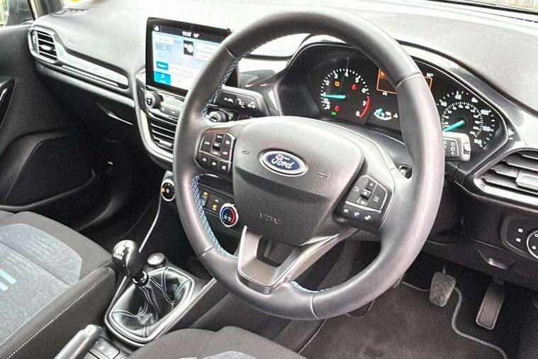 4.2" Colour TFT Ice blue illumination analogue cluster, Driver alert system, Electric power steering, Ford easy fuel, Lane keep assist, Lane keeping aid, Rear parking distance sensors, Selectable drive modes (Normal, Sport, Track), Trip computer, Rough road suspension with increased ride height adjust, 3rd brake light, Auto high beam, Automatic headlights, Body colour bumpers, Body coloured electrically operated with side indicators, Electric front windows/one touch facility, Electric rear windows, Quickclear heated windscreen, Rain sensing wipers and auto dimming rear view mirror, Rear privacy glass, Rear side wing doors, Rear wiper, Rugged bodystyling kit with active front wing badges, 3 rear headrests, 3 seat bench in 2nd row, Adjustable head restraints, Centre console with opening armrest, 2x cupholders, 12v and USB, Cloth upholstery with dark blue stitching, Leather gear knob, Manual 2 way passenger seat adjust, Manual 4-way driver seat adjust, Manual air conditioning, Premium floor mats, Sensico wrapped steering wheel, Single front passenger seat, 3 point seatbelts on all rear seats, Electronic stability control with hill start assist, Front and rear seat belt warning, Manual child lock in rear doors, Tyre pressure monitoring system, Keyless start with 'Ford Power' starter button, MyKey system, Remote central locking, Thatcham alarm with power door dead locks, 17" 5 spoke alloys with rough metal machined finish,