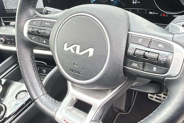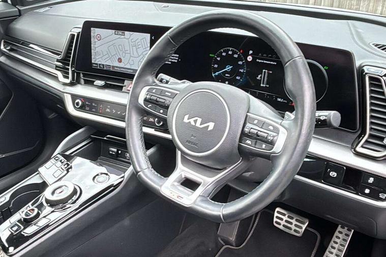 12.3" Display with navigation, 12.3" supervision colour cluster display, 360 degree around view monitor, Apple car play/Android Auto with voice control, Blind spot collision avoidance assist, Blind spot view monitor, Drive mode selector, E-call, Forward collision avoidance assist (FCA) - city/pedestrian/cyclist/junction covering, Front and rear parking sensors, Highway Driving Assist (HDA), Intelligent speed limit assist, Kia Connect (UVO), Lane Following Assist (LFA), Lane keep assist, Low washer fluid warning, Parking collision avoidance assist (PCA), Remote smart parking assist, Reversing camera system integrated into centre fascia screen, Smart cruise control with stop and go functionality, Smart power tailgate, Speed sensitive power steering, Trip computer, Windscreen washer level indicator, Wireless Smartphone charger, Intelligent Stop and Go, Terrain mode select (Mud, Snow, Sand), Bluetooth audio streaming, DAB Radio with MP3, Harman Kardon premium sound system, Rear USB port, Steering wheel mounted audio controls, USB C type charging ports on centre console, USB C type charging ports on side of front seats, USB port for connection of a media device, All round electric windows with drivers and front passenger auto up/down function, Automatic headlight control system, Automatic window defogger, Backlite glass heated with timer, Body colour and black bumper with silver accents, Body colour exterior door handles, Body colour radiator upper garnish and door garnish, Dual LED adaptive headlamps, Electric panoramic glass sunroof (Electric one touch with safety function), Electrically adjustable/heated/folding door mirrors with LED indicators, Front and rear chrome skid plates, Gloss black door mirrors, Gloss black radiator grille, Gloss black side sill and wheel arch body mouldings, Glossy black roof rack, High beam assist, Interior electrochromic mirror, LED daytime running lights, LED front fog lamps, LED High mounted stop light, LED rear combination lamp, Rain sensing wipers with aero blades, Rear fog lamp, Rear privacy glass, Rear side wing doors, Rear spoiler, Rear wiper, Satin finished beltline, Silver coloured inserts to bumpers, Tinted rear glass, Trailer stability assist, 10 way driver/8 way passenger electrically power adjustable seats, 12V power socket in front centre fascia and luggage compartment, 3 seat bench in 2nd row, 3 x passenger assist grips, 40/20/40 split folding rear seat, All-round height adjustable headrests, Ambient lighting, Black headlining, Centre console storage box, Cupholders in rear armrest, D-Shaped sports leather steering wheel and perforated inserts with GT-Line logo, Door courtesy lamps, Drink holder at centre armrest, Driver and front passenger side sunvisors with illuminated vanity mirrors, Driver seat memory function, Drivers seat power lumbar support, Front and rear door storage, Front seat and rear pockets, Front/rear centre armrests, Gear shift indicator, Glovebox illumination, Heated front and outer rear seats, Heated steering wheel, Interior door lock/unlock function, ISOFIX Child seat top tethers and anchor fixings outer rear seats, LED interior personal lamp, LED lighting in overhead console, Luggage area LED light, Luggage area load cover, Luggage net with hooks, Metal paint interior door handles, Paddle shift controls, Rear cabin light, Rear coat hooks, Single front passenger seat, Sports pedals, Suede leather upholstery, Three zone climate control, Tilt/telescopic adjustable steering wheel, Ventilated front seats, Ventilation ducts to rear compartment, Active front headrests, All round 3-point seatbelts, Anti-lock braking system (ABS), Dual front side airbags, Dual horn, Electronic parking brake, Electronic stability control with downhill brake control, Front passenger airbag cut-off switch, Front seatbelt pretensioners + load limiters, Height adjustable front seatbelts, Hill start assist control (HAC), Impact sensing auto door unlocking, Multi collision brake assist, Rear door child safety locks, Rear seat alert system, Traction control, Twin curtain airbags, Twin front airbags, Tyre pressure monitoring system, Advanced anti-theft system including immobiliser and alarm, Door deadlocks, Engine Start/Stop Button with Smart Entry System, Locking wheel nuts, Speed sensitive auto door locking, Visible vehicle identification number, Aluminium pattern finish centre fascia and door garnish, 19" GT-Line alloy wheels, Michelin tyres, Tyre mobility kit,