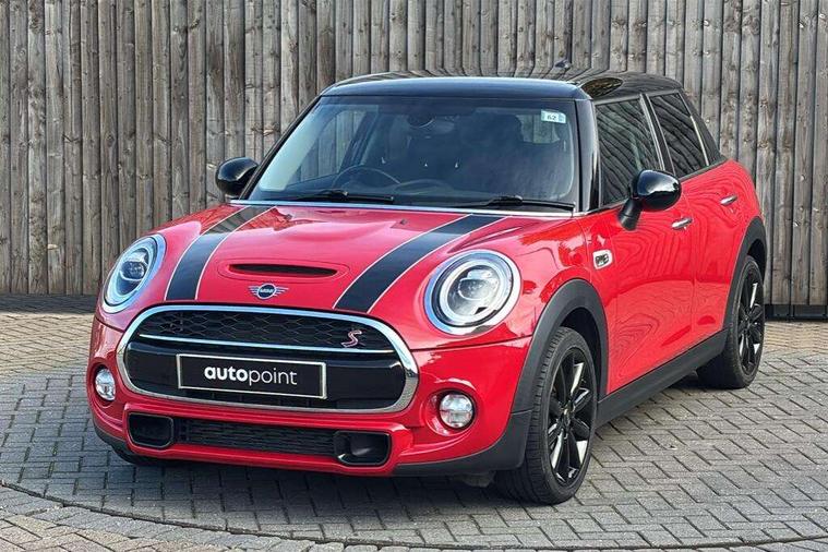 Compatible mobile phone bluetooth with audio streaming, Instrument cluster, Mini E-call, MINI TeleServices, On board computer, Service interval indicator, Performance Control, 6.5" touchscreen with LED ring, FM tuner and DAB digital radio, Automatic headlight activation switch, Bonnet scoop, Chrome border honeycomb structure radiator grille with S badge, Chrome plated fuel cap, Dynamic brake lights, Electric front+rear windows, Heated rear window, Heated windscreen washer jets, LED headlight with closed ring and daytime driving lights, Metal door sill strips with Cooper S imprint, Model logo Cooper S on right of tailgate, Rain sensor window wipers, Rear fog lights, Rear LED lights with union jack design, Rear window wiper, Side scuttle panel with integrated indicator, Sun/heat protection glass, Two central exhaust tailpipes with chrome finisher, White indicator lenses, 12V Accessory socket in centre console, 4 lashing eyes in luggage compartment, 60/40 split folding rear seat, Chrome interior highlights, Colour line - Carbon black, Cupholders, Front and rear isofix with front passenger airbag deactivation, Glove compartment, Height and length steering column adjustment, Interior lighting with 12 basic colours selectable via toggle switch in roof, Leather gearshift lever and handbrake gaiters, LED reading lights, vanity mirror lights, front foot well light and spotlight on front seats, Manual air conditioning, Mechanical seat adjustment, driver seat height adjust, forward/back and front seats backrest, Mini logo projection on floor from drivers exterior mirror, Multifunction steering wheel, Satellite grey headlining, Storage compartments in doors, Storage pocket on back of front seats, Sunvisors with vanity mirrors, Tool kit, 3 point seatbelts on all five seats, 6 Airbags - front, side, head and seat belt tensioners, Anti-lock braking system (ABS), DSC - Dynamic Stability Control, Front and rear disc brakes, Hill start assist, Two tone horn, Tyre pressure monitoring system, Alarm system with tilt sensor, monitoring doors, bonnet interior and tailgate, Electronic vehicle immobiliser, Start/stop toggle with keyless go,