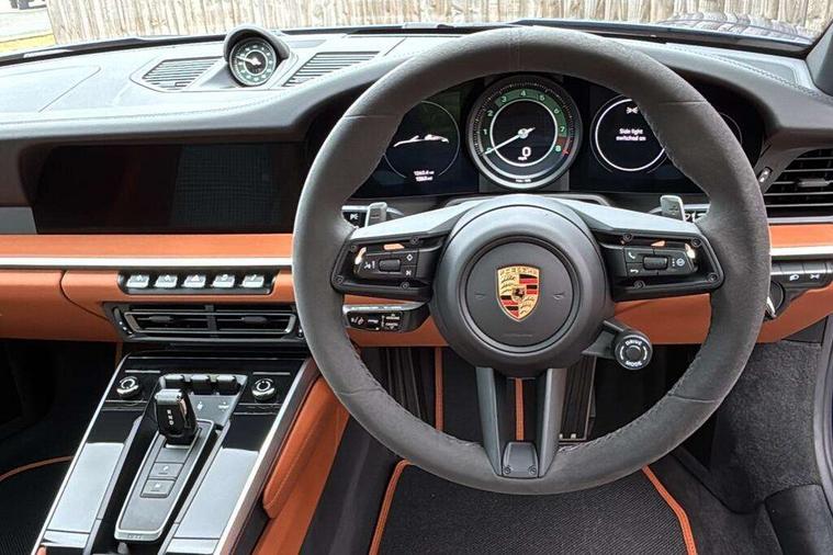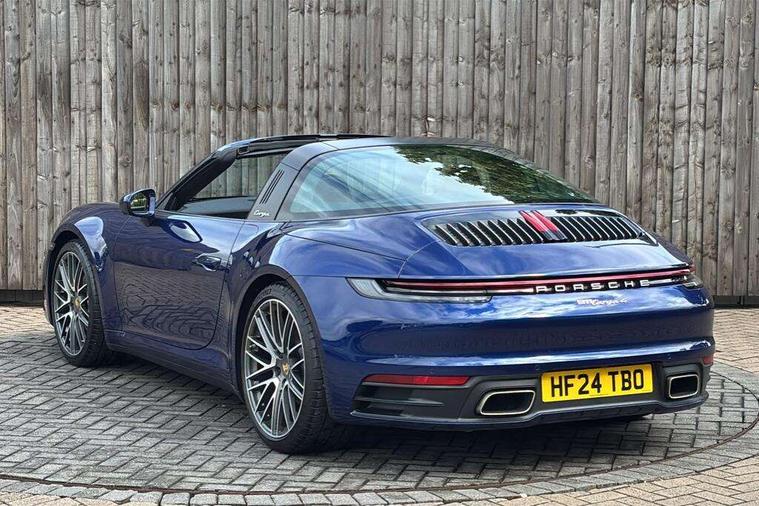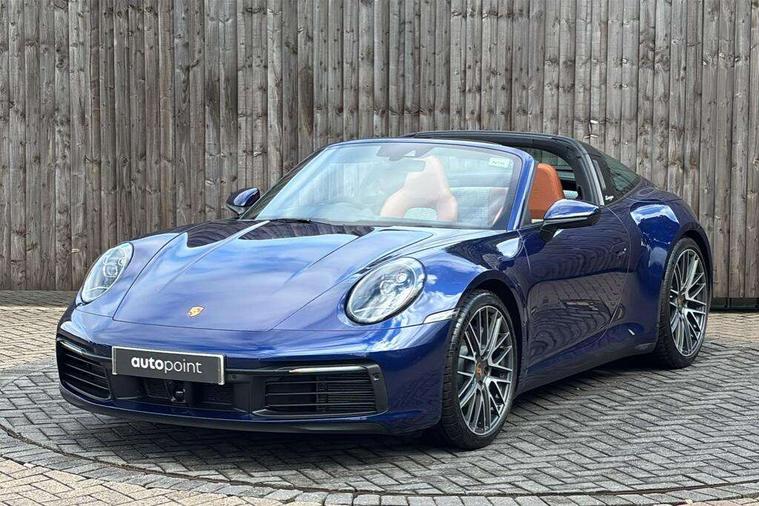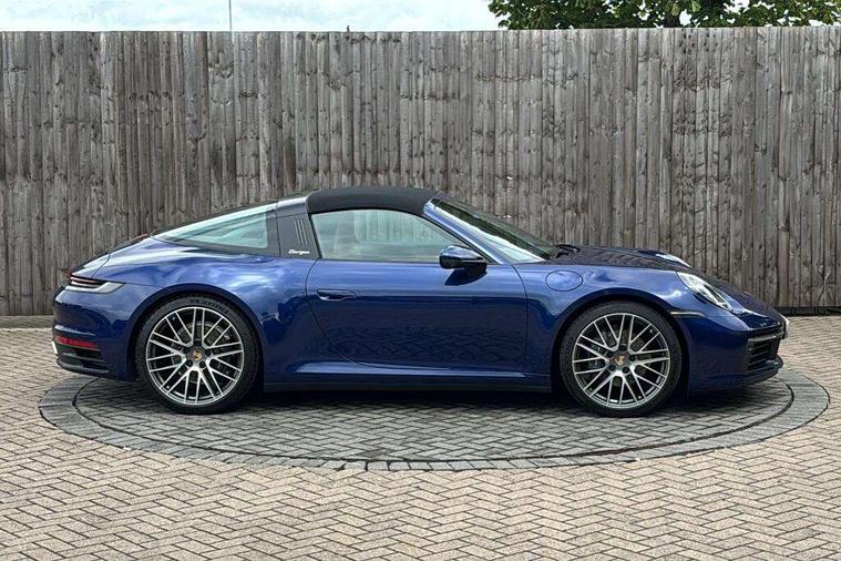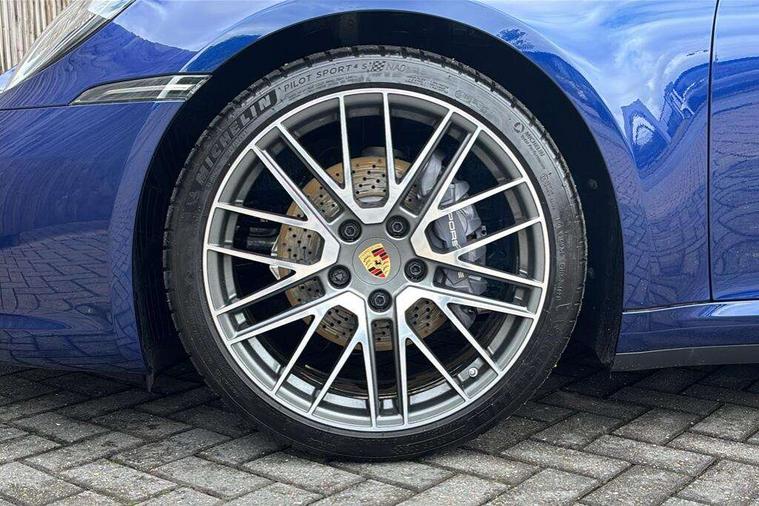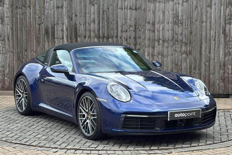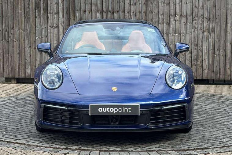 10.9 inch centre display, 2 USB-C ports in center console main storage compartment lid, socket (12-volt) in passenger footwell, Automatic start/stop system, eCall emergency system, Gear indicator in rev counter, Instrument cluster with central analogue rev counter and two 7-inch TFT displays, Music streaming and online radio, remote services and a wide range of other Porsche connect services, Porsche Communication Management (PCM) including online navigation module, mobile phone preparation, audio interfaces and voice control system, Porsche WET Mode, Service indicator, Smartphone integration with Apple CarPlay and Android auto, Stationary management with HOLD function, Trip computer, Warn and brake assist including pedestrian protection, 8 Speed Porsche Doppelkupplung (PDK), All wheel drive with map controlled multi plate clutch Porsche Traction Management (PTM), Aluminium block and cylinder heads, Direct fuel injection (DFI), Expansion intake manifold, Four valve per cylinder, Integrated dry-sump lubrication with an on-demand oil pump, McPherson front axle with anti roll bar, Multi-link rear axle with anti-roll bar, Porsche Active Suspension Management (PASM), Porsche Stability Management (PSM), ABS with extended brake functions, Twin turbocharger intercooled, Two gasoline particulate filter, Two three-way catalytic converters and on-board diagnostics for monitoring emission control system, VarioCam Plus variable valve timing and switchable valve lift, Water cooled with thermal management, DAB Digital radio, "PORSCHE" lettering integrated in taillight strip, Auto deploying rear spoiler, Automatic headlight activation including welcome home lighting, Automatically dimming interior and exterior mirrors with integrated rain sensor, Electric window lifts with one touch operation and door seal protection, Electrically adjustable heated exterior mirrors on door waist rails, aspherical on driver's side, Engine compartment cover grille with vertical slats in silver colour (high-gloss), Fixed targa roll bar with trim in aluminium, gills and targo logo, Fully automatic fabric roof, curved and heated rear screen in laminated safety glass. Roof can be only operated when vehicle is stationary, Green tinted thermally insulated glass, Heated rear windscreen, Intelligent lightweight body in Aluminium/Steel composite construction, LED auxiliary light units in the front end with position lights, direction indicators and side indicators, Rear boot, Rear lid grille with vertical slats in silver gloss black, Retractable door handles, Side air intakes at front with active cooling flaps and air blades, Taillight strip including integrated parking lights and rear fog-light, Wind deflector in windscreen cowl surround, Windscreen washer system with aero wiper blades and washer jets, 12V socket in front passenger footwell, 2 individual seats in 2nd row, 2+2 seater with rear engine, 2-zone automatic climate control with separate temperature settings for driver and front passenger, Ascending centre console with storage compartment, Clothes hooks on seat backrests, Driver and front passenger illuminated vanity mirrors, Embossed leather on front center seat, side bolsters and front seat headrests, Front and rear head restraints, Heated front seats, Hood lining in black fabric, ISOFIX child seat mounting points on passenger seat, LED door lights, LED footwell lights, LED glove compartment lighting, LED ignition light, LED luggage compartment lighting, LED orientation light, LED reading lights, Lockable glove compartment, Luggage compartment at front, Luggage compartment lid release, Particle/pollen filter with active carbon filter, PDK gear selector with automatic mode, manual gear selection via shift paddles on the steering wheel, Single front passenger seat, Smooth finish leather on steering wheel rim, door handles, door panel armrests and centre console storage compartment lid, Split folding rear seat backrests, Storage compartments in each doors, Two individual cupholders 1x as inlet in centre console and 1x passenger side, 4 piston aluminium monobloc fixed + brake calipers at front and rear + brake calipers with black finish, Brake discs with 330mm diameter at front and rear, internally vented and cross-drilled, Electric parking brake, Electromechanical power brake, Full size two stage airbags for driver and front passenger, Pedestrian protection, Porsche side impact protection system (POSIP) includes side impact protection in doors, head/thorax airbags for driver and front passenger, Roll over protection integrated into fixed Targa roll bar, Tyre pressure monitoring system, Dashcam prep, Engine immobiliser with remote central locking and alarm system with ultrasonic sound based interior surveillance, Porsche vehicle tracking system (PVTS Plus), Remote central locking + boot release, Tyre sealing compound and electric air compressor kit,