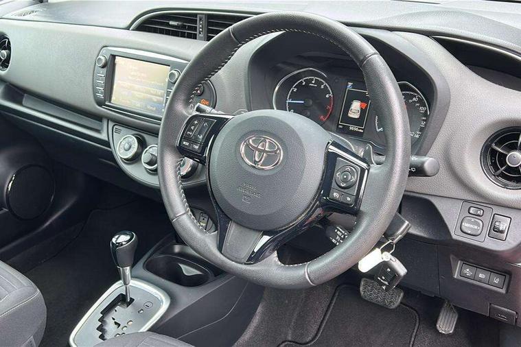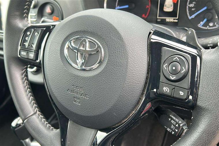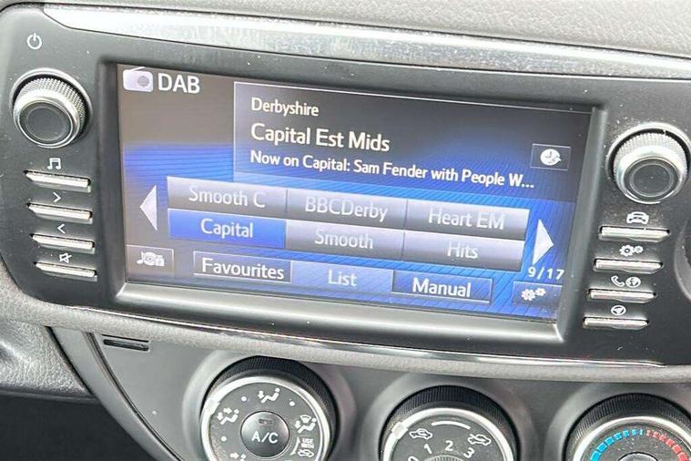 4.2" coloured LED TFT multi information display, Adjustable speed limiter with switch on steering wheel, Analogue speedometer, Analogue tachometer, Bluetooth connectivity, Cruise control with switch on steering wheel, Electric power steering, External temperature gauge, Fuel indicator with low level warning, Key reminder warning, Lights on warning, Multi information display switches on steering wheel, Rear parking sensor, Reversing camera, Road sign assist - RSA, Touch 2 Go navigation system, Touch 2 multimedia system with 7" display, Trip computer, 6 speakers, DAB Digital radio, Steering wheel mounted audio/telephone switches, USB connection, Auto up and down function on drivers window, Automatic wipers, Body colour bumpers, Body colour door handles, Body coloured door mirrors, Chrome fog light surround, Daytime running lights, Electric adjustable heated door mirrors, Electric front windows, Follow me home headlights, Front fog lights, Green tinted glass, Headlight cut-off reminder, LED High mounted stop lamp, Projector headlights, Rain sensitive windscreen wipers, Rear combination lights bulb type, Rear window defogger, Rear wiper, Turning signal integrated indicators in door mirrors, 12v power outlet - front, 3 adjustable rear headrests, 3 spoke leather steering wheel, 60/40 split folding rear seat, Active headrests, Boot light, Driver and front passenger personal light, Driver and front passenger Whiplash Injury Lessening seats, Driver/passenger vanity mirrors with covers, Front and rear cup holders, Front map reading lights, Front seats with lumbar support, Glovebox, Height adjustable driver's seat, Height adjustable front head restraints, Illuminated entry system, Isofix seat fixing, Leather gearshift, Manual air conditioning, Removable rear parcel shelf, Sliding front seats, Spirit fabric upholstery, Tilt/telescopic steering column, 3 point seatbelts on all rear seats, ABS+EBD+Brake assist, Collision mitigation braking system, Emergency brake light system (EBS), Front passenger airbag on/off switch, Front seatbelt reminder, Height adjustable front seatbelts with pre-tensioners and load limiters, Hill start assist control (HAC), Rear child proof door locks, Rear seat belt reminder, Road sign information display, Seatbelt warning lamp and buzzer, Supplemental restraint system (SRS) airbags - 7 airbags including driver, front passenger, curtain, side and knee airbags, Toyota safety sense including Road sign assist, Pre collision system, auto high beam and lane departure alert), Tyre pressure warning system, Vehicle stability control VSC + traction control, Engine immobiliser, Power and remote door locking, Instrument panel in grey, Space saver spare wheel,