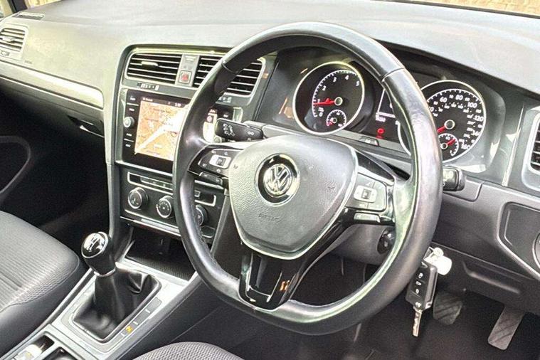 'Lights On' Reminder warning buzzer, ACC - Adaptive cruise control with front assist, forward collision warning, distance monitoring, city emergency brake and speed limiter, Bluetooth telephone and audio connection for compatible devices, Brake pad wear indicator warning light, Driver alert system, Driver profile selection, Driving Mode Selection with four preset modes - Eco, normal, sport or individual modes, Instrument cluster in white, Multifunction computer with visual gear change recommendation for fuel consumption, Power assisted speed sensitive electro-mechanical steering, Push tank flap, Speed limit display, Speedo, rev counter, electronic odometer, trip, service interval display, exterior temperature and fuel gauge, Stop/start system, Warning buzzer and light for front seatbelts unfastened, Battery regeneration during braking, XDS electronic differential lock, Composition media system, DAB Digital radio receiver, Driver Personalisation profile selection, MP3/WMA compatability, Multi device interface (MDI) with USB connection, Personalisation 1.1 profile for media, Premium USB cable in choice of either Apple or Android smartphone compatibility, SD card slot, SMS Functionality, USB and SD card connectivity, Black front air intake and radiator grille with chrome insert, Black rear diffuser, Body colour bumpers, Body colour door handles, Body colour door mirrors with integrated indicators, Dusk sensor + automatic driving lights, Electric front windows, Electric rear windows, Electrically adjustable and heated door mirrors, Fully galvanised body, Heated rear windscreen, Hidden exhaust pipe, High level 3rd brake light incorporating LED Technology, LED daytime running lights, LED front fog lights with static cornering light function, Rear fog lamp, Rear tinted glass 65% light absorbing from B pillar backwards, Rear window aerial, Rear window wash/wipe with intermittent wipe, Reflectors in all doors, Tailgate with integrated rear roof spoiler, Windscreen wipers/ intermittent wipe + 4 position delay, 12V socket in luggage compartment, 3 rear headrests, 4 load lashing points in luggage compartment, 60/40 split folding rear seat backrest, Auto fold down lever in rear seat backrest, Bag hook in luggage compartment x 2, Cooled glovebox, Cupholder cover, Dust/pollen filter, Front and rear reading lights incorporating LED technology, Front centre armrest with storage compartment and two rear air vents, Front seat back storage pockets, Grab handles front x 2, rear x 2 with integrated coat hooks, Height and reach adjustable steering wheel, Illuminated vanity mirrors, Instrument lighting white adjustable panel illumination, Interior light delay, Isofix preparation for 2 rear child seats, Load through provision with rear centre armrest and cupholders x2, Luggage compartment lighting, Overhead storage box, Passenger underseat drawer, Pearl grey headlining, Storage box in luggage compartment, Storage compartment in roof console with cover, Storage compartments in centre console, Storage compartments in front doors, Storage compartments in rear doors, Stowable luggage compartment cover, Sun visors, Variable boot floor, height adjustable and removable, Convenience Pack - Golf, Light and Sight pack - Golf, Mirror pack - Golf, 3 rear three point seatbelts, Airbags - Driver's and front passenger's, curtain airbag, Driver's knee, front side impact and passenger's airbag deactivation switch, Anti-lock Braking System (ABS) with Hydraulic Brake Assist (HBA), Automatic post collision braking system, Child locks on rear doors, Driver/Passenger optimised head restraints, Electronic parking brake with auto hold, Electronic stability control (ESC) including Electronic differential lock (EDL) and ASR (Traction control) with deactivation via infotainment system, Front ventilated disc brakes and rear disc brakes, Pre crash preventive occupant protection, Three point height adjustable front seatbelts with tensioners, Tyre pressure loss indicator, Alarm with interior protection and deactivation via infotainment system, Electronic engine immobiliser, Remote central locking with 2 remote folding keys, Brushed dark silver decorative inserts in dash and door panels, Chrome plated air vent surround, Chrome plated electric mirror adjustment light switch surround, Polar night black centre console, Steel space saver spare wheel,