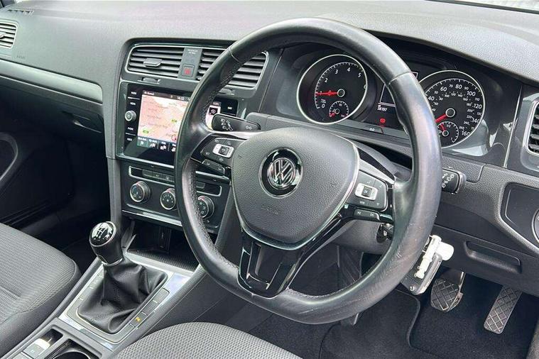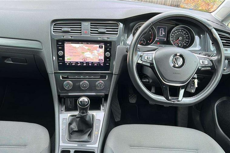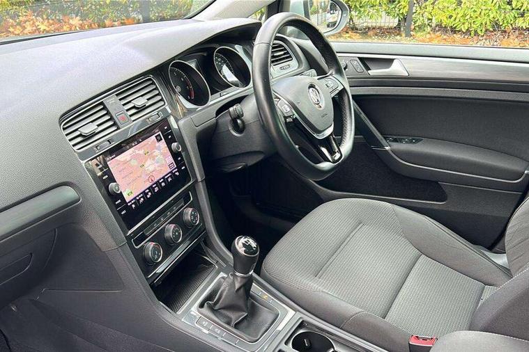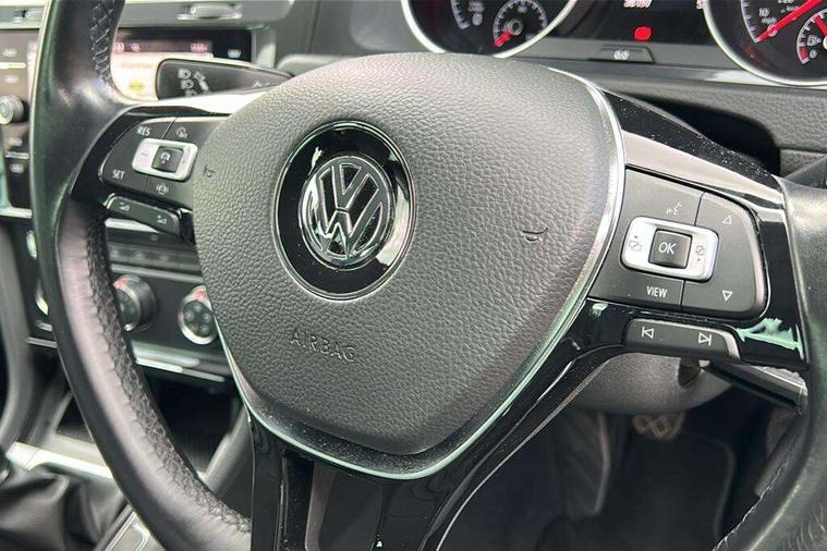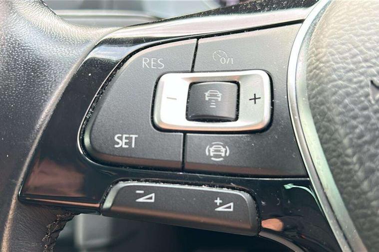 'Lights On' Reminder warning buzzer, ACC - Adaptive cruise control with front assist, forward collision warning, distance monitoring, city emergency brake and speed limiter, Bluetooth telephone and audio connection for compatible devices, Brake pad wear indicator warning light, Driver alert system, Driver profile selection, Driving Mode Selection with four preset modes - Eco, normal, sport or individual modes, Instrument cluster in white, Multifunction computer with visual gear change recommendation for fuel consumption, Power assisted speed sensitive electro-mechanical steering, Push tank flap, Speed limit display, Speedo, rev counter, electronic odometer, trip, service interval display, exterior temperature and fuel gauge, Stop/start system, Warning buzzer and light for front seatbelts unfastened, Battery regeneration during braking, XDS electronic differential lock, Composition media system, DAB Digital radio receiver, Driver Personalisation profile selection, MP3/WMA compatability, Multi device interface (MDI) with USB connection, Personalisation 1.1 profile for media, Premium USB cable in choice of either Apple or Android smartphone compatibility, SD card slot, SMS Functionality, USB and SD card connectivity, Black front air intake and radiator grille with chrome insert, Black rear diffuser, Body colour bumpers, Body colour door handles, Body colour door mirrors with integrated indicators, Dusk sensor + automatic driving lights, Electric front windows, Electric rear windows, Electrically adjustable and heated door mirrors, Fully galvanised body, Heated rear windscreen, Hidden exhaust pipe, High level 3rd brake light incorporating LED Technology, LED daytime running lights, LED front fog lights with static cornering light function, Rear fog lamp, Rear tinted glass 65% light absorbing from B pillar backwards, Rear window aerial, Rear window wash/wipe with intermittent wipe, Reflectors in all doors, Tailgate with integrated rear roof spoiler, Windscreen wipers/ intermittent wipe + 4 position delay, 12V socket in luggage compartment, 3 rear headrests, 4 load lashing points in luggage compartment, 60/40 split folding rear seat backrest, Auto fold down lever in rear seat backrest, Bag hook in luggage compartment x 2, Cooled glovebox, Cupholder cover, Dust/pollen filter, Front and rear reading lights incorporating LED technology, Front centre armrest with storage compartment and two rear air vents, Front seat back storage pockets, Grab handles front x 2, rear x 2 with integrated coat hooks, Height and reach adjustable steering wheel, Illuminated vanity mirrors, Instrument lighting white adjustable panel illumination, Interior light delay, Isofix preparation for 2 rear child seats, Load through provision with rear centre armrest and cupholders x2, Luggage compartment lighting, Overhead storage box, Passenger underseat drawer, Pearl grey headlining, Storage box in luggage compartment, Storage compartment in roof console with cover, Storage compartments in centre console, Storage compartments in front doors, Storage compartments in rear doors, Stowable luggage compartment cover, Sun visors, Variable boot floor, height adjustable and removable, Convenience Pack - Golf, Light and Sight pack - Golf, Mirror pack - Golf, 3 rear three point seatbelts, Airbags - Driver's and front passenger's, curtain airbag, Driver's knee, front side impact and passenger's airbag deactivation switch, Anti-lock Braking System (ABS) with Hydraulic Brake Assist (HBA), Automatic post collision braking system, Child locks on rear doors, Driver/Passenger optimised head restraints, Electronic parking brake with auto hold, Electronic stability control (ESC) including Electronic differential lock (EDL) and ASR (Traction control) with deactivation via infotainment system, Front ventilated disc brakes and rear disc brakes, Pre crash preventive occupant protection, Three point height adjustable front seatbelts with tensioners, Tyre pressure loss indicator, Alarm with interior protection and deactivation via infotainment system, Electronic engine immobiliser, Remote central locking with 2 remote folding keys, Brushed dark silver decorative inserts in dash and door panels, Chrome plated air vent surround, Chrome plated electric mirror adjustment light switch surround, Polar night black centre console, Steel space saver spare wheel,