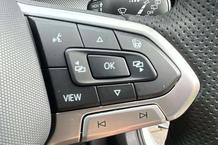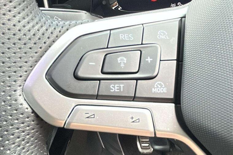 Activated carbon canister, Adaptive cruise control (ACC), Advanced driver attention and drowsiness monitor, Dynamic road sign display, Dynamic steering, E-Sim card for online connectivity, eCall emergency call system, Multi-color Digital cockpit pro, selection of different info profile possible, Multifunction front facing camera for distance control, Navigation system, Oncoming vehicle braking when turning including swerve support, Preparation for light assist system, Speed limiter, Speedo, rev counter, electronic odometer, trip, service interval display, exterior temperature and fuel gauge, Traffic jam assist, Voice enhancer and voice control, Warning signal and warning light for front and rear seatbelts not fastened, We connect plus preparation, We connect preparation, Wireless app connect, Petrol Particulate Filter, Start-stop system with battery regeneration (recuperation - energy recovery during braking), XDS electronic differential lock for improved traction and handling, 2 USB C ports in front, 2 USB charging sockets on the centre console in the rear charging capacity upto 45W, Comfort telephony + wireless charging, without wireless aerial connection, Digital radio reception (DAB), Diversity antenna for FM reception, Gaming platform via car app, Infotainment system with 12.9" display, Mobile phone interface with inductive charging feature, 3rd brake light, Auto headlights, Automatic headlamp activation with Coming home and Leaving home feature, Body colored bumpers in R-Line style, Body colour door handles, Exterior ambient lighting with illuminated door handles, Exterior mirrors convex on the left and aspherical on the right, Front and rear electric windows, Heat insulating windshield made of laminated glass, LED daytime running lights, Rear exhaust tailpipe, Rear fog light on one side and reversing lights on both sides, Rear side wing doors, Rear windscreen washer and wiper with interval delay, Remote electrically foldable door mirrors, puddle lights and reverse activated passenger's door mirror, Welcome light with surround lighting, 12V socket in front centre console, 12V socket in luggage compartment, 3 rear head restraints, 3 seat bench in 2nd row, Ambient lighting with 30 colour including LED light unit in front footwell with selectable light colour, Brushed stainless steel pedals, Carpet mats, front and rear, Chrome plated radiator grille inserts, air vent surrounds and light switch surrounds, Front centre armrest, Integrated front head restraints, ISOFIX anchors for child seats on outer rear bench seats and on front passanger seat compatible for i-Size, Leather gearshift handle, Luggage compartment lighting, Premium sports seats in front, Rear cupholder and loadthough, Single front passenger seat, Soul black instrument panel, Split folding backrest with centre armrest and unsplit rear seat bench, Storm grey roof lining, Sun visors with illuminated vanity mirrors, 3 point height adj front seatbelts + pretensioners, 3 rear three point seatbelts, ABS, Autonomous emergency braking front assist with pedestrian and cyclist monitoring, Child locks on rear doors, Driver and front passenger airbag with front passenger airbag deactivation, Electronic parking brake with auto hold, ESC (Electronic Stability Control), Extended pedestrian protection measures, Rear disc brakes, Two tone horn, Tyre pressure loss indicator, Volkswagen roadside assistance, Anti theft wheel bolts, Preparation for alcohol interlock, Decorative inserts carbon grey for dashboard and front door trim panels,