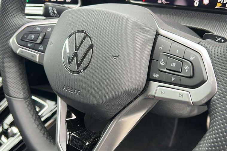 Activated carbon canister, Adaptive cruise control (ACC), Advanced driver attention and drowsiness monitor, Dynamic road sign display, Dynamic steering, E-Sim card for online connectivity, eCall emergency call system, Multi-color Digital cockpit pro, selection of different info profile possible, Multifunction front facing camera for distance control, Navigation system, Oncoming vehicle braking when turning including swerve support, Preparation for light assist system, Speed limiter, Speedo, rev counter, electronic odometer, trip, service interval display, exterior temperature and fuel gauge, Traffic jam assist, Voice enhancer and voice control, Warning signal and warning light for front and rear seatbelts not fastened, We connect plus preparation, We connect preparation, Wireless app connect, Diesel particulate filter, Hybrid propulsion system, Start-stop system with battery regeneration (recuperation - energy recovery during braking), XDS electronic differential lock for improved traction and handling, 2 USB C ports in front, 2 USB charging sockets on the centre console in the rear charging capacity upto 45W, Comfort telephony + wireless charging, without wireless aerial connection, Digital radio reception (DAB), Diversity antenna for FM reception, Gaming platform via car app, Infotainment system with 12.9" display, Mobile phone interface with inductive charging feature, 3rd brake light, Auto headlights, Automatic headlamp activation with Coming home and Leaving home feature, Body colored bumpers in R-Line style, Body colour door handles, Exterior ambient lighting with illuminated door handles, Exterior mirrors convex on the left and aspherical on the right, Front and rear electric windows, Heat insulating windshield made of laminated glass, LED daytime running lights, Rear exhaust tailpipe, Rear fog light on one side and reversing lights on both sides, Rear side wing doors, Rear windscreen washer and wiper with interval delay, Remote electrically foldable door mirrors, puddle lights and reverse activated passenger's door mirror, Welcome light with surround lighting, 12V socket in front centre console, 12V socket in luggage compartment, 3 rear head restraints, 3 seat bench in 2nd row, Ambient lighting with 30 colour including LED light unit in front footwell with selectable light colour, Brushed stainless steel pedals, Carpet mats, front and rear, Chrome plated radiator grille inserts, air vent surrounds and light switch surrounds, Front centre armrest, Integrated front head restraints, ISOFIX anchors for child seats on outer rear bench seats and on front passanger seat compatible for i-Size, Luggage compartment lighting, Plastic gear knob, Premium sports seats in front, Rear cupholder and loadthough, Single front passenger seat, Soul black instrument panel, Split folding backrest with centre armrest and unsplit rear seat bench, Storm grey roof lining, Sun visors with illuminated vanity mirrors, 3 point height adj front seatbelts + pretensioners, 3 rear three point seatbelts, ABS, Autonomous emergency braking front assist with pedestrian and cyclist monitoring, Child locks on rear doors, Driver and front passenger airbag with front passenger airbag deactivation, Electronic parking brake with auto hold, ESC (Electronic Stability Control), Extended pedestrian protection measures, Hill start assist, Rear disc brakes, Two tone horn, Tyre pressure loss indicator, Volkswagen roadside assistance, Anti theft wheel bolts, Preparation for alcohol interlock, Decorative inserts carbon grey for dashboard and front door trim panels,