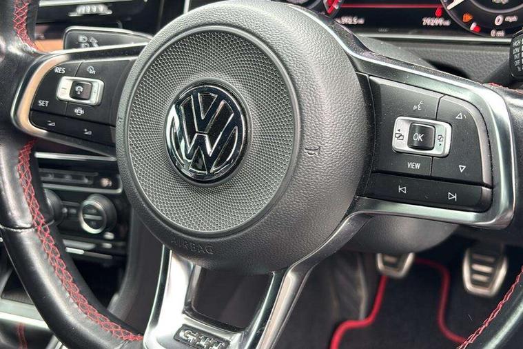 'Lights On' Reminder warning buzzer, ACC - Adaptive cruise control with front assist, forward collision warning, distance monitoring, city emergency brake and speed limiter, Active information display - 12.3" high resolution TFT display, Bluetooth telephone and audio connection for compatible devices, Brake pad wear indicator warning light, Car information display, Driver alert system, Driver profile selection, Driving Mode Selection with four preset modes - Eco, normal, sport or individual modes, Front assist, radar sensor controlled distance monitor, city emergency braking + predictive pedestrian protection, Front assistant collision mitigation, Instrument cluster in white, Multifunction computer with visual gear change recommendation for fuel consumption, Power assisted speed sensitive electro-mechanical steering, Rear view camera, Speedo, rev counter, electronic odometer, trip, service interval display, exterior temperature and fuel gauge, Stop/start system, Ultrasonic front and rear optical and audible parking sensors, Warning buzzer and light for front seatbelts unfastened, Battery regeneration during braking, Limited slip differential, Lowered sports suspension, Composition media system, DAB Digital radio receiver, MDI multi device interface, MP3/WMA compatability, Multi device interface (MDI) with USB connection, Premium USB cable in choice of either Apple or Android smartphone compatibility, SD card slot, SMS Functionality, Title and cover art display, 4 X 20W output, USB connection and socket, USB and SD card connectivity, Volkswagen media control, 3D-LED tinted rear light clusters with indicator sweep function, Automatic dimming rear view mirror/rain sensor, Black rear diffuser, Body colour door handles, Body colour door mirrors with integrated indicators, Body colour rear roof spoiler, Body colour sports bumpers, Chrome trimmed front air intake surrounds, Darkened rear light clusters, Electric front windows, Electric rear windows, Electrically adjustable and heated door mirrors, Extended sill strips flared, Glavanised body, Heated rear windscreen, High level 3rd brake light incorporating LED Technology, Honeycomb radiator grille - black, LED front fog lights, Range adjustable headlights via infotainment system with LED daytime running lights, Rear fog lamp, Rear number plate lights incorporating LED technology, Rear window aerial, Rear window wash/wipe with intermittent wipe, Reflectors in all doors, Remote electrically foldable door mirrors, door mirror puddle lights and reverse activated kerb-view adjustment on passengers door mirror, Twin exhaust tailpipe, Windscreen wipers/ intermittent wipe + 4 position delay, 12V socket in luggage compartment, 3 rear headrests, 4 load lashing points in luggage compartment, 60/40 split folding rear seat backrest, Bag hook in luggage compartment x 2, Black roof lining, Climate control - 2 zone electronic air conditioning with automatic air recirculation and allergy filter, Cooled glovebox, Dust/pollen filter, Front + rear carpet mats, Front centre armrest with storage compartment and two rear air vents, Front footwell lights, Front reading lights, Front seat back storage pockets, Grab handles front x 2, rear x 2 with integrated coat hooks, Height and reach adjustable steering wheel, Illuminated door sills, Illuminated vanity mirrors, Instrument lighting white adjustable panel illumination, Interior light delay, Isofix preparation for 2 rear child seats, Leather gear knob and handbrake grip, LED front and rear reading lights, Load through provision with rear centre armrest and cupholders x2, Luggage compartment light, Multi-function leather steering wheel with red stitching, Multifunction leather steering wheel with leather trimmed gear knob, Overhead storage box, Stainless steel pedals, Storage box in luggage compartment, Storage compartment in roof console with cover, Storage compartments in front doors, Storage compartments in rear doors, Stowable luggage compartment cover, Sun visors, Three spoke multi-function leather trimmed steering wheel and gearknob, Variable boot floor, height adjustable and removable, Ambient lighting pack - Golf, Convenience Pack - Golf, Light and Sight pack - Golf, Mirror pack - Golf, 3 rear three point seatbelts, Airbags - Driver's and front passenger's, curtain airbag, Driver's knee, front side impact and passenger's airbag deactivation switch, Anti-lock Braking System (ABS) with Hydraulic Brake Assist (HBA), Automatic post collision braking system, Child locks on rear doors, Driver/Passenger optimised head restraints, Electronic parking brake with auto hold, Electronic stability control (ESC) including Electronic differential lock (EDL) and ASR (Traction control) with deactivation via infotainment system, Pre crash preventive occupant protection, Red brake calipers, Three point height adjustable front seatbelts with tensioners, Tyre pressure loss indicator, Uprated front disc brakes + calipers, Alarm with interior protection and deactivation via infotainment system, Electronic engine immobiliser, Keyless entry, Remote central locking with 2 remote folding keys, Chrome plated air vent surround, Chrome plated electric mirror adjustment light switch surround, Honeycomb black decorative inserts, Piano black centre console, Space saver spare wheel,