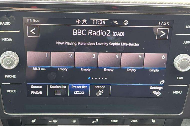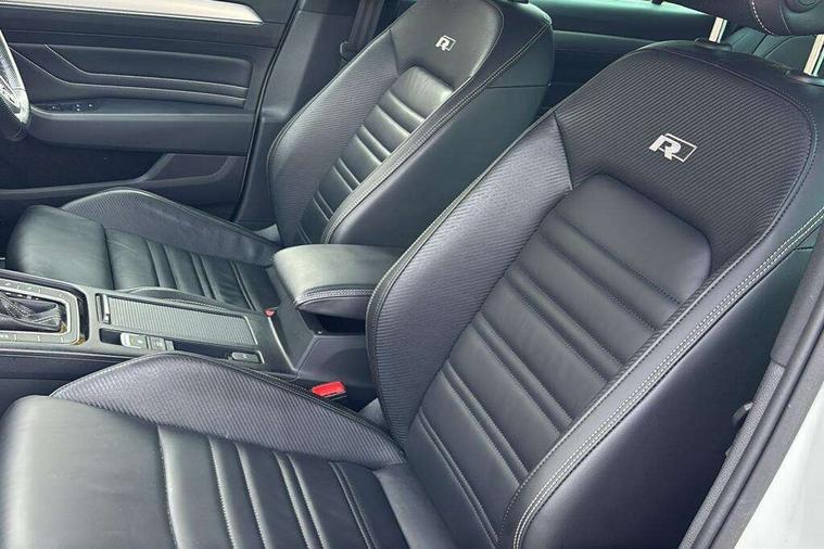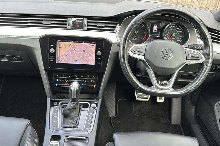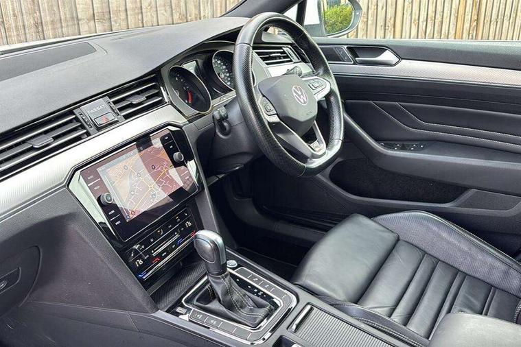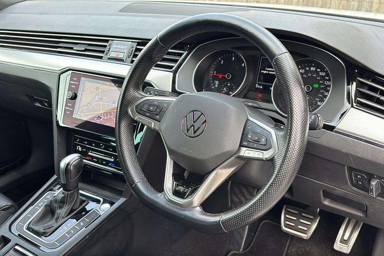 Adaptive cruise control including Front Assist, radar sensor controlled distance monitoring system, City emergency braking system, Driver alert system, Driver profile selection, Exterior temperature gauge with frost alarm, Lane assist, Low washer fluid warning light, Multifunction computer includes visual gear, One touch indicator turn signal, Proactive occupant protection, Security and service including e-call, Speed sensitive power steering, Speedo and rev counter, electronic odometer, trip, service interval display and fuel gauge, Start/Stop function, Traffic jam assist, Voice activation, Warning buzzer and light for front seatbelts unfastened, Battery regeneration during braking, Diesel particulate filter, Misfuel prevention device, Aerial for radio integrated into rear windscreen, DAB Digital radio receiver, Auto dimming interior rear view mirror, Automatic headlights with dusk sensor, Automatic leaving home and manual coming home lighting functions, Black radiator grille with chrome louvres, Body colour bumpers, Body colour door handles, Body coloured door mirrors with intergrated indicators, Chrome side window surrounds, Electric heated windscreen washer jets, Front and rear electric windows, Fully galvanised body, Gloss black finish on B pillar, Heated rear window, High level 3rd brake light, LED rear lights, LED rear number plate lights, Plastic load sill protection, Rain sensor, Rear tinted glass from B pillar backwards, approx 65% tinted, Rear window wash/wipe, Remote electrically adjustable and foldable heated door mirrors including automatic dimming function on drivers side door mirror puddle lights, Silver anodised roof rails, Warning lights for open tailgate and doors, White instrument lighting, Windscreen wipers/ intermittent wipe + 4 position delay, 12V socket in front centre console, 12V socket in luggage compartment, 40:20:40 split folding rear seats with backrest, Carbon optic side bolsters, Climate control - 3 Zone electronic air conditioning with automatic air recirculation, Driver's door storage compartment for 1.0 litre bottle, Extending luggage compartment cover with convenience opening, stowable, Front and rear interior lighting with delay and dimming function, Front centre armrest with storage compartment and two rear air vents, Front cupholders x2 with covers, Front passenger storage compartment for 1.5 litre bottle, Front seats with embroidered R Line logo on backrest, Height adjustable and removable variable boot floor, Height adjustable rear seat head restraints (x3), Height/reach adjust steering wheel, Illuminated vanity mirrors, Isofix child seat preparation, outer rear seats, Load lashing points x 4 in luggage compartment, Load through provision, Lockable, illuminated, cooled glovebox, Luggage compartment lighting, Nappa leather upholstery, Rear seat centre armrest with storage compartment, Stainless steel pedals, Storage compartment in rear doors, Storage compartment in roof console with cover, Unique R Line door sill protectors, Unique R Line front and rear carpet mats, Easy open package with full electric tailgate/ boot - Passat (Estate), R line styling pack - Passat (Estate), 3x3 point rear seatbelts, ABS (Anti locking brake system) includes BAS (Brake assist) and EBD (Electronic brake pressure distribution), Automatic post collision braking, Disc brakes front and rear, Door open warning reflectors, Driver/Front Passenger airbags, Drivers and front passengers safety optimised head restraints, longitudinal and height adjustable, Drivers knee airbag, Electronic parking brake with auto hold, First aid kit, Front and rear passenger curtain airbags, Front passenger airbag deactivation switch, Front side impact airbag, Height adjustable front 3 point seatbelts + pretensioners, Hill hold function, Pre crash preventive occupant protection, Rear seat side impact airbags, Rigid safety cell with front and rear crumple zones, Volkswagen roadside assistance, Warning light for rear seat belts if unfastened, Alarm with interior protection and deactivation via infotainment system, Electronic engine immobiliser, Chrome air vent and instrument surround, Unique R Line dark diamond flag decorative inserts in dash and door panels, Tyre mobility kit,