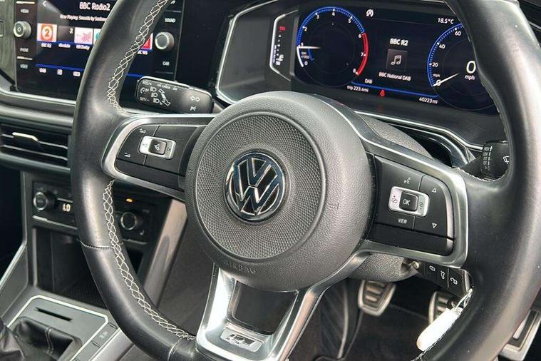 App-Connect, Bluetooth Telephone preparation, Driver alert system, Multifunction colour display, PAS - speed related, Service interval indicator, Trip computer, Warning buzzer and light for front seatbelts unfastened, 6 speakers, Composition media system with radio, glovebox mounted CD, colour touch screen, SD card, aux-in, USB, multimedia interface, DAB Digital radio, Auto dimming rear view mirror with light/rain sensors and coming home function, Automatic headlamp activation, Black grille with chrome surround, Body colour bumpers, Body colour door handles, Body colour rear spoiler, Body coloured side sills, Chrome trimmed front air intake surrounds, Electric folding door mirrors, Electric front windows, Electric operated/heated door mirrors, Front wash/wipe with interval delay, Heat insulated tinted glass 65% light absorbing from B pillar back, Heated rear window with auto timer, LED daytime running lights, LED rear number plate lights, LED tail lights, R Line body kit, Rear diffuser, Rear electric windows, Rear windscreen washer and wiper with interval delay, Stainless steel door sill protection, 12V power socket in centre console, 2 bag hooks in luggage compartment, 2 cupholders, 3 rear head restraints, 3 spoke steering wheel, 60/40 split folding rear seat, Ambient lighting, Carbon flag cloth upholstery, Carpet mats, Chrome plated light switch, Driver/front passenger seat height adjustment + underseat drawers, Driver/passenger sunvisors with illuminated vanity mirrors, Dust/pollen filter, Front centre armrest with storage compartment, Front seat backrest storage nets, Front sport seats, Front/rear reading lights, Glovebox, Height/reach adjustable steering column, Interior light with delay, Isofix Preparation 2 Rear child seats, Jack and tool kit, Leather multifunction steering wheel, LED footwell lights, Luggage compartment cover, removable, Luggage compartment lighting, Matt chrome gear lever gaiter surround, Stainless steel pedals, Storage compartment in front doors, Storage compartment in rear doors, Storage compartment under front seats, Titanium black headlining, Variable boot floor, 3 point height adj front seatbelts + pretensioners, 3x3 point rear seatbelts, ABS, Automatic post collision braking, Driver/front passenger airbag, Driver/Passenger whiplash optimised head restraints, ESP with EDL + ASR, Front and rear passengers curtain airbag system including front side airbags, Front passenger airbag deactivation, Hill hold control, Hydraulic Brake Assist (HBA), Two tone horn, Tyre pressure monitoring system, Alarm with remote central locking and interior protection, Anti-theft wheel bolts, Electronic engine immobiliser, Cortina silver air vent surround, Matt chrome interior trim, Snow shadow steel dashboard pads, Steering wheel aluminium inserts, Space saver spare wheel,