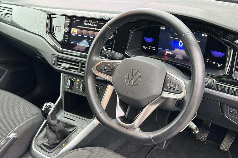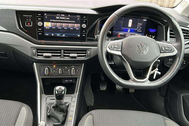 Adaptive cruise control without follow-to-stop and speed limiter, Bluetooth mobile phone interface, Driver alert system, Emergency call service, Front assist system, Power assisted speed sensitive steering, Preparation for We connect and We connect plus, Speedo and rev counter, electronic odometer, trip, service interval display and fuel gauge, Standard rear axle, Travel Assist - Lane keeping system and traffic jam assist, Travel assist including emergency assist, Trip computer, Warning signal and warning light for front and rear seatbelts not fastened, Washer fluid level indicator, Wireless app connect, Front wheel drive, Rear shock absorpion, Start-stop system with battery regeneration (recuperation - energy recovery during braking), DAB Digital radio, Diversity antenna for FM reception, Front and rear 6 speakers, Automatic dimming interior rear view mirror, Body colour bumpers, Body colour door handles, Body colour door mirrors, Electric front windows, Heat insulating darkened glass in side and rear windows, Heat insulating glass windscreen, Power folding adjustable/heated exterior mirrors and front passenger exterior mirror lowering function, Rain sensor, Rear electric windows, Rear fog light, Rear side wing doors, Rear windscreen washer and wiper with interval delay, Third brake light, 12V power socket in centre console, 2 front and 2 rear reading lights, 2 USB-C ports in the front, 2 USB-C charging sockets on the center console in the rear, 3 rear head restraints, 60/40 split folding rear seat and rear seat bench not split, Ceramique headliner, Chrome plated radiator grille inserts, air vent surrounds and light switch surrounds, Door and side trim panel, Driver and front passenger seat height adjustment, Driver/passenger sunvisors with illuminated vanity mirrors, Front centre armrest, Front seat backrest storage pockets, Front standard seats, Handbrake lever handle in leather, Hartley/Thomas cloth upholstery, Isofix child seat preparation easy-fit (for two outer rear seats, and front passenger seat) compatible with I-size, Leather trimmed gear knob, Luggage compartment cover, Luggage compartment floor, Luggage compartment lighting, Multifunction steering wheel, Single front passenger seat, Standard pedal cluster, Light and vision pack - Polo, 3 point height adj front seatbelts + pretensioners, 3x3 point rear seatbelts, ABS, Driver and front passenger airbag with front passenger airbag deactivation, Drivers and front passengers safety optimised head restraints, ESC (Electronic stability control) + EDL (Electronic Differntial lock) and ASR (Traction control), Extended and predictive pedestrian/ cyclist protection, Front curtain and side airbags with center airbag, Front disc brakes, Hill hold control, Manual child lock in rear doors, Rear drum brakes, Single tone horn, Tyre pressure loss indicator, Alarm with interior protection, Anti-theft alarm system with interior monitoring, backup horn, and towing protection, Anti-theft wheel bolts, Electronic engine immobiliser, Lava stone black gloss/matt decorative inserts in dash and front door panels, Low rolling resistance tyres,