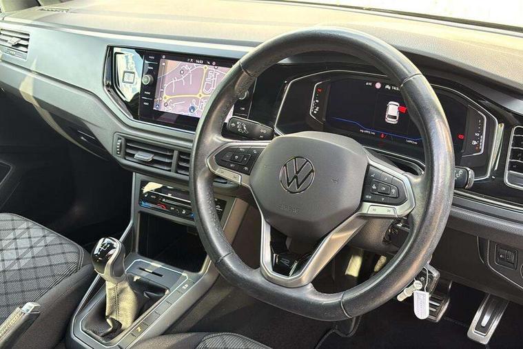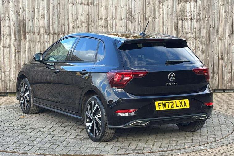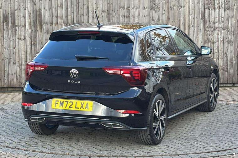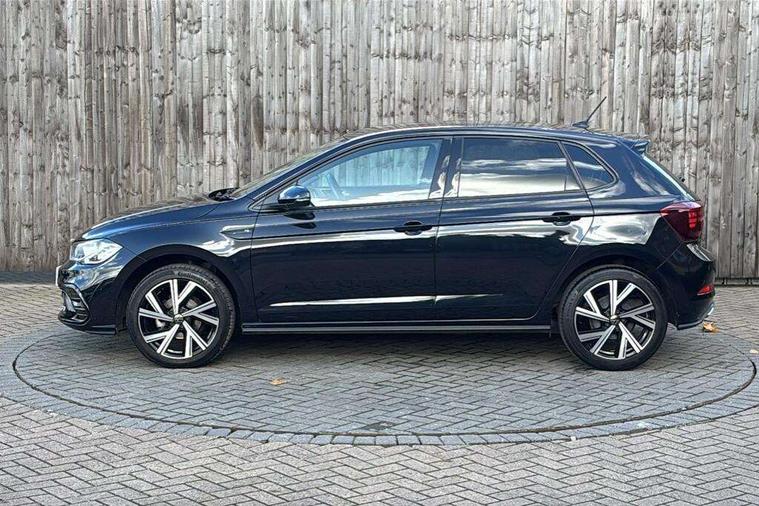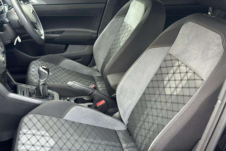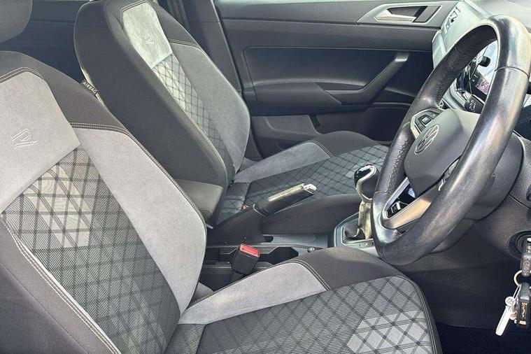 Adaptive cruise control without follow-to-stop and speed limiter, Bluetooth mobile phone interface, Digital Cockpit Pro with 10.25" Display, Driver alert system, Dynamic road sign display, Emergency call service, Power assisted speed sensitive steering, Preparation for We connect and We connect plus, Speedo and rev counter, electronic odometer, trip, service interval display and fuel gauge, Standard rear axle, Travel Assist - Lane keeping system and traffic jam assist, Travel assist including emergency assist, Trip computer, Warning signal and warning light for front and rear seatbelts not fastened, Washer fluid level indicator, Wireless app connect, Front wheel drive, Rear shock absorpion, Start-stop system with battery regeneration (recuperation - energy recovery during braking), DAB Digital radio, Diversity antenna for FM reception, Front and rear 6 speakers, Body colour bumpers, Body colour door handles, Body colour door mirrors, Electric front windows, Front scuff plates with R-Line logo, Heat insulating darkened glass in side and rear windows, Heat insulating glass windscreen, Power folding adjustable/heated exterior mirrors and front passenger exterior mirror lowering function, Rear electric windows, Rear fog light, Rear side wing doors, Rear tinted glass from B-pillar backwards approx 65% tinted, Rear windscreen washer and wiper with interval delay, Third brake light, 12V power socket in centre console, 2 USB-C ports in the front, 2 USB-C charging sockets on the center console in the rear, 3 rear head restraints, 60/40 split folding rear seat and rear seat bench not split, Air care climatronic air conditoning system with active combination filter and 2-zone temperature control, Black roof lining, Ceramique headliner, Chrome plated radiator grille inserts, air vent surrounds and light switch surrounds, Door and side trim panel, Driver and front passenger seat height adjustment, Driver/passenger sunvisors with illuminated vanity mirrors, Front + rear carpet mats, Front centre armrest, Front footwell illumination, Front seat backrest storage pockets, Front sports comfort seats, Handbrake lever handle in leather, Isofix child seat preparation easy-fit (for two outer rear seats, and front passenger seat) compatible with I-size, Karoso artvelours cloth upholstery, Leather trimmed gear knob, LED interior light with switch off delay and dimmer, 2 reading lights front and rear, Luggage compartment cover, Luggage compartment floor, Luggage compartment lighting, Lumbar adjustment for front seats, Multifunction steering wheel, Single front passenger seat, Stainless steel pedals, Standard pedal cluster, Light and sight pack - Polo R-Line/Black Edition, 3 point height adj front seatbelts + pretensioners, 3x3 point rear seatbelts, ABS, Driver and front passenger airbag with front passenger airbag deactivation, Drivers and front passengers safety optimised head restraints, ESC (Electronic stability control) + EDL (Electronic Differntial lock) and ASR (Traction control), Extended and predictive pedestrian/ cyclist protection, Front curtain and side airbags with center airbag, Hill hold control, Manual child lock in rear doors, Single tone horn, Tyre pressure loss indicator, Alarm with interior protection, Anti-theft alarm system with interior monitoring, backup horn, and towing protection, Anti-theft wheel bolts, Electronic engine immobiliser, Chrome applications on rotary light, mirror adjustment, window regulator switches, outlet with frame in black, Dark grey anodised matt decorative inserts in dash and front door panels, Low rolling resistance tyres,