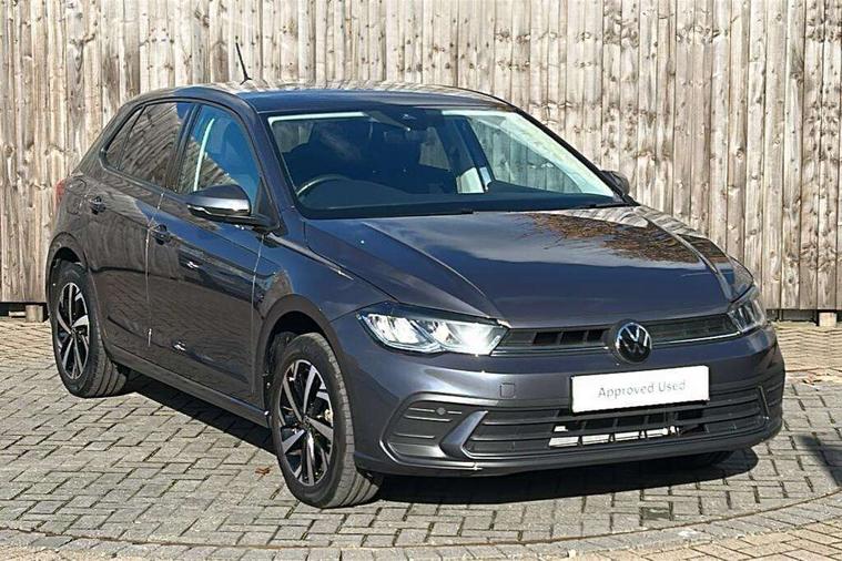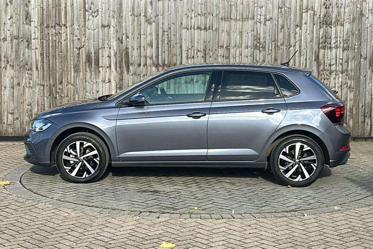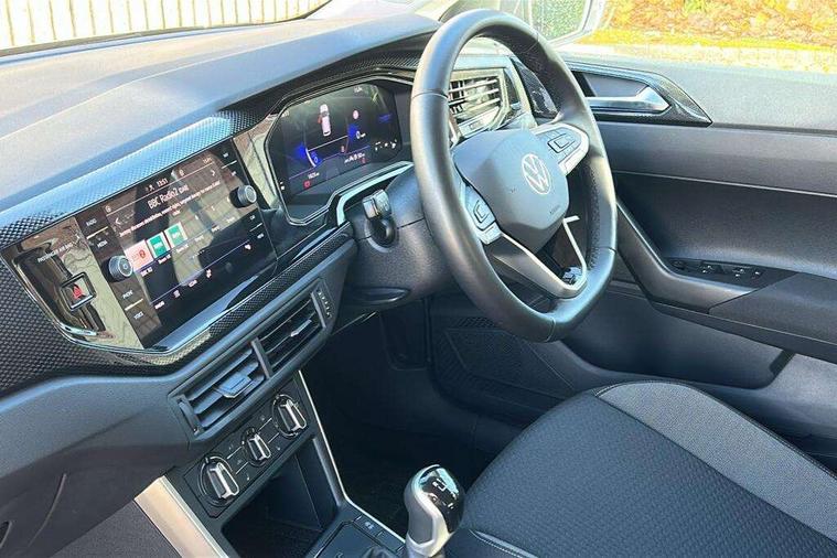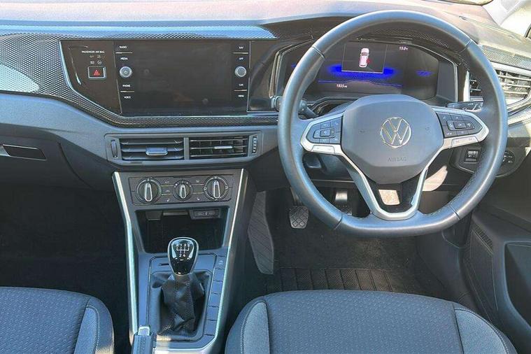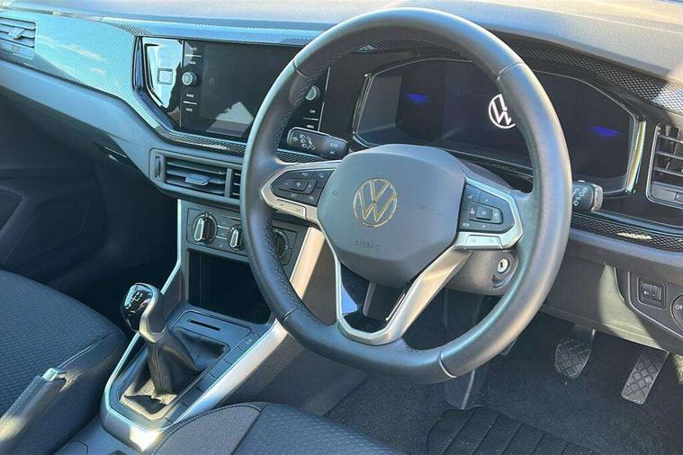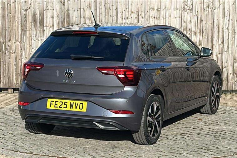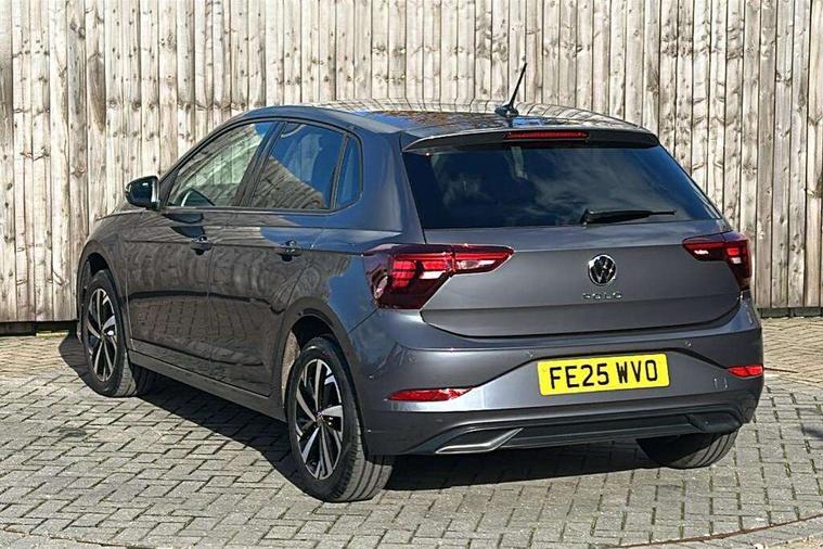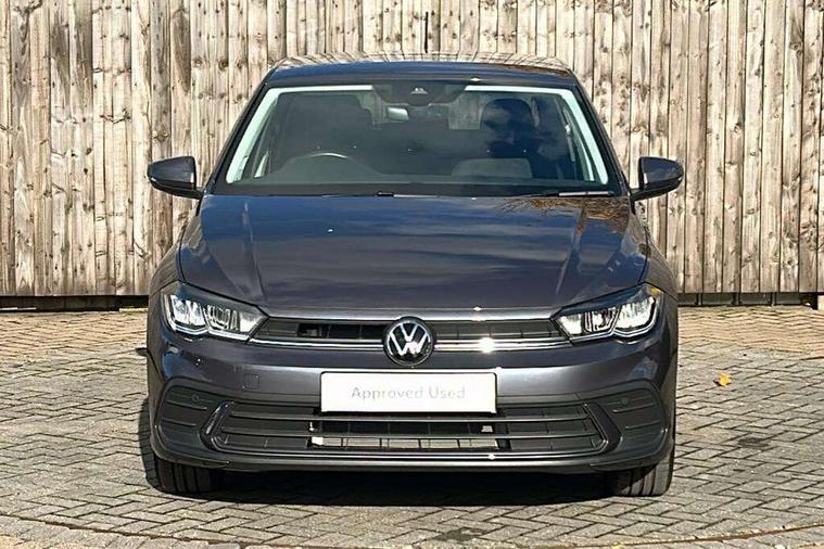 Adaptive cruise control without follow-to-stop and speed limiter, Advanced driver attention and drowsiness monitor, Bluetooth mobile phone interface, Dynamic road sign display, Emergency call service, Multifunction front facing camera for distance control, Park distance control, Power assisted speed sensitive steering, Preparation for navigation system with media and internet package, Preparation for We connect and We connect plus, Rear view camera, Speedo and rev counter, electronic odometer, trip, service interval display and exterior temperature gauge, Standard rear axle, Travel Assist - Lane keeping system and traffic jam assist, Travel assist including emergency assist, Trip computer, Warning signal and warning light for front and rear seatbelts not fastened, Washer fluid level indicator, Wireless app connect, Front wheel drive, Rear shock absorpion, Start-stop system with battery regeneration (recuperation - energy recovery during braking), DAB Digital radio, Diversity antenna for FM reception, Front and rear 6 speakers, Automatic dimming interior rear view mirror, Automatic headlight control with LED separate daytime running lights with coming/leaving home function, Body colour bumpers with chrome inserts, Body colour door handles, Body colour door mirrors, Electric front windows, Engine badge deletion, Headlight range adjustment, Heat insulating and laminated safety glass windshield, LED Headlights, LED rear combination lamps, Power folding adjustable/heated exterior mirrors and front passenger exterior mirror lowering function, Rain sensor, Rear electric windows, Rear fog light, Rear side wing doors, Rear tinted glass from B-pillar backwards approx 65% tinted, Rear windscreen washer and wiper with interval delay, Third brake light, 12V power socket in centre console, 2 front and 2 rear reading lights with switch off delay and dimmer, 2 USB-C ports in the front, 2 USB-C charging sockets on the center console in the rear, 3 rear head restraints, 60/40 split folding rear seat and rear seat bench not split, Ceramique roof lining, Chrome plated radiator grille inserts, air vent surrounds and light switch surrounds, Door and side trim panel, Driver and front passenger seat height adjustment, Driver/passenger sunvisors with illuminated vanity mirrors, Front centre armrest, Front seat backrest storage pockets, Front standard seats, Handbrake lever handle in leather, Hartley/Thomas cloth upholstery, Headliner in recycled material, Isofix child seat preparation easy-fit (for two outer rear seats, and front passenger seat) compatible with I-size, Leather trimmed gear knob, Luggage compartment cover, Luggage compartment lighting, Removable luggage compartment floor, Single front passenger seat, Standard climatic zones, Standard pedal cluster, Three spoke leather wrapped multifunction steering wheel, Light and vision pack - Polo, 3 point height adj front seatbelts + pretensioners, 3 point seat belt for centre rear seat, 3 point seatbelts, outer rear with ECE lable, ABS, Driver and front passenger airbag with front passenger airbag deactivation, Drivers and front passengers safety optimised head restraints, ESC (Electronic stability control) + EDL (Electronic Differntial lock) and ASR (Traction control), Extended and predictive pedestrian/ cyclist protection, Front assist with autonomous emergency braking (for Adaptive Cruise Control ACC up to 130 mph), Front curtain and side airbags with center airbag, Front disc brakes, Hill hold control, Manual child lock in rear doors, Rear drum brakes, Single tone horn, Tyre pressure loss indicator, Alarm with interior protection, Anti-theft alarm system with interior monitoring, backup horn, and towing protection, Anti-theft wheel bolts, Electronic engine immobiliser, Lava stone black gloss/matt decorative inserts in dash and front door panels, 16" Torsby alloy wheels, Low rolling resistance tyres,