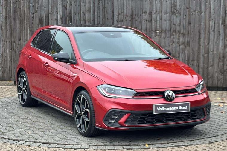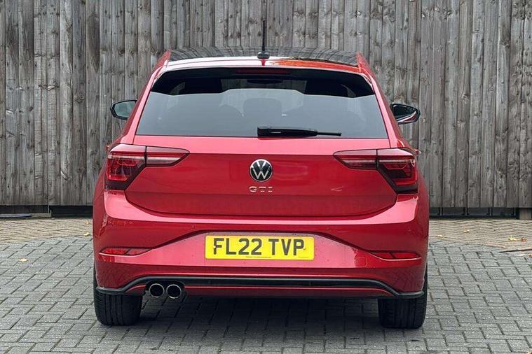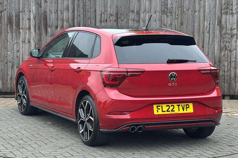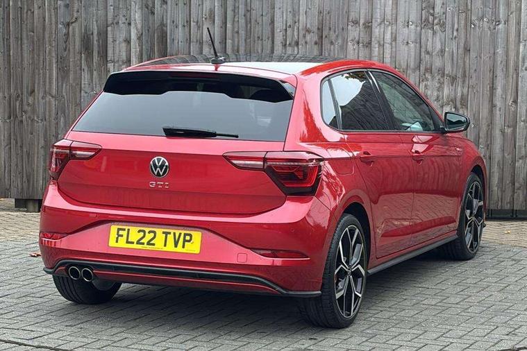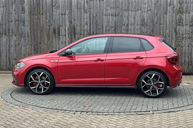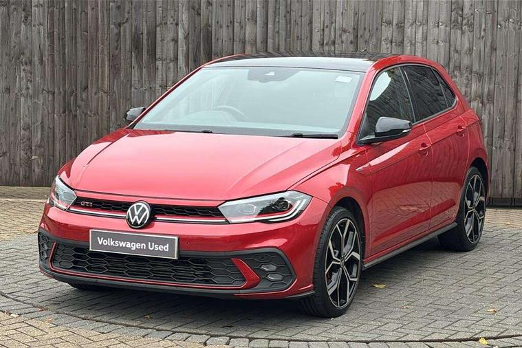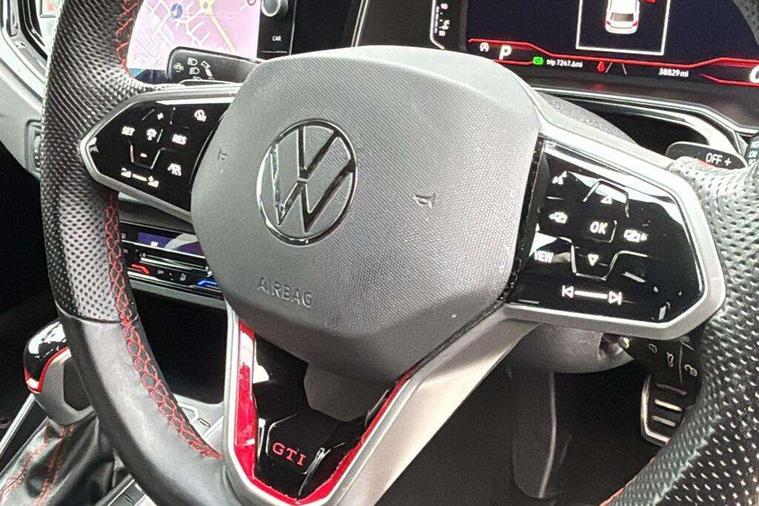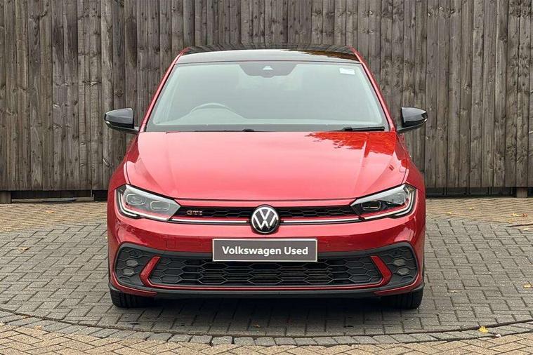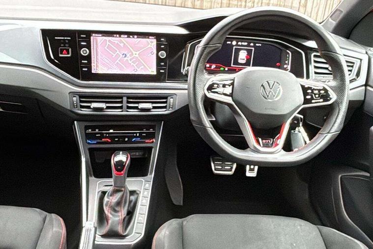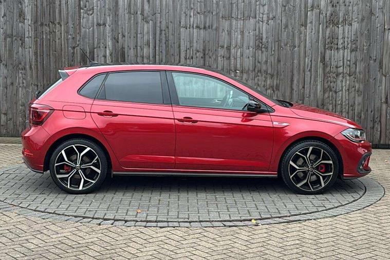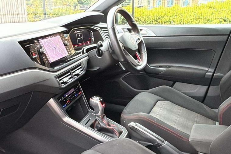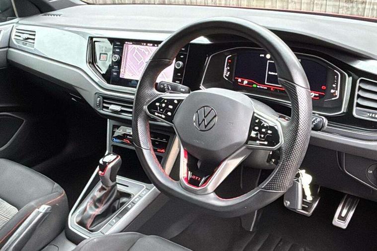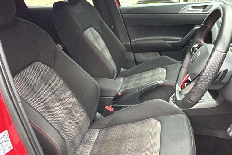 Adaptive cruise control with follow-to-stop and speed limiter, Bluetooth mobile phone interface, Digital Cockpit Pro with 10.25" Display, Driver alert system, Dynamic road sign display, Eco mode, Emergency call service, Power assisted speed sensitive steering, Preparation for We connect and We connect plus, Speedo and rev counter, electronic odometer, trip, service interval display and fuel gauge, Travel Assist - Lane keeping system and traffic jam assist, Travel assist including emergency assist, Trip computer, Warning signal and warning light for front and rear seatbelts not fastened, Washer fluid level indicator, Wireless app connect, Adaptive chassis control including driving profile selection, Front wheel drive, Heavy duty rear axle, Rear shock absorpion sports version, Sports select suspension lowered by 15mm, Start-stop system with battery regeneration (recuperation - energy recovery during braking), XDS electronic differential lock for improved traction and handling, DAB Digital radio, Diversity antenna for FM reception, Front and rear 6 speakers, Body colour bumpers, Body colour door handles, Electric front windows, Front scuff plates in aluminium with GTI logo, Heat insulating darkened glass in side and rear windows, Heat insulating glass windscreen, Power folding adjustable/heated exterior mirrors and front passenger exterior mirror lowering function, Rear electric windows, Rear fog light, Rear side wing doors, Rear windscreen washer and wiper with interval delay, Sport bumpers with air intakes with honeycomb structure, Third brake light, Twin chrome exhaust tailpipes, 12V power socket in centre console, 2 USB-C ports in the front, 2 USB-C charging sockets on the center console in the rear, 3 rear head restraints, 60/40 split folding rear seat and rear seat bench not split, Air care climatronic air conditoning system with active combination filter and 2-zone temperature control, Black roof lining, Ceramique headliner, Chrome plated radiator grille inserts, air vent surrounds and light switch surrounds, Door and side trim panel, Driver and front passenger seat height adjustment, Driver/passenger sunvisors with illuminated vanity mirrors, Front + rear carpet mats, Front centre armrest, Front footwell illumination, Front seat backrest storage pockets, GTI sports gearshift knob in aluminium leather, Handbrake lever handle in leather, Isofix child seat preparation easy-fit (for two outer rear seats, and front passenger seat) compatible with I-size, LED interior light with switch off delay and dimmer, 2 reading lights front and rear, Luggage compartment cover, Luggage compartment floor, Luggage compartment lighting, Single front passenger seat, Stainless steel pedals, Standard pedal cluster, Three spoke leather wrapped multifunction sports steering wheel with shifting paddles, IQ LED matrix headlights pack - Polo, Light and sight pack - Polo GTI, Sports suspension pack - Polo, 3 point height adj front seatbelts + pretensioners, 3x3 point rear seatbelts, ABS, Driver and front passenger airbag with front passenger airbag deactivation, Drivers and front passengers safety optimised head restraints, ESC (Electronic stability control) + EDL (Electronic Differntial lock) and ASR (Traction control), Extended and predictive pedestrian/ cyclist protection, Front and rear disc brakes with red brake calipers, Front curtain and side airbags with center airbag, Hill hold control, Manual child lock in rear doors, Two tone horn, Tyre pressure loss indicator, Alarm with interior protection, Anti-theft alarm system with interior monitoring, backup horn, and towing protection, Anti-theft wheel bolts, Electronic engine immobiliser, Chrome applications on rotary light, mirror adjustment, window regulator switches, outlet with frame in black, Low rolling resistance tyres,