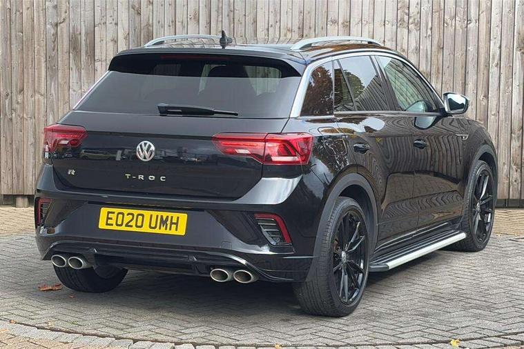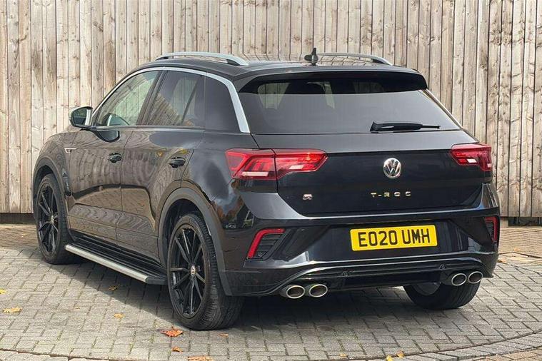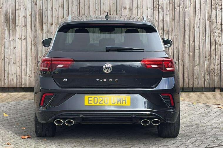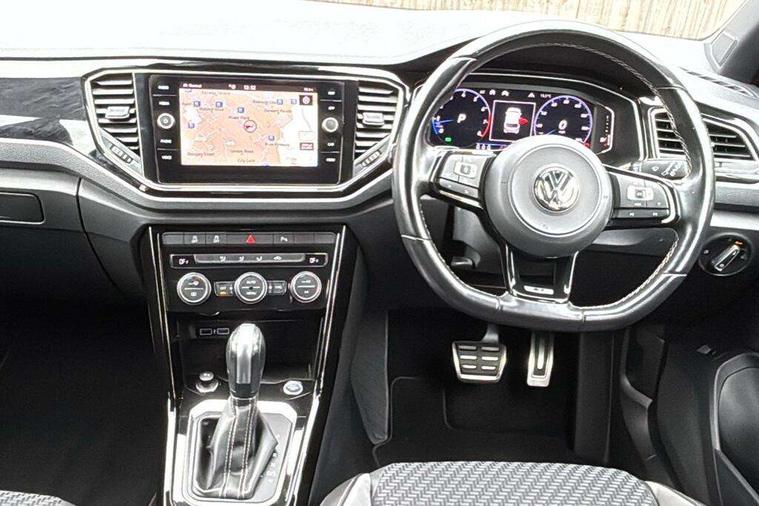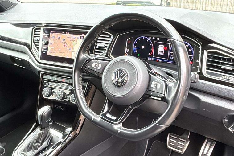 'Lights On' Reminder warning buzzer, 2 USB connection charging sockets, Active Info Display, 10.3" high resolution TFT dash display screen with customised information, Adaptive cruise control with front assist, radar sensor controlled distance monitoring, city emergency braking, App-Connect, Automatic start/stop system, Bluetooth telephone and audio connection for compatible devices, Car information display, Car-Net Security and Service, Discover navigation, 8" touch screen navigation/infotainment system with Car-Net, European map, CD/radio, 2D/3D map and speed limiter, Driver alert system with audible and visual fatigue detection system, Driver tips and journey analysis, Driving profile selection - Eco, normal, sport or individual modes with Individual mode allows for steering, drive and air conditioning settings, Lane assist, Multifunction computer with visual gear change recommendation for fuel consumption, Race mode in driving programme selection, Service interval indicator, Think blue trainer driver tips and journey analysis, Ultrasonic front and rear optical and audible parking sensors, Unique R instrument cluster, Voice activation, Warning sound and light for doors and tailgate open, Warning sound and light for front seatbelts unfastened, 4MOTION active control, Battery regeneration during braking, Four wheel drive, DAB Digital radio, Dynamic navigation based on TMC+, Multi device interface (MDI) with USB connection, Music playback - MP3, WMA and AAC files, Premium USB cable in choice of either Apple or Android smartphone compatibility, SD card slot, Simultaneous pairing of 2 compatible mobile devices, SMS functionality - read, compose and send SMS messages using touch-screen display, Three route options - Fast, Short, Eco, Title and cover art display, Auto dimming interior rear view mirror, Black grained lower door protectors, Black grained wheel arches, Body colour bumpers with silver metallic underbody fascia, Body colour door handles, Body colour rear roof spoiler, Dusk sensor, Electrically foldable, adjustable and heated door mirrors with puddle lights and reverse activated kerb-view adjustment on passenger's door mirror, Front and rear electric windows, Front windscreen wiper with intermittent wipe and 4 position delay, Fully galvanised body, Heated rear window, High level 3rd brake light, LED darkened rear light clusters, LED rear number plate lights, Manual coming/automatic leaving home lighting function, Radiator grille with R Logo, Rain sensor, Rear tinted glass from B-pillar backwards approx 65% tinted, Rear wash/wipe with intermittent wipe setting, Unique R badging, Unique R design key, Unique R door sill protectors, 12V socket in centre console storage area, 2 Front and rear reading lights incorporating LED technology, 3 rear head restraints, 4 load lashing points in luggage compartment, Ambient lighting in front footwell and light strips below trim in front doors, Black roof lining and sun visors, Branded points of interest, Climate control - 2 zone electronic air conditioning with automatic air recirculation and allergy filter, Drawer under drivers seat, Front and rear carpet mats with grey contrast stitching, Front centre armrest with storage compartment, longitudinal and height adjustable and two rear air vents, Front cupholders x 2, Front footwell illumination, Front seat back storage pockets, Front seat backrest, Glovebox, Height adjustable front seats, Height/reach adjust steering wheel, Illuminated vanity mirrors, Instrument lighting, white adjustable panel illumination, Interior light delay, Isofix easy fit child seat preparation for 2 outer rear seats, Load through provision with single cup holder when folded down, Luggage compartment cover, removable, Luggage compartment lighting, Lumbar support for driver's and front passengers seat, Split folding rear seat backrests with centre armrest, Stainless steel pedals with brake and accelerator, Storage compartment in left and right luggage area, Storage compartment in rear doors, Storage compartments in driver and front passenger doors, Three spoke multifunction leather trimmed steering wheel with grey contrasting stitching and aluminium inserts with R logo, Unique R gear lever knob, R styling pack - T-Roc, 3 rear three point seatbelts, ABS, Black brake calipers with R logo, Curtain airbags, Driver and front passenger safety-optimised head restraints, Drivers and front passengers airbags with passengers deactivation switch, Electronic parking brake with auto hold, Electronic stability control (ESC) includes ASR, EDL, EDTC and trailer stabilisation function, Front seat side impact airbags, Predictive pedestrian protection, Rigid safety cell with front and rear crumple zones, Three point height adjust front seatbelts + pretensioners, Tyre pressure loss indicator, Ventilated front and rear disc brakes, Volkswagen roadside assistance, Alarm with interior protection and deactivation via infotainment system, Electronic engine immobiliser, Remote central locking with 2 remote folding keys, 19" Pretoria alloy wheels with anti-theft wheel bolts, Space and weight saver spare wheel,