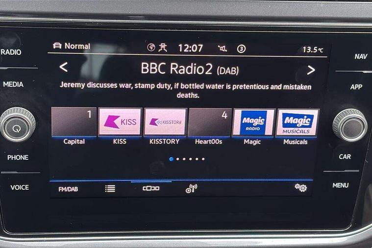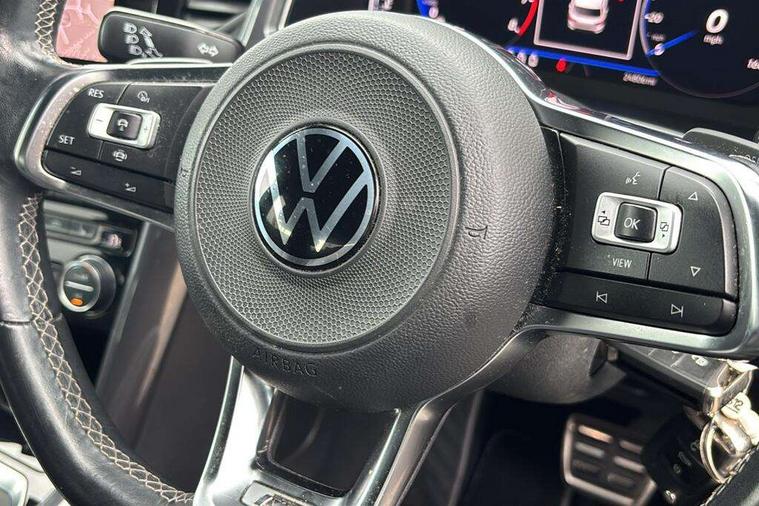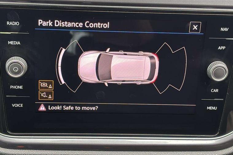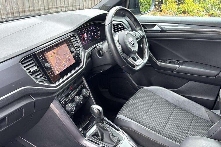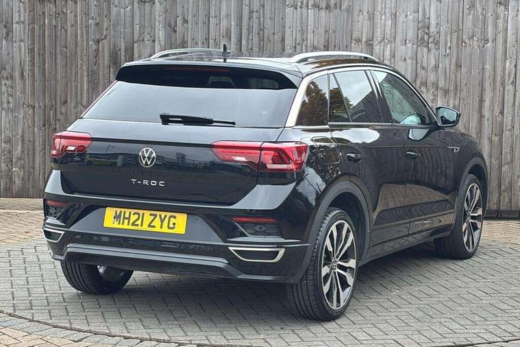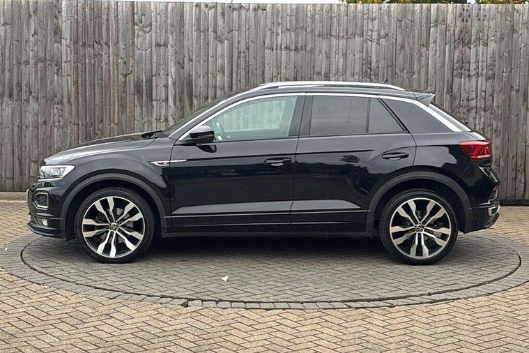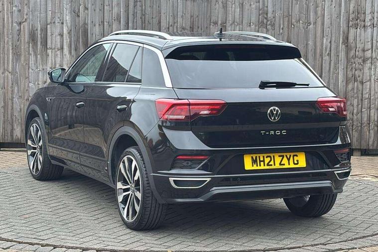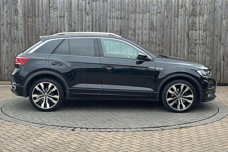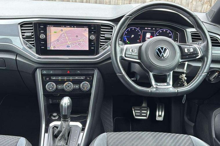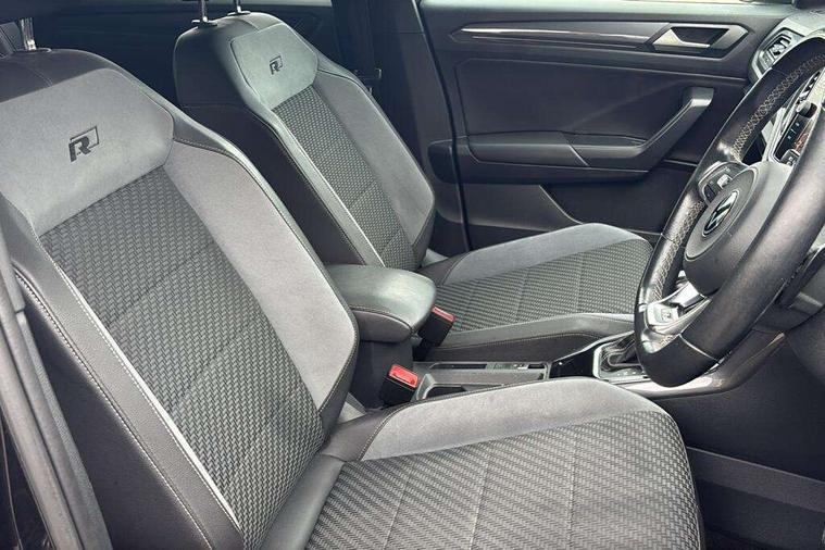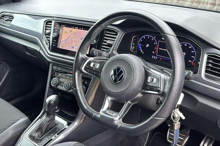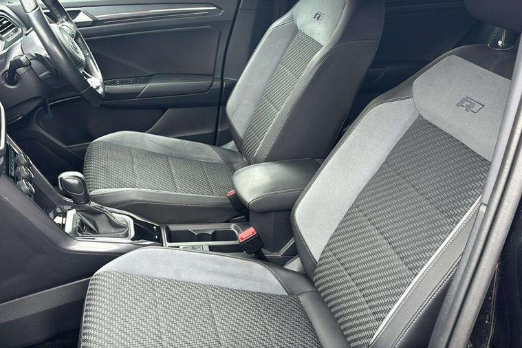 'Lights On' Reminder warning buzzer, Adaptive cruise control, Bluetooth telephone and audio connection for compatible devices, Car information display, Digital Cockpit Pro - Active info display, Driver alert system with audible and visual fatigue detection system, Driver tips and journey analysis, Dusk sensor, Emergency call service, Lane assist with warning text instrument cluster, Modified key software - reduce switch off time for key status change to Long no motion, Multifunction camera, Multifunction computer with visual gear change recommendation for fuel consumption, Navigation system discover media including streaming and internet, Service interval indicator, Think blue trainer driver tips and journey analysis, Traffic sign recognition, Voice activation, Warning sound and light for front seatbelts unfastened, Wireless app connect for apple carPlay, Battery regeneration during braking, Rear shock absorption for sports version, Start/stop function with battery regeneration, DAB Digital radio, Disk brakes in front, Diversity antenna for FM reception, Music playback - MP3, WMA and AAC files, Premium USB cable in choice of either Apple or Android smartphone compatibility, SD card slot, Simultaneous pairing of 2 compatible mobile devices, SMS functionality - read, compose and send SMS messages using touch-screen display, Storage compartment with longitudinal and height adjustable in armrest and two rear air vents, Three route options - Fast, Short, Eco, Title and cover art display, USB-C Interface and USB charging socket, Auto dimming interior rear view mirror, Automatic coming/leaving home lighting function and daytime running lights, Automatic hazard lights activation under emergency braking, Black grained lower door protectors, Body colored door lower parts, Body colour door handles, Body colour rear roof spoiler, Chrome effect left and right trapezoid exhaust tailpipe fascia surround, Chrome plated moldings, Chrome plated radiator grille inserts, air vent surrounds and light switch surrounds, Chrome trim on upper and lower radiator grille, Dynamic headlight range control with self adjusting whilst driving, Electrically foldable, adjustable and heated door mirrors with puddle lights and reverse activated kerb-view adjustment on passenger's door mirror, External USB type C socket and charging sockets, Front and rear electric windows, Front fog lights with static cornering function, Front windscreen wiper with intermittent wipe and 4 position delay, Fully galvanised body, Heated rear window, Heated windscreen washer jets, High level 3rd brake light, LED darkened rear light clusters, LED headlamps with automatic range adjustment and unique signature LED separate daytime running lights, LED rear number plate lights, LED tail lamp rear comination lamps, Privacy glass, R-Line design body coloured bumpers, Rain sensor, Rear tinted glass from B-pillar backwards approx 65% tinted, Rear wash/wipe with intermittent wipe setting, Silver anodised roof rails, Volkswagen roundel, 12V socket in centre console storage area, 3 rear head restraints, 4 load lashing points in luggage compartment, Aluminium pedals, Black roof lining and sun visors, Branded points of interest, Carbon flag cloth upholstery, Climate control - 2 zone electronic air conditioning with automatic air recirculation and allergy filter, Door and side trim panel, Door and side trim panel in foam film, insert in leatherette, Drawer under drivers seat, Front + rear carpet mats, Front centre armrest, Front cupholders x 2, Front seat back storage pockets, Front sports seats with R-Line logo on seat backrest, Glovebox, Heated front seats, Height adjustable front seats, Height/reach adjust steering wheel, Instrument lighting, white adjustable panel illumination, Interior light delay, Interior light in footwell, Isofix easy fit child seat preparation for 2 outer rear seats, Leather gearshift knob, Leather multi function sport steering wheel with gear change selection via paddle shift on steering wheel, LED interior light with switch off delay/dimmer and 2 front/rear LED reading lights, Load through provision with single cup holder when folded down, Luggage compartment cover, removable, Luggage compartment lighting, R Line badge, Scuff plates in door apertures, Split folding rear seat backrests with centre armrest, Stainless steel pedals, Storage compartment in left and right luggage area, Storage compartment in rear doors, Storage compartments in driver and front passenger doors, Sunvisors with illuminated vanity mirrors, Unique R Line door sill protectors, White ambient lighting, R line styling pack - T-Roc, Winter pack - T-Roc, 3 rear three point seatbelts, ABS, Curtain airbags, Driver and front passenger safety-optimised head restraints, Drivers and front passengers airbags with passengers deactivation switch, Drivers seatbelt reminder, Electronic parking brake with auto hold, Electronic stability control (ESC) includes ASR, EDL, EDTC and trailer stabilisation function, Front assist with city emergency braking and pedestrian monitoring, Front seat side impact airbags, Hill start assist, Predictive pedestrian protection, Rigid safety cell with front and rear crumple zones, Single tone horn, Three point height adjust front seatbelts + pretensioners, Tyre pressure loss indicator, Ventilated front and rear disc brakes, Volkswagen roadside assistance, Alarm with remote central locking and interior protection, Electronic engine immobiliser, Remote central locking with SAFELOCK, radio remote control with 2 remote control folding keys, Shadow grey decorative inserts in dash, centre console and door panel, 19" Suzuka alloy wheels with low rolling resistance tyres and anti wheel bolts,