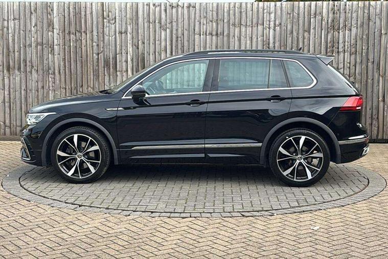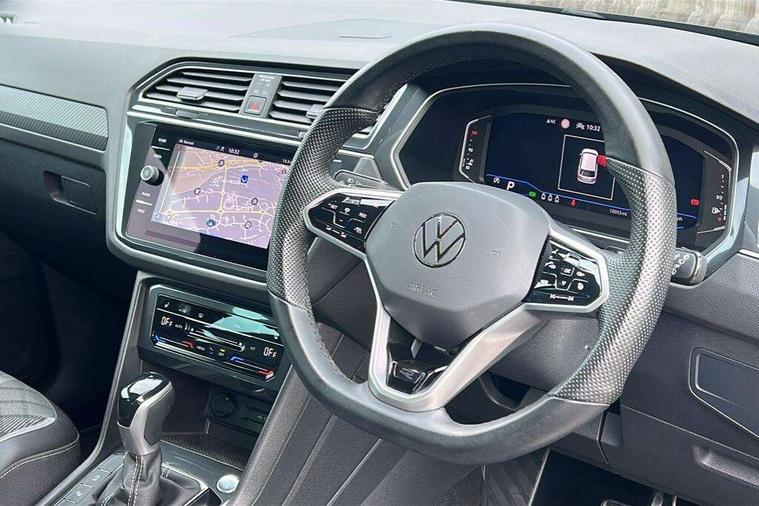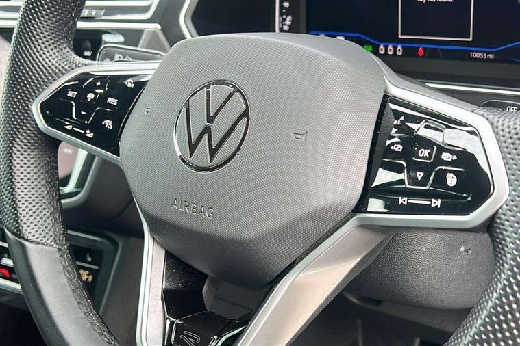 Adaptive cruise control ACC stop and go including speed limiter, App-Connect incl. App-Connect Wireless for Apple CarPlay and Android Auto, Bluetooth phone integration system, Distance control assist, Driver alert system, Driver profile selection, Dynamic road sign display, eCall emergency call system, Electromechanical speed sensitive power steering, Engine start/stop button, Lane keeping system Lane Assist, Lights on warning, Multifunction front facing camera, Outside temperature display, Premium multifunction display with multi colour display, Remote control boot opening, Rev counter, Revision / skills operating concept travel assistant, Service interval indicator, Speed limit display, Start/stop system with regenerative braking, Trip computer, Warning sound and light for doors and tailgate open, All wheel drive - 4Motion, Battery regeneration during braking, XDS electronic differential lock for improved traction and handling, 4 X 20 watt output, 8 Speakers, Diversity antenna for FM reception, Radio, SD card slot, Simultaneous pairing of 2 compatible mobile devices, SMS functionality - read, compose and send SMS messages using touch-screen display, Title and cover art display, USB C ports, Auto dimming interior rear view mirror, Automatic headlight control system, Body colour door handles, Chrome moldings on the side windows, Coming/leaving home lighting function, Dynamic headlight range control, Front and rear electric windows, Heated rear window, High level 3rd brake light, Laminated safety glass windshield, heat and sound insulating, LED headlamps with LED separate daytime running light and dynamic cornering light, LED rear combination lamps, LED rear number plate lights, License plate carrier in front and rear, Poor weather light and cornering light, R Line body kit, R Line side sills, Rain sensor windscreen wipers, Rear exhaust tailpipe, Rear fog lamp, Rear side wing doors, Rear spoiler in R style, Rear windscreen washer and wiper with interval delay, Side and rear windows in heat insulating glass, Trailer Stability Programme, Unique R Line badging, Windscreen wipers/ intermittent wipe + 4 position delay, 12V outlet in center console rear and in luggage compartment, 12V outlet in front and tray, 2 cup holders in front, 2 LED front reading lights, 2 LED rear reading lights, 3 bench rear seats in 2nd row, 3 rear headrests, 4 load lashing points, 40:20:40 split folding rear seats, Air Care Climatronic 3 zone automatic climate control with enhanced air filter and controls in the rear, Backrest release for left front seat, Black headlining, Brushed stainless steel pedals and footrest, Carpet mats in front and rear with decorative stitching in Gray, Climate control unit rear with touch function, Door and side trim panel in foam film, insert in leatherette, Front centre armrest, Front footwell illumination, Front seats head restraints (x-adjustment), Height adjustable front seats, Height/reach adjust steering wheel, Instrument lighting white adjustable panel illumination, Interior light with delay, Isofix Preparation 2 Rear child seats, Leather gear knob, Lockable cooled glovebox, Luggage compartment lighting, Luggage net, Rear bench seat asymetrically split folding, longitudinally movable and folding with load-through hatch and center armrest, Remote unlocking for rear seat backrest, Removable luggage cover, Removable rear headrests, Safety optimised front head restraints, Single front passenger seat, Sliding/reclining rear seats, Standard rear seat release, Storage compartment in driver's door, Storage compartment in passenger's door, Storage compartment in rear doors, Storage compartments in luggage area left and right, Storage tray on dashboard, Sun visors with illuminated vanity mirrors, Top front comfort seats, Variable boot floor, height adjustable and removable, Driver assistance pack plus - Tiguan DSG, 3 point seat belt for centre rear seats, 3 point seat belts with seat belt pretensioners for the outer rear seats, Active bonnet, Curtain airbags for front and rear passengers, Driver/Front Passenger airbags, Drivers knee airbag, Electronic parking brake with auto hold, Electronic Stability Control with driver steering recommendation, ABS, ASR, EDL, EDTC and trailer stabilization, Front assist with autonomous emergency braking (for Adaptive Cruise Control ACC up to 130 mph), Front disc brakes, Front passenger airbag deactivation, Front side airbags, Height adjustable front 3 point seatbelts + pretensioners, Hill hold control, Manual child proof rear door locks, Pedestrian monitoring system, Power assisted brakes, Proactive passenger protection system in combination with front assist, Rear disc brakes, Rigid safety cell with front and rear crumple zones, Two tone horn, Warning sound and light for front seat belts if unfastened, Anti theft alarm system with interior monitoring, backup horn and towing protection, Anti theft wheel bolts, Electronic engine immobiliser, Tool kit,
