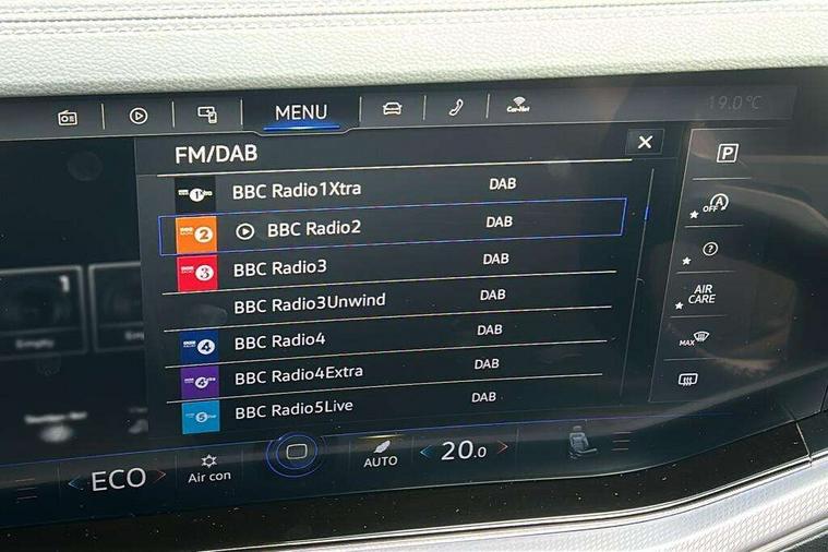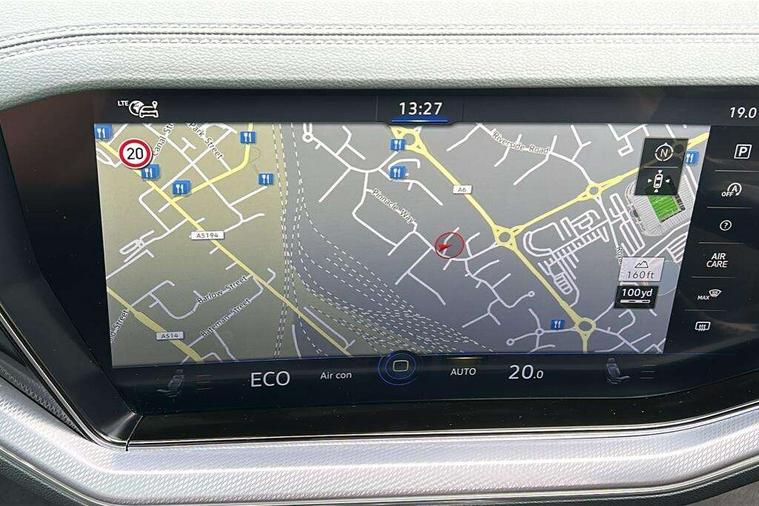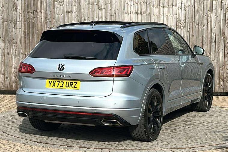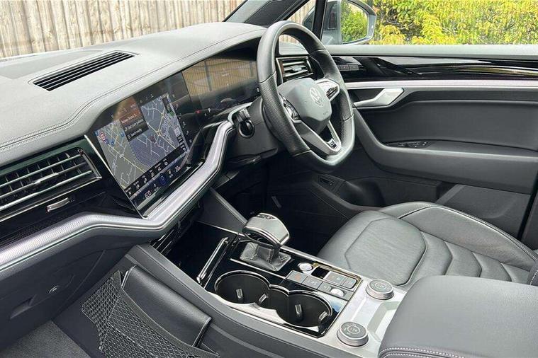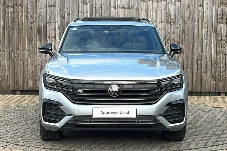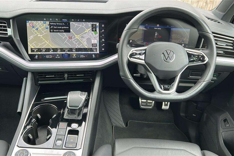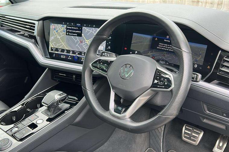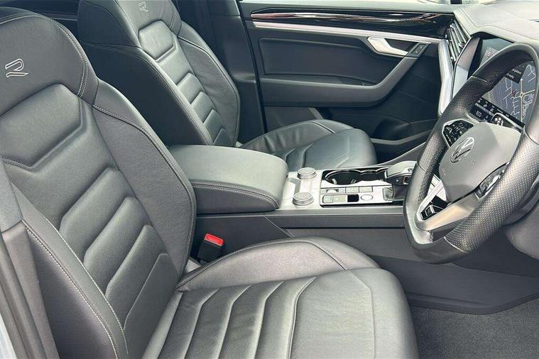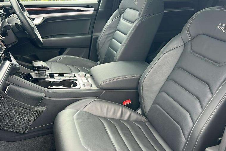 2D/3D map view, ACC - Adaptive cruise control with front assist, forward collision warning, distance monitoring, city emergency brake and speed limiter, Apple car play/Android Auto, Audible and visual fatigue detection system, Bluetooth hands free telephone connection, Car information display, Drive select with Damper control, Driver alert system, Driver profile selection, Dynamic road sign display camera controlled system with visual warning for traffic and road signs, eCall emergency system, Fully electric tailgate + keyless entry and start, Instrument cluster, MirrorLink, Multifunction camera, Multifunction computer premium with 7" colour display, One touch indicators with repeat function, Service interval indicator, Speed sensitive power steering, Start/stop system with regenerative braking, Tailgate power latch, Think blue trainer driver tips and journey analysis, Traffic sign recognition, Voice control system, Wireless Smartphone charger, 24 litre AdBlue tank, Torsen limited slip differential, DAB Digital radio, Dynamic navigation based on TMC+, Gesture control for infotainment system, Multi device interface (MDI) with illuminated USB-C connection, Music playback - MP3, WMA and AAC files, SD card slot, Simultaneous pairing of 2 compatible mobile devices, SMS functionality - read, compose and send SMS messages using touch-screen display, Title and cover art display, Volkswagen media control, Adaptive low beam for urban and motorway use, Auto dimming rear view mirror, Automatic coming/leaving home lighting function, Automatic headlights, Black anodised roof rails, Black door mirrors, Black rear diffuser, Black side window surrounds, Black upper and lower grille louvres extending into headlights and radiator grille, Body colour door handles, Body coloured wheel arches, C signature gloss black front air intake, Chromed tailpipe on the left and right integrated in the bumper with trapezoid design, Dusk sensor, Dynamic headlight range control, Electric front tilt/slide panoramic sunroof and fixed rear sunroof, Electrically power adjustable, heated, folding, auto dimming, front passenger exterior door mirror lowering function, Front and rear electric windows, Galvanised body, Gloss black finish B pillar, Gloss black rear diffuser, Headlight washers, Heat insulating glass in side and rear windows, Heated windscreen washer jets, IQ.Light-LED matrix headlight, daytime running light with dynamic cornering light and indicator, LED 3rd brake light, LED rear fog light, LED rear number plate lights, Plastic scuff plates in door apertures, Poor weather light, Puddle lights, Rain sensor, Rear side wing doors, Rear wiper, 12V socket in front and rear centre console and boot, 2 Coat hooks on B pillar, 3 rear head restraints, 3 seat bench in 2nd row, 3 spoke sport heated leather multi-function sports steering wheel with gear shift paddles - generation 2, 4 way adjustable front head restraints, 4 way electric lumbar support for driver and front passenger, 4 zone climate control, 40:20:40 split folding slide/recline rear seat, B pillar vents, Black lower edge of door extending sills, Branded points of interest, Double sun visor for drivier and passenger with LED illuminated vanity mirrors, Electric luggage compartment cover, Folding rear centre armrest with 2 cupholders, Front + rear carpet mats, Front centre armrest with storage box, Gear shift indicator, Height/reach adjust steering wheel, Illuminated air conditioned glovebox, Isofix preparation for 2 rear child seats, Jack and tool kit, Leather trimmed gear knob with gloss black inlay/aluminum trim, Leatherette door trim, LED luggage compartment lighting, Load through provision, Luggage compartment with load lashing rings, Plastic loading edge protection, Rear seat remote release levers, Single front passenger seat, Soul black headlining, Stainless steel pedals, Innovision cockpit pack - Touareg, 3 point front seatbelts with pre-tensioners, ABS, Active bonnet, Automatic post collision braking system, Curtain airbags, Driver/Front Passenger airbags, EBD + Brake Assist, EDL, Electronic parking brake with auto hold, ESC with ASR, Front seat side impact airbags, Hill descent control, Hill start assist, Passenger airbag deactivate switch, Seatbelt warning lamp and buzzer, Three 3 point rear seatbelts, Two tone horn, Volkswagen roadside assistance, Warning triangle and first aid kit, Alarm with interior monitoring in cab, backup horn and towing protection, Child security locks for front and rear doors, Electronic engine immobiliser, Remote central locking, Black decorative trims on the side windows, High gloss black centre console,