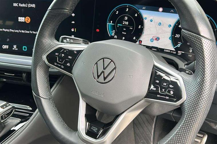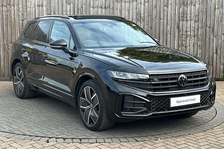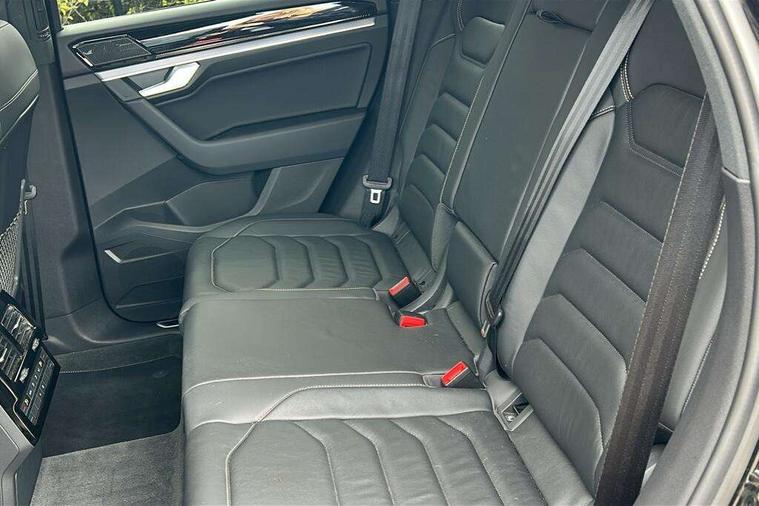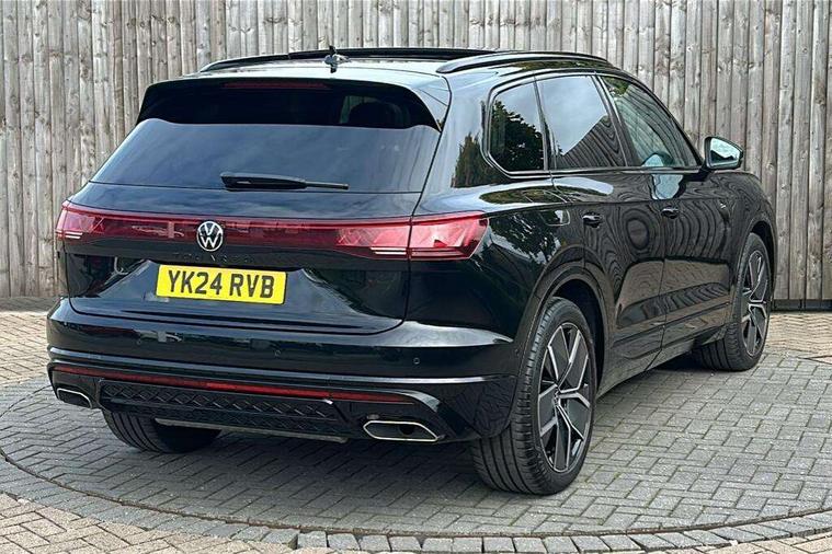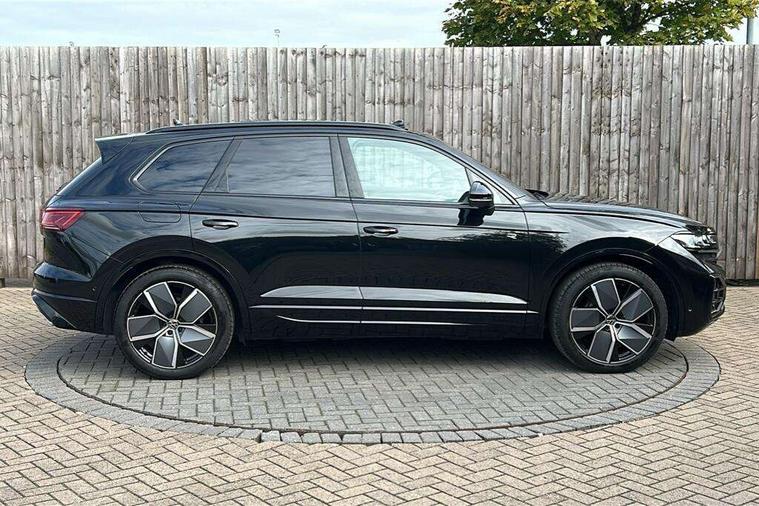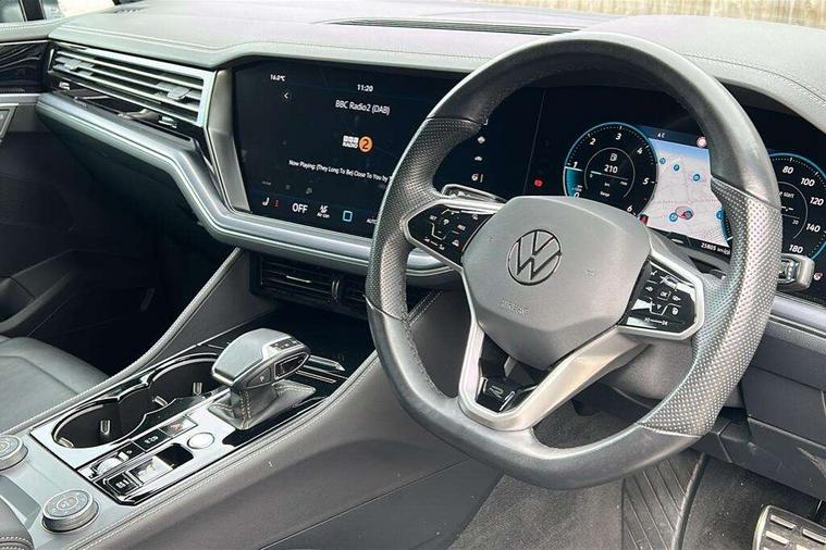 15" Screen Top infotainment system Premium (MIB3), Adaptive cruise control, Advanced driver attention and drowsiness monitor, Driver profile selection, Dynamic road sign display, E-Sim card for online connectivity, eCall emergency system, Innovision cockpit, Intelligent park assist, Mobile phone interface with inductive charging, Multi-colour Active Info display, Park Assist - Sensor controlled steering aid to assist parallel or bay parking, PAS, Warning signal and warning light for front and rear seatbelts not fastened, Wireless app connect, Adaptive chassis control, DAB Digital radio, Diversity antenna for AM/ FM reception, We Connect and We Connect Plus functionality, Automatic coming/leaving home lighting function, Automatic headlights, Black door mirrors, Black style comfort bumpers, Dynamic headlight range control with dynamic cornering light, Electric front tilt/slide panoramic sunroof and fixed rear sunroof, Electrically power adjustable, heated, folding, auto dimming, front passenger exterior door mirror lowering function, External USB type C socket and charging sockets, Gloss black roof rails, HD LED Matrix beam plus digital headlight projection with variable light distribution, Headlight washers, Heat insulating darkened glass in side and rear windows, Heated windscreen washer jets, Highway light, LED 3rd brake light, LED daytime running lights, LED rear combination lamp with variable lighting functions and special styling, Poor weather light, Rain sensor, Rear exhaust tailpipe, Rear fog light with back up light on both sides, Rear light bar and illuminated logo, Rear side wing doors, Rear wiper, Stainless steel door sill protection, 12V socket in centre console, 3 rear headrests, 3 seat bench in 2nd row, 4 zone climate control, Airbag label on sun visor and B-pillar, Brushed stainless steel pedals, Double sun visors with illuminated vanity mirrors, Front + rear carpet mats, Front centre armrest, Leather wrapped multifunction sports steering wheel, heated, with touch control and shift paddles, Mechanical rear seat release, Power adjustable lumbar support in front, Power seats in front, right side with memory features and seat cushion depth adjustment, Rear seat backrest and split folding with center armrest, Single front passenger seat, Tool kit, Memory pack plus - Touareg, 3 point seatbelts, outer rear with ECE lable, ABS, Child locks on rear doors, Curtain airbags, Driver and front passenger safety-optimised head restraints, Driver/Front Passenger airbags, Extended pedestrian protection measures, Front assist, Front seat side impact airbags, Generative braking with start and stop system, Height adjustable 3 point front seatbelts with pre tensioners, Passenger airbag deactivate switch, Three 3 point rear seatbelts, Two tone horn, Tyre pressure loss indicator, Warning triangle and first aid kit, Alarm system with interior protection, Easy open and close sensor controlled luggage compartment opening and closing with remote unlocking, Keyless Access Keyless locking and starting system with SAFELOCK, Aluminium decorative inserts, Black decorative trims, Gloss black decorative inserts in centre console,