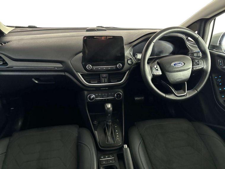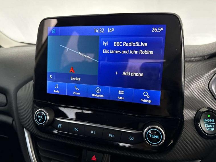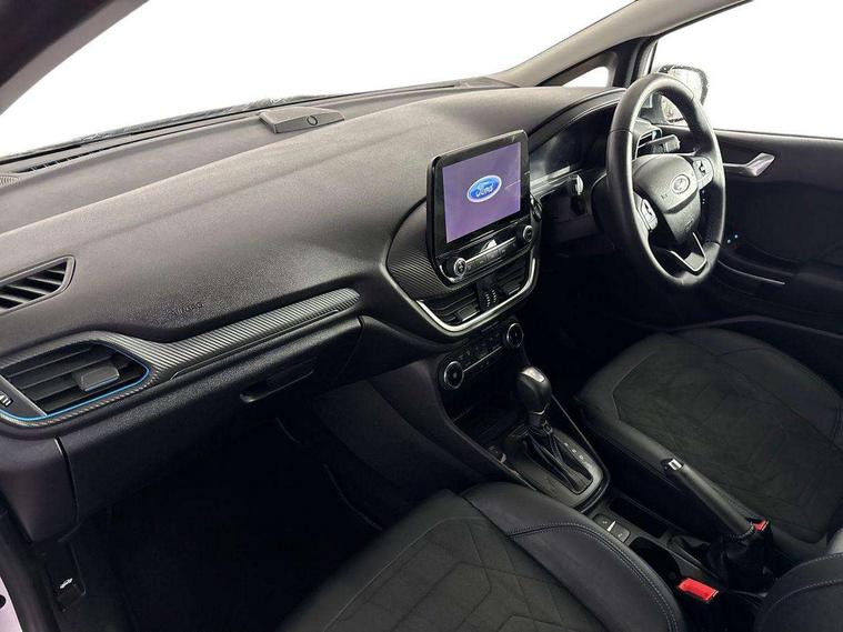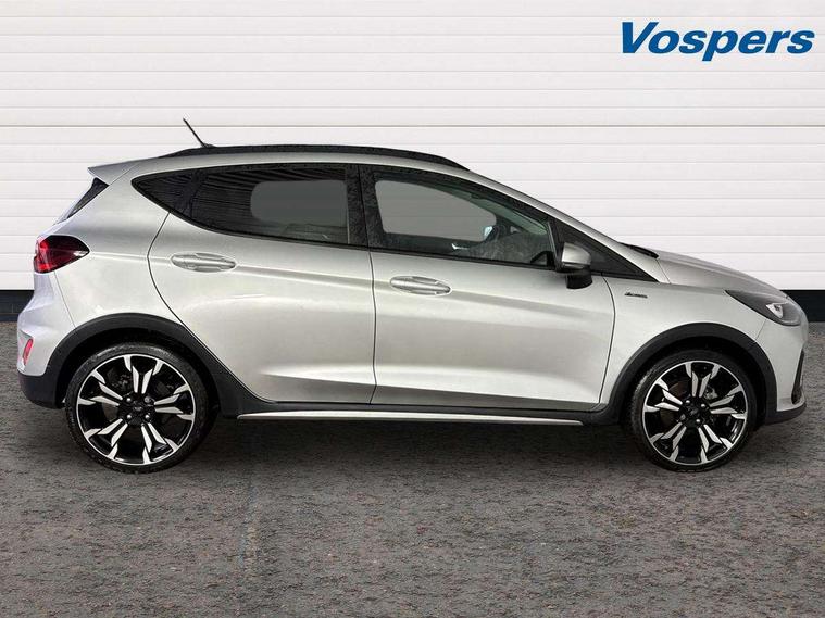 12.3" Full digital cluster, Driver alert system, Electric power steering, Extra selectable drive modes ( Trail, Slippery), Ford easy fuel, Ford SYNC 3 Nav with DAB radio, 8" touch screen, voice control, emergency assist, Apple CarPlay/Android auto, 2x USB, 6 speaker, Ford pass connect, Rear parking distance sensors, Rear view camera, Speed sign recognition, Trip computer, Wrong way alert, Rough road suspension with increased ride height adjust, Auto high beam, Body colour bumpers, Body coloured electrically operated with side indicators, Electric front windows/one touch facility, Electric rear windows, Front ST line scuff plate, LED Night signature to rear lights, LED third brake light, Quickclear heated windscreen, Rain sensing wipers and auto dimming rear view mirror, Rear privacy glass, Rear side wing doors, Rear wiper, Rugged bodystyling kit with active front wing badges, Silver roof rails, 3 seat bench in 2nd row, 4 way manually adjustable passenger seat, Adjustable head restraints, Centre console with opening armrest, 2x cupholders, 12v and USB, Drivers and Passenger lumbar support, EATC - Electronic Auto Temperature control, Front floor mats in velour, Leather gear knob, LED ambient lighting, Manual 4-way driver seat adjust, Sensico partial premium leather upholstery with blue stitching, Sensico wrapped steering wheel, Single front passenger seat, NCAP Pack - Fiesta, Winter pack [GTBAB]- Fiesta, 3 point seatbelts on all rear seats, Electronic stability control with hill start assist, Manual child lock in rear doors, Tyre pressure monitoring system, Ford keyfree system with Keyless entry and keyless start, MyKey system, Remote central locking, Thatcham alarm with power door dead locks, 18" 5x2 spoke alloys with bi-colour black machined finish,