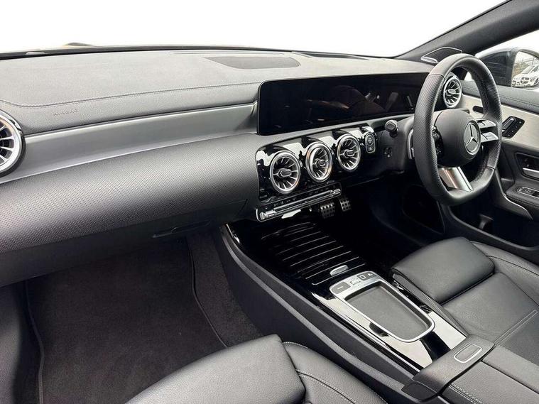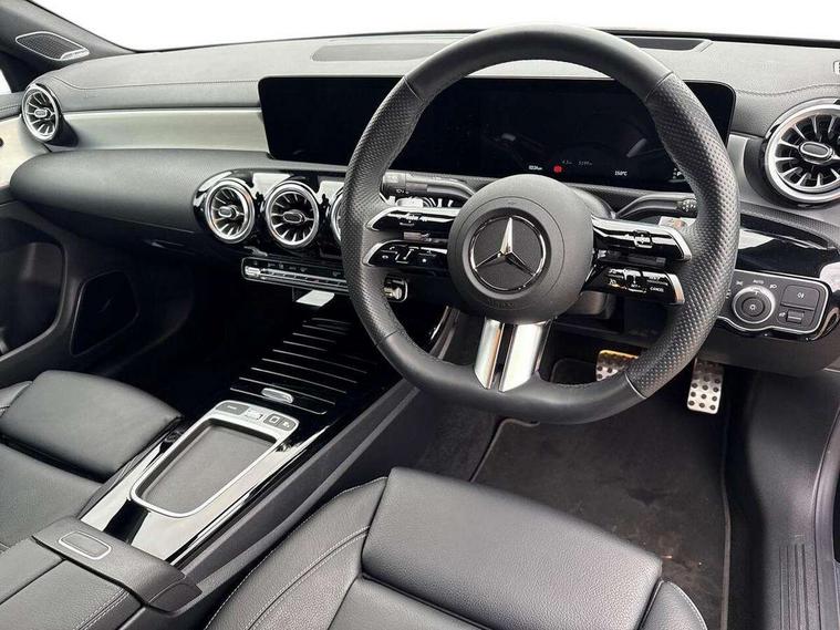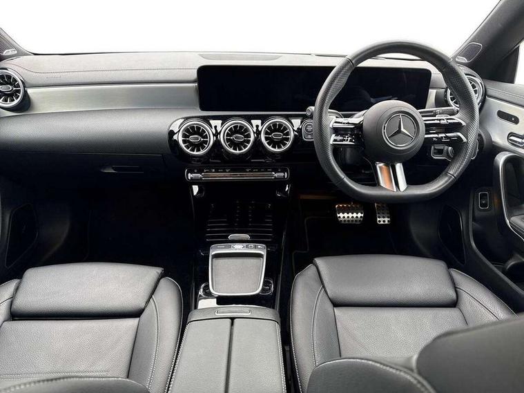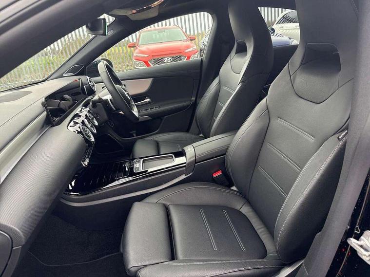 10.25 inch Instrument display with digital cockpit, 10.25 inch touchscreen central media display, Active lane keeping assist, Attention assist - Monitors steering behaviour and long journey fatigue, Bluetooth connection, Car wash mode, Cruise control with limiter, Direct steer system, DYNAMIC SELECT with a choice of driving modes (ECO, Comfort, Sport and Individual), ECO start/stop function, Fingerprint sensor, Fluid level warning indicator for fuel, oil, coolant and washer fluid, Hard-disk navigation, Head up Display, Hey Mercedes Voice activation, Lamp failure indicator, Mercedes me connect including emergency call system, accident recovery, breakdown and maintenance management, Mercedes me remote services, Outside temperature gauge, Owners manual in English, Pre-installation of private car share, Radio aerial integrated into front and rear windshields, Service indicator (ASSYST), Smartphone integration with Apple CarPlay and Android auto, Traffic sign assist, Trip computer in multifunction display with current consumption indicator, Wireless charging in the front centre console, Comfort suspension with ride height lowering, Rear axle multi-link, Burmester lettering on the speakers, Burmester surround sound system (710W) with dolby atmos, speakers - 1 central, 1 woofer, 1 tweeter, 1 subwoofer with 60W, 2 in C pillar, DAB digital radio tuner, MBUX multimedia system, Pre installation for Mercedes Benz Link, Adaptive brake lights, AMG body styling with AMG front apron and rear apron and visible exhaust tailpipe in chrome trim elements, Body colour door handles, Electric panoramic sunroof with automatic tilt and convenience closing fuinctions, rain sensor auto closing and electronic roller sunblind, Electric windows, Electrically adjustable and heated door mirrors with integrated LED indicators, Exhaust system with 2 Visible tailpipe trim elements and rear apron with trim in chrome, Hand free access, Headlamp assist automatic headlamp activation, Heated glass rear windscreen + timer control, High level LED third brake light, Integrated LED daytime running lights, Interior mirror with black reading lamps and frameless, LED tail lamp, Multibeam LED headlamps with adaptive highbeam assist plus, Privacy glass with dark tinting on rear side windows and rear window, Radiator grille with Mercedes-Benz pattern in chrome and central Mercedes star, single louvre in high-gloss black with chrome inserts, Rain sensing windscreen wipers with two sensitivity settings, Rear boot, Rear fog lamp, Rear side wing doors, Variable front intermittent wipers, 3 seat bench in 2nd row, 3 twin spoke flattened multifunction steering wheel in nappa leather - horizontal twin spoke in high gloss black, vertical twin spoke in silver chrome, 40:20:40 split folding rear seat backrests, Air conditioning - Two zone thermotronic luxury automatic climate control with display, Air vents with surround in silver chrome, Automatic child seat recognition sensor, Black roof lining, Brushed stainless steel sports pedals with rubber studs, Electrically adjustable front memory seats including 4 way lumbar support, Floor mats with stitched AMG lettering, Fluorescent jacket, Front centre armrest with stowage, Galvanished gear shift paddles in silver chrome, Interior lighting - 64 colour Ambient lighting, Luggage net on driver/front passenger seat backrest, Manually height and reach adjustable steering column, Rear armrest with two integral cup holders for drinks, Rear head restraints, Single front passenger seat, Sport seats with fixed head restraints, Stowage compartment in centre console with retractable cover, Sunvisors with illuminated vanity mirrors, Twin front cupholders, Two outer rear seat isofix and top tether child seat fixing points, Keyless go comfort pack - CLA, Light and sight pack - CLA, Mirror pack - CLA, Night package - CLA, Parking pack with 360 degree camera - CLA, Seat comfort pack - CLA, USB package plus - CLA, Winter pack - CLA, Active bonnet pedestrain safety measure which detects an impact and raises bonnet by 65mm, Adaptive brake assist with hold function and hill start assist, Anti lock braking system (ABS) with brake assist, Black seat belts, Bonnet with power domes, Brake calipers with Mercedes-Benz lettering, Brake pad wear warning indicator, Childproof locks manually operated for rear doors and electrically operated for rear power windows, Crash responsive emergency lighting, Driver and front passenger head and sidebags, Driver and front passenger windowbags, Drivers knee airbag, Dual stage driver and front passenger airbags, Electric parking brake, Electronic stability programme with acceleration skid control, ESP curve dynamic assist, Exit warning, Front and rear seatbelt reminder, Front passenger seat occupancy sensor, Perforated front brake discs, Sports braking system, Three point rear seat belts, Tyre pressure monitoring system, Warning triangle and first aid kit, Alarm system with immobiliser and interior protection -Thatcham category 1, Guard 360 deg vehicle protection - tow away protection with visual, acoustic warning, interior monitoring, preinstallation for parking damage, Remote central locking and crash sensor with emergency opening function, Light aluminium with longitudinal grain interior trim, 19" AMG multi-spoke black painted light alloy wheels with high sheen rim flange, Summer tyres, Tirefit tyre sealant kit,