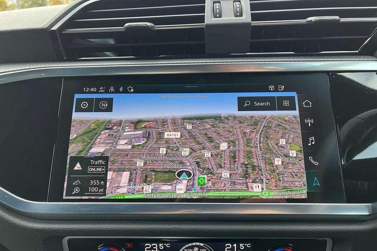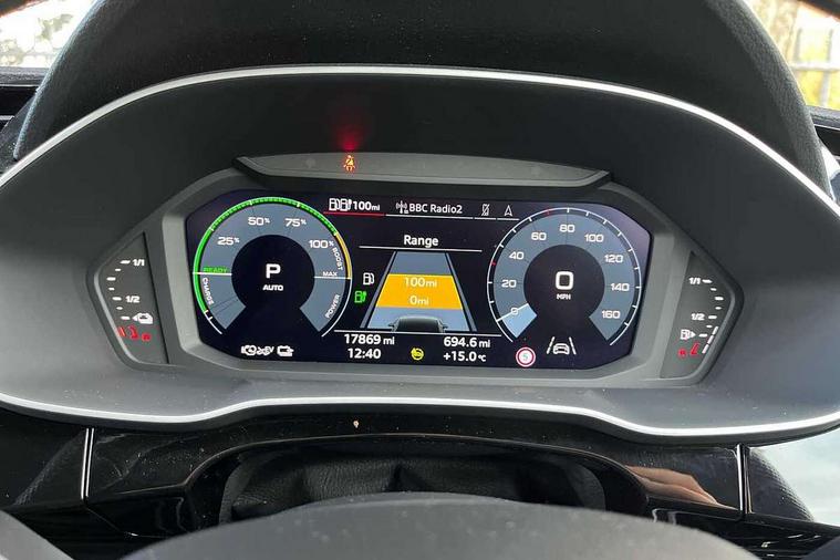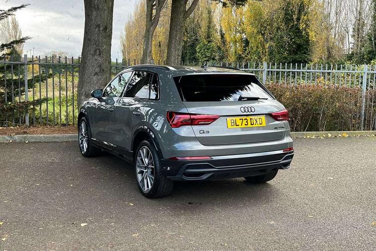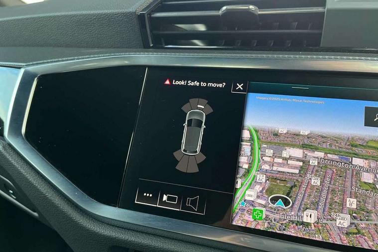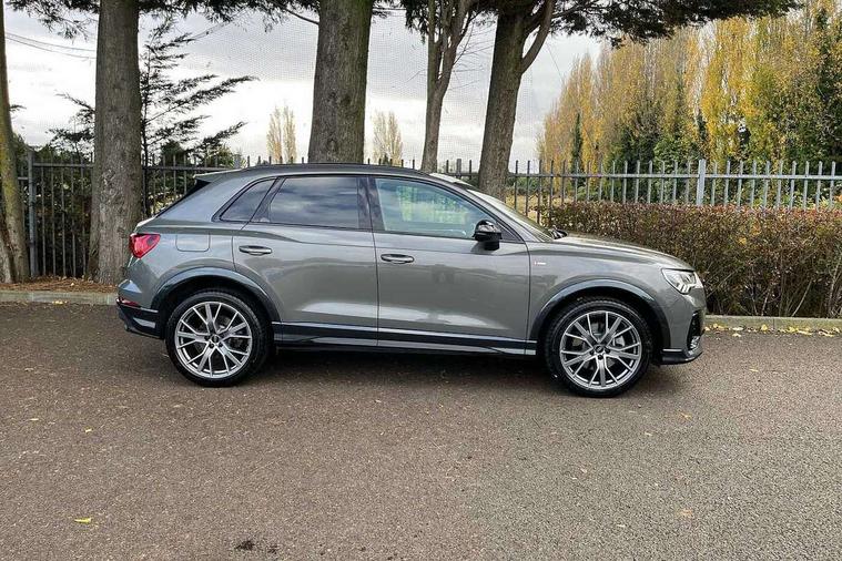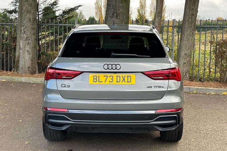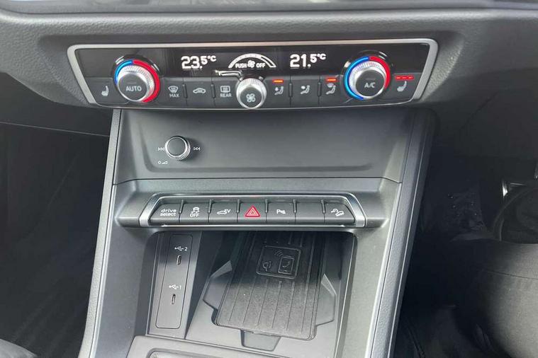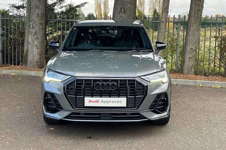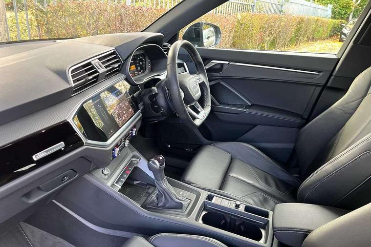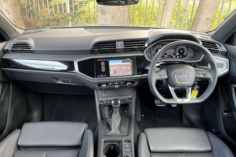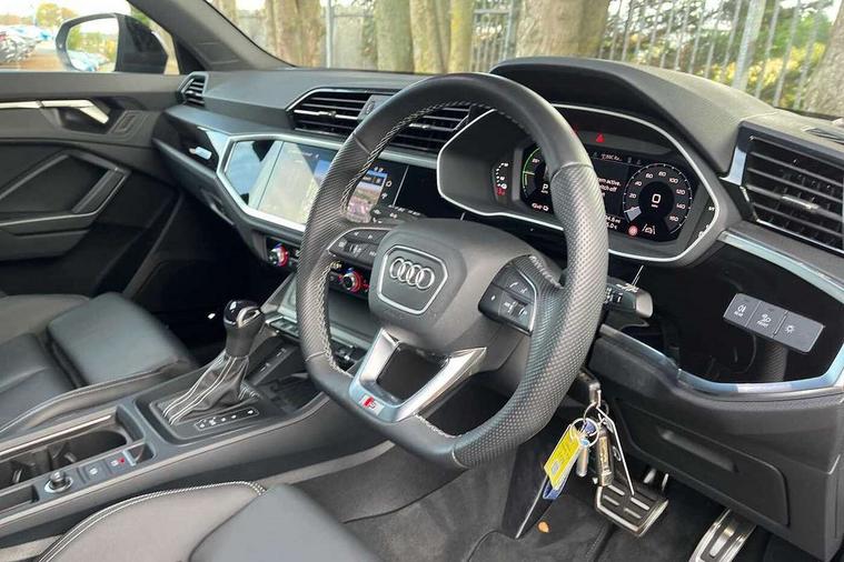 Amazon alexa Integration, Audi drive select, Audi lane departure warning, Audi Virtual Cockpit - 10.25" display, Bluetooth interface, Camera based traffic sign recognition, Legal emergency call, MMI Navigation Plus with high resolution 10.1 inch touchscreen colour display, Power operated tailgate, Progressive steering, Service interval indicator, Smartphone interface includes wireless Apple carplay/Android Auto, Start stop system with recuperation, Voice control system with natural language interaction, 3 pin 10 amp domestic charging cable, 3.6 kw On-board charger, Type 2 mode 3 32 amp charging cable, Type 2 socket for AC charging, 2 USB-C ports with charge and data functions, 6 passive loudspeakers, DAB digital radio module, Acoustic windscreen, Auto dimming frameless rear view mirror, Black roof rails, Electrically folding, adjustable and heated door mirrors with integrated LED side indicators and kerb view function for passenger side, Front and rear electric windows, Front fog lights, Grille vertical bars in aluminium silver/Matt, High gloss black finish B and C pillars, LED Dynamic rear indicators, LED headlights with LED daytime running lights, LED rear lights, LED third brake light, Privacy glass dark tinted rear and rear-side windows (from B-pillar backwards), Rain and light sensors, Rear diffuser grille in grained matt black, Rear diffuser strip in matt anthracite black, Rear side wing doors, Rear wiper, S line bumpers in contrasting Manhattan grey, Variable front intermittent wipers, 12V socket in rear centre console, 3 seat bench in 2nd row, 40:20:40 folding with manual adjustment for 60:40 forwards/backwards position and backrest angle, Adjustable rear seat bench/backrest with centre armrest and cupholder, Black cloth headlining, Dual zone electronic climate control, Front and rear black floor mats with contrast stitching in rock grey, Front and rear headrests, Front and rear roof module including reading lights, Front centre armrest, Glove compartment lighting, Height and reach adjustable steering wheel, Illuminated door sill trims with S logo, ISOFIX child seat mounting for front passenger with airbag deactivation and outer rear seat including top tether attachment point for outer rear seats, Luggage compartment light, Manual front seats with height adjustment, Perforated leather gearknob, Single front passenger seat, Stainless steel luggage compartment sill finisher, Stainless steel pedals, Ambient lighting pack - Q3, Black styling pack - Q3, Non smoking pack - Q3, 3x3 point rear seatbelts, 6 airbags - Driver, front passenger, curtain and side windows, Audi pre-sense front with pedestrain and cyclist recognition, Electrically operated child locks on rear doors, Electromechanical parking brake, Electronic stabilisation control including ABS, ASR and EDL, Front seatbelt reminder, Hill descent control, Hill hold assist, Pre sense basic, Seatbelt monitoring, Tyre pressure warning, Warning triangle and first aid kit, Anti theft alarm, Anti theft wheel bolts, Immobiliser, Remote central locking, Aluminium look interior elements, Detail dashboard around MMI touch colour display in glass look, black with surround in aluminium look, Leatherette door armrest, Piano black inlay, 19" 5 twin arm design diamond cut audi sport alloy wheels in matt grey look, Tool kit, Tyre repair kit,