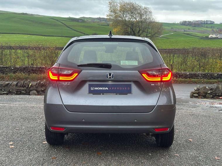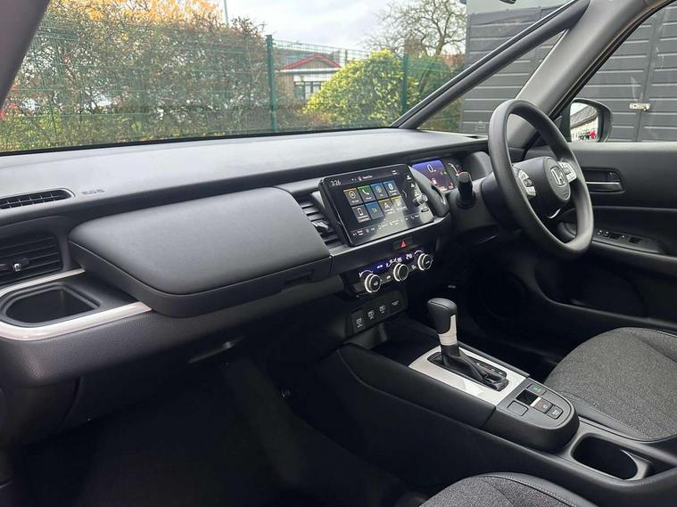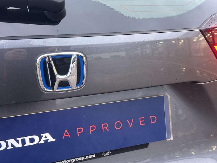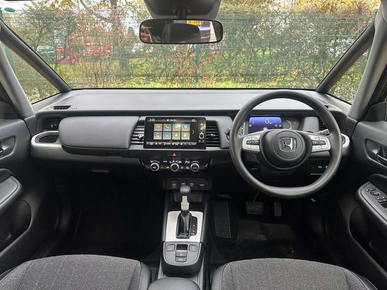 Adaptive cruise control, Adjustable speed limiter, Agile handling assist, Bluetooth hands free telephone connection, eCall emergency call system, Econ mode, Electric power steering wheel with variable gear ratio steering, Emergency stop signalling system, Forward collision warning, Front and rear parking sensors, Honda CONNECT with 9" touchscreen, AM/FM/DAB/Apple Carplay and android auto, Idle stop, Intelligent speed limiter, Lane departure warning system, Lane keep assist system, Low speed following, Multi-information display, Road departure mitigation, Traffic sign recognition, Vehicle stability assist, 'Shark fin' mobile antenna, 2x USB Front socket (1 data & 1 charge), 4 speakers, Remote audio controls on steering wheel, Aspheric door mirrors, Auto wipers, Automatic headlights with on/off timer, Coming/leaving home function, Body colour door handles, Body coloured bumpers, eHEV emblem, Electric adjustable door mirrors, Electric front windows, Electrically folding door mirrors, Heated door mirrors, High beam assist, LED daytime running lights, LED Headlights, LED rear lights, Rear side wing doors, Rear wiper, Single exhaust tailpipe, Third brake light, 3 seat bench in 2nd row, 60/40 split rear bench seat, Cargo net hooks, Climate control air conditioning, Driver and front passenger seat armrests, Driver and passenger front seat pockets, Driver's seat height adjustment, Fabric/leather upholstery, Front accessory power socket, Front head restraints, Front map lights, Front/rear courtesy lights, Isofix child seat restraint mechanism, Isofix points, Magic seat flexibility system, Plating interior door handles, Rear head restraints, Rear parcel shelf, Single front passenger seat, Sunvisors with vanity mirrors, Tilt/telescopic adjustable steering wheel, Tonneau cover, Trunk light, 3x3 point rear seatbelts, Anti-lock braking system (ABS), Brake assist function, Brake hold function, Child locks on rear doors, Collision mitigation braking system, Deflation warning system, Driver knee airbag, Driver SRS airbag (single stage inflation), Driver/Front Passenger airbags, Electric parking brake, Front and rear side curtain airbag, Front side airbags, Hill start assist, Passenger SRS airbag cut-off device, Rear side airbags, Whiplash lessening front headrests, Front seat belt with emergency locking retractor, Honda super locks, Immobiliser, Mirrors key fob operation, Remote central locking with 2 remote folding keys, Security alarm, Soft pad leather interior panels, 15" Multi apperance alloy wheels in mat berlina black, Tyre repair kit,