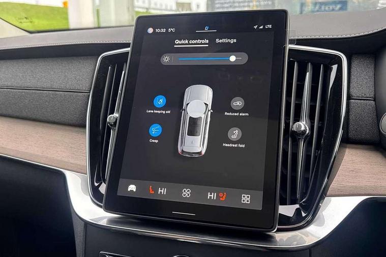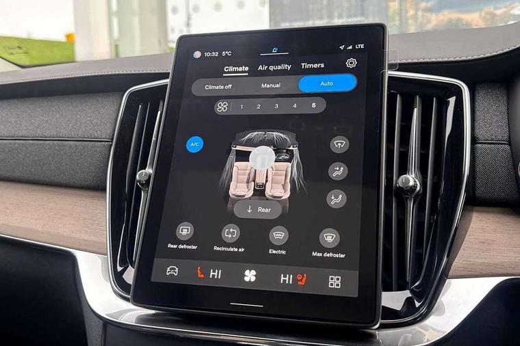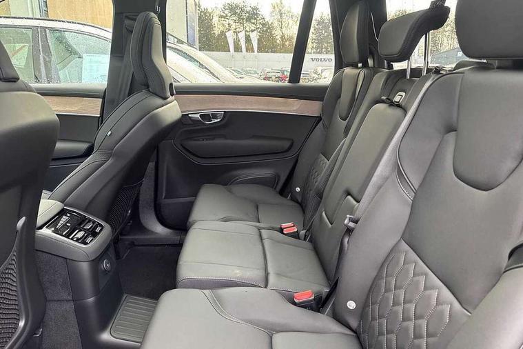 11.2" centre console touch screen, 12.3" Progressive Driver Display, 360 degree surround view parking camera with side proximity sensors, Adjustable steering wheel force, Apple carplay (wired), Bluetooth handsfree system, Drive mode settings, Driver alert control with lane keeping aid, Driver assistance (pilot assist and adaptive cruise control), Driver awareness - Blind spot information system with steer assist, cross traffic alert with autobrake and rear collision warning and mitigation, Driver monitoring system, Emergency call service, Front and rear park assist, Google Automotive Services - Navigation with Voice recoginition and google assistant, Handsfree power tailgate opening and closing, Intelligent speed assistance, Oncoming Lane Mitigation, PAS, Power operated tailgate, Service interval indicator, Speed sensitive steering, Trip computer, Volvo on call, Wireless/Inductive Mobile Phone Charging, 6m 3 phase 16amp Type 2 / mode 3 charge cable, 8 speed automatic transmission with start/stop + manual change functions, Active four C chassis - four corner adaptive dampers with electronic air suspension, Electric rear axle drive, Lithium-ion battery, On board charger - 6.4 kW 2 phase/3.7kW single phase, Recharging port located in nearside front wing, DAB Radio (Digital Audio Broadcasting), Low speed exterior sound speaker, Premium Sound by Harman Kardon, dirac unison, dolby pro logic II surround sound, 13 speakers/600W output and fresh air subwoofer, Steering wheel remote infotainment controls, Adaptive brake lights with high level LED brake lights, Auto dimming interior + exterior mirrors, Auto folding and heated power door mirrors, Automatic headlight levelling system, Automatic matrix LED headlights with Adaptive shadow technology and Active high beam, incorporating Day running lights, Body colour bumpers, Front and rear power windows, Headlight cleaning system, Heated front windscreen, High gloss black door mirrors and window surround, High gloss black front and rear bumper deco, High gloss black front grille and deco, Home safe and approach lighting, Integrated roof rails in high gloss black, Power glass tilt and slide panoramic sunroof with sun curtain, Puddle lights, Rain sensor with automatic windscreen wiper activation, Rear side wing doors, Rear wash/wipe with intermittent wipe setting, Roof antenna, Roof spoiler, Visible VIN plate, 12V socket in luggage compartment, 2nd Row centre armrest with and cupholders, 3 Spoke tailored sport steering wheel with chrome trim, 4 zone electronic climate control with Clean zone air quality system + pollen filter, A-pillar parking ticket holder, Air conditioning for 3rd row of seats, Air purifier PM2.5, Ambient door and instrument panel lighting, B Pillar ventilation, Bright metal luggage scuff plate, Centre console cupholders and storage, Floor mats, Front and rear courtesy lights, Front and rear door pocket illumination, Front footwell and side step illumination, Front headrests, Front reading lights, Front seat cushion extensions, Front tunnel storage illumination, Glovebox compartment light, Heated front seats, Heated rear seats, Heated steering wheel, Height/reach adjustable steering column, Illuminated front and rear aluminium tread plates, Illuminated luggage compartment, Illuminated tailgate, Illuminated vanity mirrors + ticket holder, Inner door release handle illumination, Isofix outer rear child seat preparation in 2nd row, Load cover, Load protection net, Lockable glovebox compartment, Luggage compartment divider with grocery bag holder, Nordico quilted upholstery, Outboard armrest with cupholder and storage for third row passengers, Power driver seat with multi directional lumbar support and memory for seat and exterior mirrors, Power folding 2nd row headrests, Power passenger seat with multi directional lumbar support and memory, Rear footwell and side step illumination, Rear headrests, Rear reading lights, Second row integrated child seat for centre seat, Single front passenger seat, Textile headlining, Three 2nd row individual folding passenger seats with fore/aft adjustment, Two 3rd row individual folding passenger seats, Underfloor luggage compartment storage, 7 three point seatbelts, City safety with steering support includes pedestrian, cyclist detection, front collision warning with full auto brake and rear auto brake, Driver and passenger airbags, Drivers knee airbag, First aid kit, Front seats SIPS airbags, Hill descent control - off drive mode, Hill start assist, IC (Inflatable Curtains) - Full Length, Passenger airbag cut-off switch, Power child locks on rear doors, Power parking brake with auto hold function, Road sign information display, Run off Road Protection, Seatbelt reminder and pretensioners for all seats, SIPS (Side Impact Protection System), Slippery road and hazard light alert, Stability and Traction Control with Spin control, Engine Drag Control and Corner Traction Control, Tyre pressure monitoring system, Vehicle deceleration control with Anti-lock Brake System, Electronic Brake Distribution and Emergency Brake Assist, Warning triangle, WHIPS whiplash protection system - front, 2x Key integrated remote control central locking + deadlocking system and auto open/close windows, Anti-theft alarm including immobiliser/volume sensor + level sensor, Keyless drive includes keyless entry and keyless start, Locking wheel nuts, Tailored instrument panel and door tops, Tyre sealant kit and compressor,