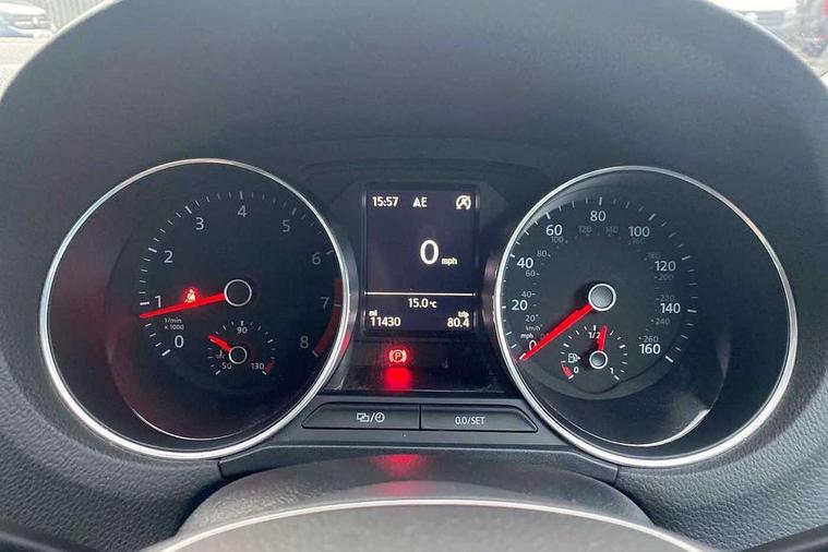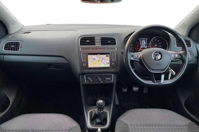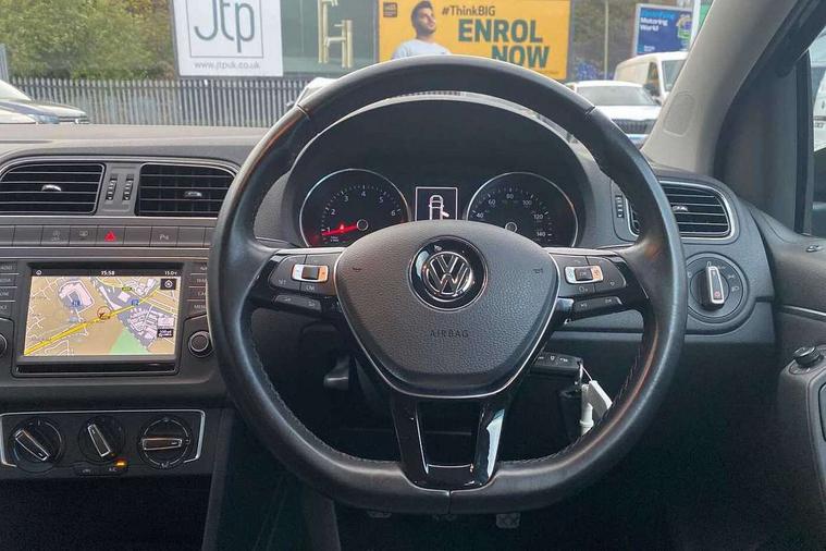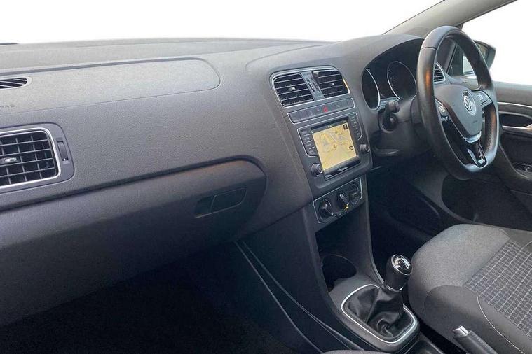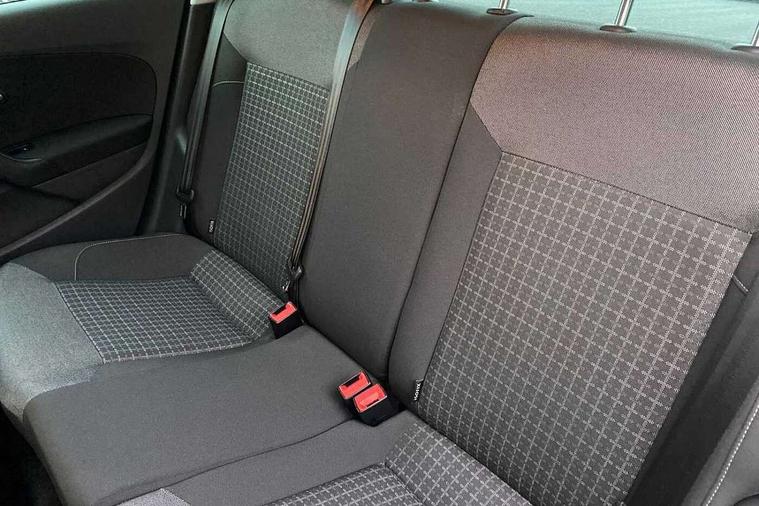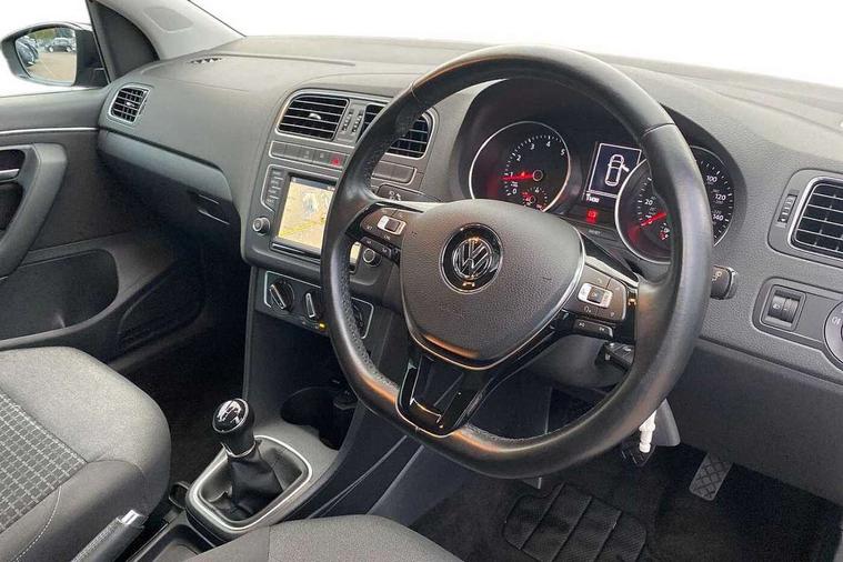 Bluetooth Telephone preparation, Driver alert system, Multi function display, Multifunction computer, PAS - speed related, Service interval indicator, Warning buzzer and light for front seatbelts unfastened, 6 speakers, Composition media system with radio, glovebox mounted CD, colour touch screen, SD card, aux-in, USB, multimedia interface, DAB Digital radio, Black grille with chrome surround, Body colour bumpers, Body colour door handles, Body colour door mirrors, Body coloured side sills, Chrome trimmed front air intake surrounds, Electric front windows, Electric operated/heated door mirrors, Front fog lights with static cornering function, Front wash/wipe with interval delay, Heat insulated tinted glass 65% light absorbing from B pillar back, Heated rear window with auto timer, Rear electric windows, Rear windscreen washer and wiper with interval delay, 12V power socket in centre console, 2 bag hooks in luggage compartment, 2 cupholders, 3 rear head restraints, 3 spoke steering wheel, 4 grab handles, 60/40 split folding rear seat, Centre console storage, Chrome interior door handles, Driver and passenger sunvisors, Driver seat height adjust, Dust/pollen filter, Front door pockets, Front passenger seat height adjust, Front seat backrest storage nets, Front/rear reading lights, Glovebox, Height/reach adjustable steering column, Illuminated vanity mirror, Interior light with delay, Isofix Preparation 2 Rear child seats, Luggage compartment cover, removable, Luggage compartment lighting, Matt chrome gear lever gaiter surround, Multifunction leather steering wheel with leather gear knob/handbrake grip, Storage compartment in front doors, Storage compartment in rear doors, Sunglasses holder, Variable boot floor, Cruise and Park Pack - Polo, 3 point height adj front seatbelts + pretensioners, 3x3 point rear seatbelts, ABS, Automatic post collision braking, Driver/front passenger airbag, Driver/Passenger whiplash optimised head restraints, ESC - Electronic Stability Control + traction control, ESP with EDL + ASR, Hill hold control, Hydraulic Brake Assist (HBA), Tyre pressure monitoring system, Alarm with remote central locking and interior protection, Electronic engine immobiliser, Air vents in Matt chrome, Matt chrome interior trim, 15" steel spare wheel,