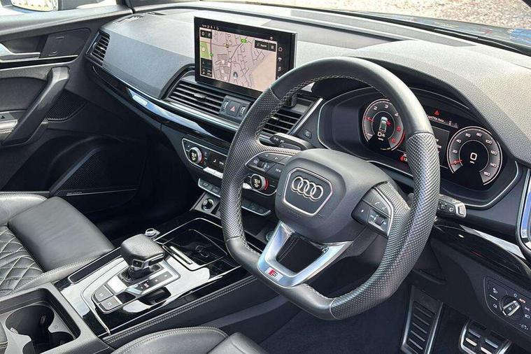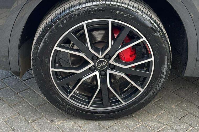 Audi connect safety and service (e-call), Audi connect with Amazon Alexa Integration, Audi drive select, Audi virtual cockpit plus with 12.3" screen and three different layout designs, Audi wireless smartphone interface, Automatic start-stop system with coasting functionality and efficiency programme, Bluetooth interface, Electro - mechanical power assisted steering, MMI navigation plus with 10.1" touch screen, Power tailgate, Reversing camera, Service interval indicator, Voice control system with Audi hotword activation "Hey Audi", Diesel particulate filter, Quattro on demand, S line sports suspension, DAB Digital radio, Acoustic windscreen, Audi beam with Audi rings logo, Audi matrix LED headlights with dynamic front and rear indicators, Audi rings at front and rear in black, Audi rings decal on rear doors, Auto dimming door mirrors, Auto dimming rear view mirror, Automatic headlights and windscreen wipers, Black door mirrors, Black roof rails, Body colour underbody protection, Chrome plated exhaust trims, Daytime running lights, Door sills in Selenite silver, Electric adjustable/heated/folding door mirrors, Front air inlet surrounds in aluminium, Front and rear electric windows, Headlight washers, High gloss black B pillar trims and triangular rear door trim, High level LED brake light, Rear chrome trim strip below lights, Rear privacy glass and rear side windows, Rear side wing doors, Rear spoiler, Rear wiper, Roof bars, Without model and engine badging at rear, 2 x USB charging port with aux input socket, 3 rear headrests, 4 way electric lumbar support for driver and front passenger, 40:20:40 split folding 3 rear bench seat in 2nd row with rear centre armrest, Black cloth headlining, Comfort front centre armrest, Contrast stitching on seats, steering wheel and gear lever gaiter, Deluxe 3 zone electronic climate control, Electrically adjustable front seats, Fine Nappa leather upholstery with diamond pattern contrast stitching + front sport seats with S embossed logo, Front head restraints, Front/rear floor mats, Gear lever in black leather, Heated front seats, Height/reach adjustable steering column, Illuminated door sill trims with S logo, ISOFIX child seat mounting and top tether, Rear seat bench plus, Removable luggage compartment floor, Single front passenger seat, Stainless steel pedals, Sunvisors with vanity mirrors, Trunk roller cover, Artificial leather pack - Q5, Black styling package - Q5 Edition 1, Extended LED Interior multi coloured Lighting Pack - Q5, 3 point seatbelts on all seats, 6 airbags - Driver, front passenger, curtain and side airbags, Electrically operated child locks on rear doors, Electromechanical parking brake, Electronic stabilisation control including ABS, ASR and EDL, Front and rear brake calipers painted in red, Front passenger airbag deactivation, Hill descent control, Hill hold assist, Multi collision brake assist, Pop-up bonnet for pedestrian protection, Pre sense city, Seat belt force limiter, Seatbelt monitoring, Tyre pressure warning, Warning triangle and first aid kit, Anti theft alarm, Anti-theft wheel bolts, Keyless Go access/ignition system, Remote central locking, Piano black finish inlay,