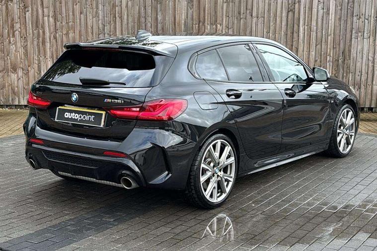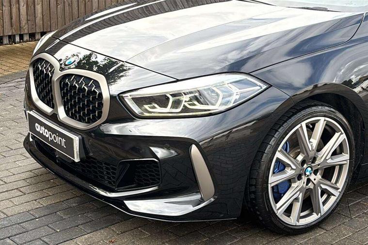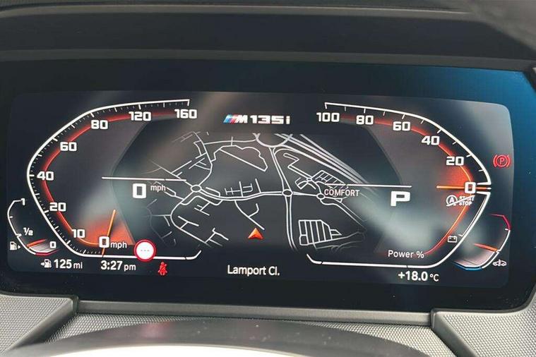 Active guard plus, Attentiveness assist, BMW ConnectedDrive online services, BMW Teleservices, Check Control warning system for monitoring of lights and door/luggage compartment open warning, Cruise control with speed limiter, Eco pro mode, Electric power steering, Electro hydraulically controlled multi-plate clutch transfers drive to rear axle and with power take-off device located on the front differential., Energy efficient operating strategy, Front axle single joint with specific axle kinematics to minimise drive influences on steering + provide increased rigidity agile driving behaviour, Gearshift time display in manual mode, Integrated owners handbook, Lane departure warning system, M Sports steering with M135i xDrive specific settings, Oil sensor for level and grade, On board computer, Optimum shift indicator, Personal Profile, Pull away assistant, Rigidly mounted rear subframe - Multi link construction with separate spring / damper configuration and excellent driving characteristics, Speed limit Info including no-overtaking indicator, Sporty fast gear shifting in sport mode, Aluminium lightweight construction, Anti roll bar front and rear, Balancer shaft, Double VANOS, Drive Performance Control, Eight speed sport automatic transmission with gearshift paddle switches, Electronic differential lock, Electronic selector lever, Engine cover with M performance designation, High precision injection, Larger fuel tank capacity (50 litres), Launch control, M135i specific heavily de-throttled engine intake air guide, M135i specific high-performance cooling package, M135i specific larger turbocharger with integrated divert-air valve, Petrol Particulate Filter, Twin tube gas filled shock absorbers with degressive characteristic curve, VALVETRONIC engine management, Variable, stepless and infinitely adjustable distribution of drive torque between the front and rear axles, xDrive intelligent all wheel drive with M135i specific reinforced components, DAB Digital radio, Auto dimming rear view mirror, Automatic headlight beam throw control, Automatic windscreen wipers and automatic headlight, Body colour door handles, Body colour roof trims, Cerium grey exterior mirror caps, Direction indicator side lights in exterior mirrors, Electrically adjustable exterior mirror with mirror adjustment switch on drivers armrest and aspheric on driver side, convex on passenger side, Exhaust tailpipe, Cerium Grey with bevelled finish - twin, round 100mm, left and right split, Fading support, Folding side mirrors with auto dimming/folding wing mirrors with auto dimming, Follow me home headlights, Front and rear bumper system with replaceable deformation elements, Front and rear electric windows with open and close fingertip control, anti trap facility and comfort closing, Front door sill finishers with M135i designation, Green tinted heat protection glazing, High gloss shadowline window frame, Recess cover mirror frames and B/C pillar embelisher trim, High level third brake light, Integrated front windscreen with washer jets, Kidney grille frame in Cerium Grey with Mesh design, LED daytime running lights, LED eyebrow turn indicators, Lightweight engineering, M logo designation side in cerium grey, M Performance exhaust system with valve control and minimised exhaust back pressure, M Performance specific setup, M Sport spoiler, Matt black air guide grilles, Matt black wheel arch trim, Model designation on electric bootlid includes xDrive designation for M135i xDrive, Nearside reverse light in rear light cluster, Preparation for high beam assistant, Rear fog lights, Rear side wing doors, Rear window wiper, Reinforced crank drive, new pistons and adapted con rods, Shark fin antenna, Trailer stabilisation logic, Visible VIN plate, Welcome lighting, 12V power socket in front centre console with blanking plug, 3 rear seat head restraints, 3 seat bench in 2nd row, 3 spoke sports leather steering wheel with black leather and stitching, pearl chrome decorative finish, specific M Badge, Anthracite headlining, Black boot net with lashing eyes, Cargo function on 2nd seat row, Child seat ISOFIX attachment for two outer rear seats and front passenger seat with anchorage points, Conditioned based service, Driver and front passenger backrest net on rear, Driver and front passenger seat heating, Driver side folding compartment in instrument panel, Folding rear clothes hook, Four grab handles integrated in roof lining, Front and rear door pockets with bottle holders, Front and rear side armrest integrated into door trim, Front armrest, Front M sports seats, Glove compartment, Height adjustable front head restraints, Luggage compartment for bag hooks on left and right, foldable luggage compartment liner and four lashing eyelets, Manual adjust steering wheel, Multi-function controls for steering wheel, Single front passenger seat, Storage compartment in centre console, Storage compartment in luggage compartment, Stowage of the parcel shelf in luggage compartment trim, Sun visors with vanity mirrors and insert tab, Two front centre console cupholders, Two zone automatic air conditioning, Type C two USB ports in rear centre console, Velour floor mats, Additional interior lighting pack - 1 Series M135i, BMW live cockpit professional pack- 1 Series, Connected pack professional - 1 Series, Interior lights pack - 1 Series, M Sport exterior styling aerodynamics pack - 1 Series 135i, 2 tone horn, 3 point seatbelts on all seats, front pyrotechnic belt tensioners, stopper and belt force limiters, rear coded belt buckles, Airbags - Front driver/passenger, front and rear curtain head protection, front side, manual deactivation of front passenger airbag, Anti lock braking system (ABS) with brake assist, BMW emergency call, Brake drying, Braking readiness, Child proof locking system in rear door, City braking function, Comfort modes, Cornering brake control, Crash sensor activating of airbags, Unlocking doors, hazard warning lights, fuel cut off, 