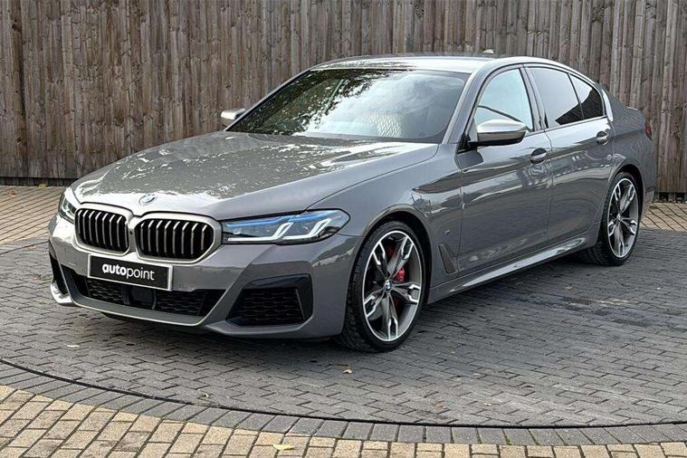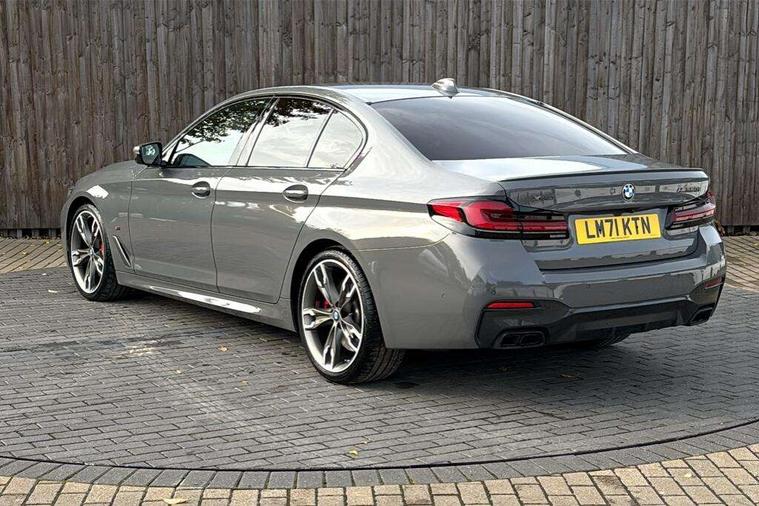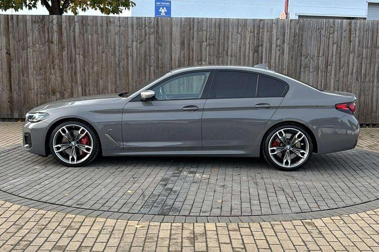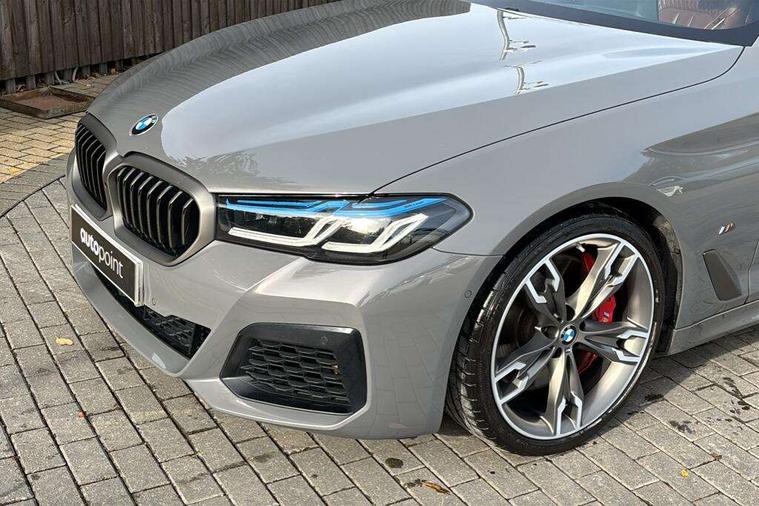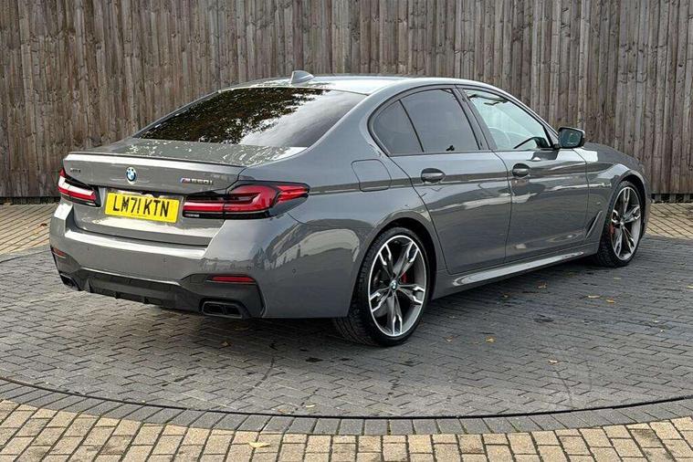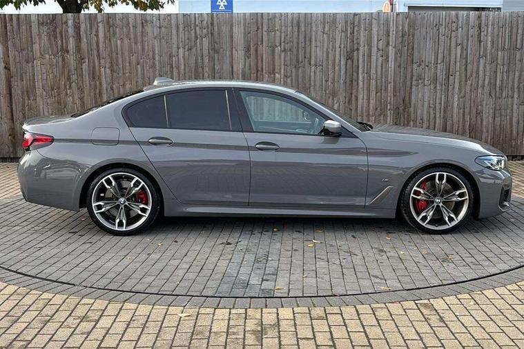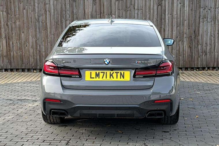 32GB hard disc drive (HDD) memory, Active Guard, BMW Live Cockpit Professional sat nav system with 12.3" instrument display and high resolution control display, BMW Teleservices, Brake pad wear indicator, Driving experience switch, iDrive touch controller with shortcut buttons, Intelligent emergency call, Multifunctional instrument panel, Oil sensor for level and grade, On board computer inc. average speed, fuel consumption, liquid crystal Info display, journey computer, outside temperature display, personal profile, On-board diagnosis - OBD, Powered by Operating System 7.0, Service interval indicator, Stop/start button, Drive performance control with ECO PRO comfort + sport mode, Engine cover with twin turbo designation, M Sport differential, Petrol Particulate Filter, Steptronic transmission with gearshift paddles on steering wheel, DAB Digital radio, Favourite buttons, Acoustic glazing, All round anti-corrosion system, Automatic windscreen wipers and automatic headlight, Automatically dimming rear view mirror, BMW individual lights shadow line, Body colour door handles, Body coloured bumpers, Door handle illumination, Dynamic brake lights with LED technology, Electric front and rear windows with fingertip open/close + anti-trap facility and comfort closing function, Electrically adjustable and heated exterior mirrors includes integrated direction indicators and automatic parking function, Folding exterior side mirror with auto- dimming, Follow me home headlight function, Heated windscreen washer jets, Kidney grille and air breather in cerium grey, LED daytime running lights, LED third brake light, M designation on front side panels, left and right in chrome, M Sport exterior styling with rear spoiler bonded to luggage compartment lid, Sun protection glazing, Trapezoidal visible exhaust tailpipes, xDrive designation on tailgate, 12V power socket in front and rear, 2 cup holders in front, 4 zone control automatic air conditioning, Armrest - front and rear integrated door trim, centre console includes storage compartment, rear centre includes 2 cupholders, Child seat ISOFIX attachment with rear outer seats includes top tether, Front and rear footwell lights, Front reading lights, Height and length adjustable steering column and activation via lateral lever on the steering column, Lockable glove compartment with light, M door sill finishers, M specific pedals, M specific velour floor mats, Multifunction controls for leather steering wheel, Rear headrests, Three spoke sport M leather steering wheel, Ambient lighting pack - 5 Series, Connected package professional - 5 Series, M Aerodynamic pack - 5 Series, Airbags - driver/front passenger, rear and side, first and second row seats head airbags, front passenger seat airbag deactivation, Anti-lock braking system (ABS), Automatic Stability Control (ASC), Brake assist function, Brake energy regeneration, Cornering brake control (CBC), Crash sensor activating central locking release, hazard warning lights, fuel cut off and interior lighting, Deformation zones - front and rear with door reinforcements and bumpers up to 2.5 mph, DSC - Dynamic Stability Control, Dynamic brake control, Dynamic Traction Control - DTC, Electromechanical parking brake with automatic drive away release and auto hold function, Electronic brake force distribution, Engine drag torque control, Front and rear brake discs with interior ventilation, Front head restraints with anti-whiplash, Hill start assist, M Sport seatbelts, Mechanical child proof lock on rear doors, Passive protection for pedestrians, Side impact protection, Three point seat belts for all four seats, Two tone horn, Tyre pressure indicator, Warning triangle and first aid kit, Alarm system (Thatcham 1) with remote control and electronic engine immobiliser, Locking wheel bolts,