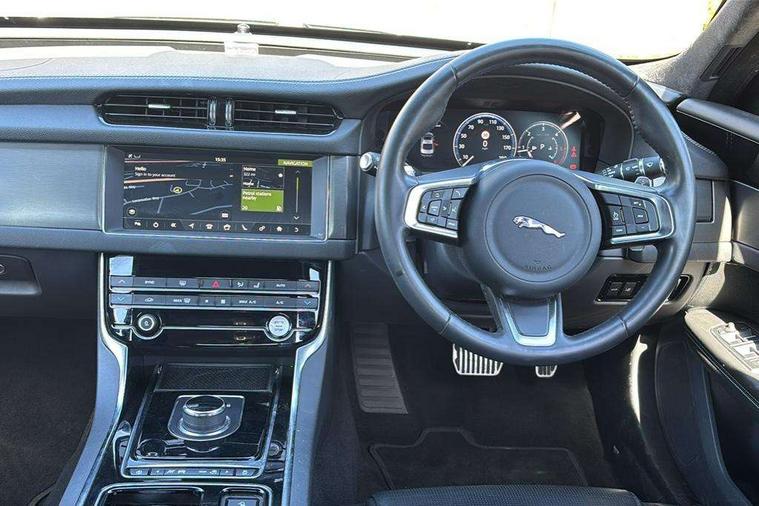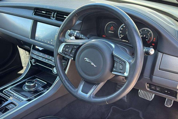 Android Auto, Apple car play, Bluetooth telephone connectivity, Electric power steering, InControl remote premium, InControl touch pro satellite navigation system, Interactive driver display digital instrument panel, Jaguar Voice front, Lane departure warning system, Outside temperature gauge, Pro services and wifi hotspot, Rear parking aid, Service interval indicator, Traffic sign recognition with adaptive speed limiter, Trip computer, 8 speed automatic transmission, Bluetooth audio streaming, DAB Radio (Digital Audio Broadcasting), InControl app, InControl protect, InControl Wi-fi, USB and auxiliary socket, 25d AWD badge, Acoustic windscreen, Auto dimming eletrochromatic rear view mirror, Automatic headlights, Blue tinted glass, Body colour door mirrors, Body coloured extended side sills, Electric front/rear windows with one touch/auto up/down, Frameless auto dimming interior rear view mirror, Gloss black grille with gloss black surround, Gloss Black side vents with limited edition badge (Chequered Flag badge), Gloss black side window surrounds, Headlight power wash, Heat insulated glass, Heated rear window, LED tail lights, Metallic paint, R-sport body kit, Rain sensor windscreen wipers, S front bumper, Tailgate/boot lid spoiler, Trailer stability assist, 12V accessory sockets - front and rear, 2nd row air vents, 3 rear seat head restraints, Auxilliary 12V power socket, Bright metal foot pedals, Chequered flag badge soft grain leather steering wheel, Chrome seat switches, Fixed rear bench seat, Front armrest, Front centre console storage box, Isofix child seat preparation, Jaguar sense, JaguarDrive selector, Luxtec wrapped instrument panel topper, Multifunction R-sport steering wheel, Overhead console with sunglasses holder, Perforated grained leather upholstery with contrast stitching, Premium carpet mats, Rear armrest with twin cupholders, Rear storage compartment, Satin chrome trunk finish, Sports seats, Sunvisors with illuminated vanity mirrors, Tie down hooks in luggage area, Twin front cupholders, ABS+EBA, Anti-whiplash front headrests, Autonomous emergency braking, Brake pad warning light, Driver/Front Passenger airbags, DSC - Dynamic Stability Control, Electronic parking brake, Emergency brake assist, Front and rear curtain airbags, Front/rear seatbelt pre-tensioners, Hill start assist, Pedestrian contact sensing, Power child locks, Seatbelt warning, Side airbags, Three 3 point rear seatbelts, Torque vectoring brake, Traction control, Tyre pressure monitoring system, Deadlocks, Drive away door locking, Immobiliser, Keyless entry system, Keyless Start, Locking wheel nuts, Perimeter alarm, Remote central locking, Dark hex aluminium instrument panel finisher, Gloss black tailgate/boot lid finisher,