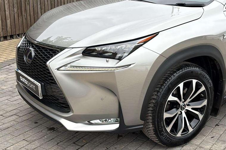 Adaptive cruise control + pre-crash system, Analogue clock, Bluetooth telephone connectivity, Drive mode selector, Front and rear parking sensors, Multimedia display, PAS, Push button starter, Reversing camera, Service interval indicator, Trip computer, Performance dampers, VDIM, Vehicle Stability Control (VSC), 8 Speakers, Aux input, DAB Digital radio, Radio/CD, Steering wheel mounted audio controls, USB connection, Black mirror caps, Body colour bumpers, Electric/heated/folding door mirrors, Electrochromatic rear view mirror, Front and rear electric windows, Headlight washers, Illuminated door handles, LED daytime running lights, LED front fog lights with static cornering light function, LED Headlights, Privacy glass, Puddle lights in exterior door handles, Rain sensor windscreen wipers, Rear wiper, Roof rails, Roof spoiler, Scuff plates, Shark fin roof aerial, 3 spoke leather steering wheel, 60/40 split folding rear seat, 8 way electrically adjustable front seats, Aluminium foot rest, Aluminium pedals, Black roof lining, Driver's lumbar support, Dual climate control air conditioning system, Electric adjustable steering column, Front armrests, Gearshift paddles, Heated front seats, Isofix child seat attachment, Leather gear lever, Leather upholstery, Rear armrest, Rear headrests, Convenience pack - NX, 3x3 point rear seatbelts, ABS, Active front headrests, Curtain airbags, Driver/Front Passenger airbags, Driver/front passenger side airbags, EBD + Brake Assist, Electronic parking brake, Front/rear seatbelt pre-tensioners, Hill start assist, Passenger airbag cut-off device, Rear passenger side airbags, Traction control, Tyre pressure warning, Alarm, Immobiliser, Remote central double locking, Smart keyless entry, Speed sensitive power door locks, Carbon interior trim, Space saver spare wheel,