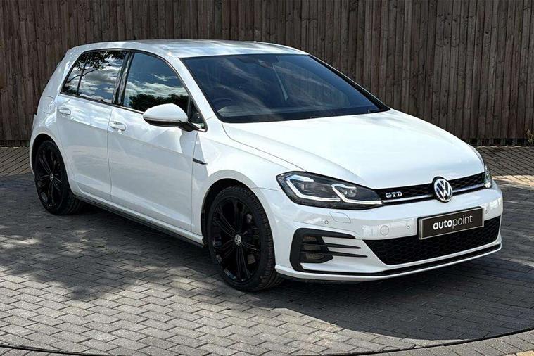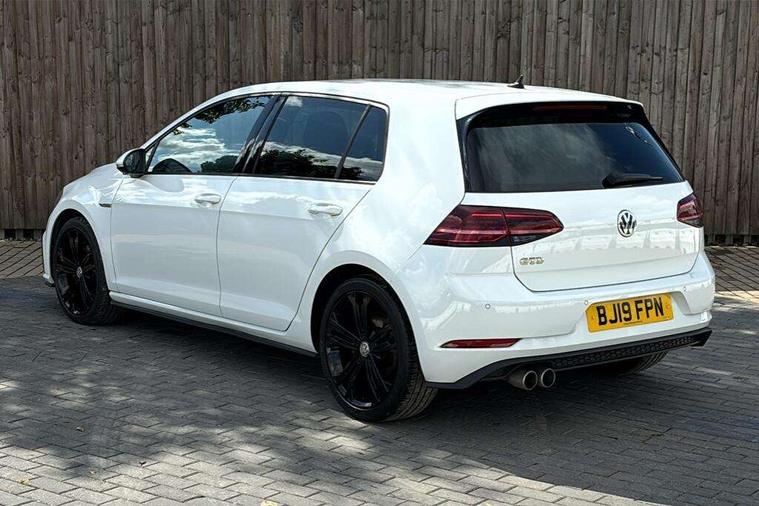 Chrome plated air vent surround, Chrome plated electric mirror adjustment light switch surround, Honeycomb black decorative inserts, Piano black centre console, Ambient lighting pack - Golf, Convenience Pack - Golf, Light and Sight pack - Golf, Mirror pack - Golf, Steel space saver spare wheel, Alarm with interior protection and deactivation via infotainment system, Electronic engine immobiliser, Keyless entry with start/stop button on centre console, Remote central locking with 2 remote folding keys, Composition media system, DAB Digital radio receiver, MP3/WMA compatability, Multi device interface (MDI) with USB connection, Premium USB cable in choice of either Apple or Android smartphone compatibility, SD card slot, SMS Functionality, USB and SD card connectivity, Volkswagen media control, 3 rear three point seatbelts, Airbags - Driver's and front passenger's, curtain airbag, Driver's knee, front side impact and passenger's airbag deactivation switch, Anti-lock Braking System (ABS) with Hydraulic Brake Assist (HBA), Automatic post collision braking system, Child locks on rear doors, Driver/Passenger optimised head restraints, Electronic parking brake with auto hold, Electronic stability control (ESC) including Electronic differential lock (EDL) and ASR (Traction control) with deactivation via infotainment system, Front ventilated disc brakes and rear disc brakes, Pre crash preventive occupant protection, Three point height adjustable front seatbelts with tensioners, Tyre pressure loss indicator, 3D-LED tinted rear light clusters with indicator sweep function, Black rear diffuser, Body colour door handles, Body colour door mirrors with integrated indicators, Body colour rear roof spoiler, Body colour sports bumpers, Dusk sensor + automatic driving lights, Electric front windows, Electric rear windows, Electrically adjustable and heated door mirrors, Fully galvanised body, Heated rear windscreen, High level 3rd brake light incorporating LED Technology, Honeycomb radiator grille - black, LED daytime running lights, LED front fog lights with static cornering light function, LED headlights with dynamic light assist, Rear fog lamp, Rear window aerial, Rear window wash/wipe with intermittent wipe, Reflectors in all doors, Shiny black aerofoil downside, Sill extensions, Twin exhaust tailpipe, Unique GTD badging, Uniquely shaped front/rear bumpers, Windscreen wipers/ intermittent wipe + 4 position delay, 12V socket in luggage compartment, 3 rear headrests, 4 load lashing points in luggage compartment, 60/40 split folding rear seat backrest, Bag hook in luggage compartment x 2, Black headlining, Climate control - 2 zone electronic air conditioning with automatic air recirculation and allergy filter, Cooled glovebox, Dust/pollen filter, Front + rear carpet mats, Front centre armrest with storage compartment and two rear air vents, Front seat back storage pockets, Grab handles front x 2, rear x 2 with integrated coat hooks, Height and reach adjustable steering wheel, Illuminated door sills, Illuminated vanity mirrors, Instrument lighting white adjustable panel illumination, Interior light delay, Isofix preparation for 2 rear child seats, Leather gear knob and handbrake grip, Load through provision with rear centre armrest and cupholders x2, Luggage compartment lighting, Multifunction leather steering wheel with GTE logo and selector lever boot grip with grey stitching including paddle shift, Overhead storage box, Stainless steel pedals, Storage box in luggage compartment, Storage compartment in roof console with cover, Storage compartments in front doors, Storage compartments in rear doors, Stowable luggage compartment cover, Sun visors, Variable boot floor, height adjustable and removable, 'Lights On' Reminder warning buzzer, ACC - Adaptive cruise control with front assist, forward collision warning, distance monitoring, city emergency brake and speed limiter, Bluetooth telephone and audio connection for compatible devices, Brake pad wear indicator warning light, Driver alert system, Driver profile selection, Driving Mode Selection with four preset modes - Eco, normal, sport or individual modes, Instrument cluster in white, Lane assist with dynamic light assist and traffic sign recognition, Misfuelling protection device, Multifunction computer with visual gear change recommendation for fuel consumption, Progressive power assisted steering, Push tank flap, Rear view camera, Speedo, rev counter, electronic odometer, trip, service interval display, exterior temperature and fuel gauge, Stop/start system, Warning buzzer and light for front seatbelts unfastened, Anti-tramp function, Battery regeneration during braking, Diesel particulate filter, Lowered sports suspension, XDS plus electronic differential lock,