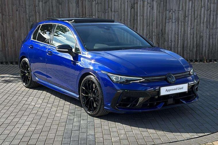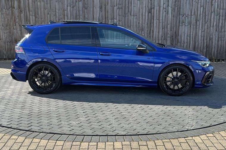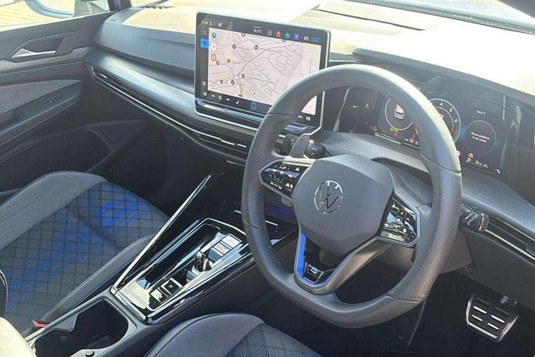 Activated carbon canister, Adaptive cruise control (ACC), Advanced driver attention and drowsiness monitor, Dynamic road sign display, E-Sim card for online connectivity, eCall emergency call system, Electronic maximum speed limit increased to 270 km/h, includes driving Modes 'drift' and 'special', larger roof spolier and GPS laptimer + G-Meter, Multi-color Digital cockpit pro, selection of different info profile possible, Multifunction front facing camera for distance control, Navigation system, Oncoming vehicle braking when turning including swerve support, Preparation for light assist system, Progressive steering, Side assist blind spot lane change system, rear traffic alert and exit warning system, Speed limiter, Speedo, rev counter, electronic odometer, trip, service interval display, exterior temperature and fuel gauge, Traffic jam assist, Voice enhancer and voice control, Warning signal and warning light for front and rear seatbelts not fastened, We connect plus preparation, We connect preparation, Wireless app connect, All wheel drive - 4Motion, Petrol Particulate Filter, Sports suspension, Start-stop system with battery regeneration (recuperation - energy recovery during braking), XDS electronic differential lock for improved traction and handling, 2 USB C ports in front, 2 USB charging sockets on the centre console in the rear charging capacity upto 45W, Comfort telephony + wireless charging, without wireless aerial connection, Digital radio reception (DAB), Diversity antenna for FM reception, Gaming platform via car app, Infotainment system with 12.9" display, Mobile phone interface with inductive charging feature, 3rd brake light, Auto dimming rear view mirror, Auto headlights, Automatic headlamp activation with Coming home and Leaving home feature, Black badge on B-pillar, Black mirror caps, Black strips on radiator grille and headlights, Body colour door handles, Darkened headlights, Darkened R Logos and VW logos in front, rear and on fender, Exhaust system with black tailpipe, Exterior ambient lighting with illuminated lighting animation and wake up/goodbye scenario, Exterior mirrors convex on the left and aspherical on the right, Front and rear electric windows, Front fog lamps and cornering light, Heat insulating windshield made of laminated glass, LED daytime running lights, LED matrix headlights with ambient light V2, advanced high beam, dynamic range contol with cornering, LED rear lamp with indicator, poor weather, R name plate, Rain sensor, Rear fog light on one side and reversing lights on both sides, Rear side wing doors, Rear tinted glass 65% light absorbing from B pillar backwards, Rear windscreen washer and wiper with interval delay, Remote electrically foldable door mirrors, puddle lights and reverse activated passenger's door mirror, Welcome light with surround lighting, 12V socket in front centre console, 12V socket in luggage compartment, 3 rear head restraints, 3 seat bench in 2nd row, 30 colour ambient lighting, illuminated center console storage compartment in front, Air care climatronic 3 Zone automatic climate control with rear air conditioning control panel, Aluminium gearshift handle, Brushed stainless steel pedals, Carpet mats, front and rear, Front centre armrest, Integrated front head restraints, ISOFIX anchors for child seats on outer rear bench seats and on front passanger seat compatible for i-Size, Luggage compartment lighting, Rear cupholder and loadthough, Single front passenger seat, Soul black instrument panel, Split folding backrest with centre armrest and unsplit rear seat bench, Storm grey roof lining, Sun visors with illuminated vanity mirrors, Driver assistance pack - Golf DSG Estate/Hatchback, R styling pack - Golf, Technology park and comfort pro package - Golf Hatchback, 3 point height adj front seatbelts + pretensioners, 3 rear three point seatbelts, ABS, Autonomous emergency braking front assist with pedestrian and cyclist monitoring, Child locks on rear doors, Disc brakes in rear incl. brake calipers in black with darkened R-logo, Driver and front passenger airbag with front passenger airbag deactivation, Electronic parking brake with auto hold, ESC (Electronic Stability Control), Extended pedestrian protection measures, Hill start assist, Two tone horn, Tyre pressure loss indicator, Volkswagen roadside assistance, Anti theft wheel bolts, Preparation for alcohol interlock, Wheel hub cover with darkened R-logo,